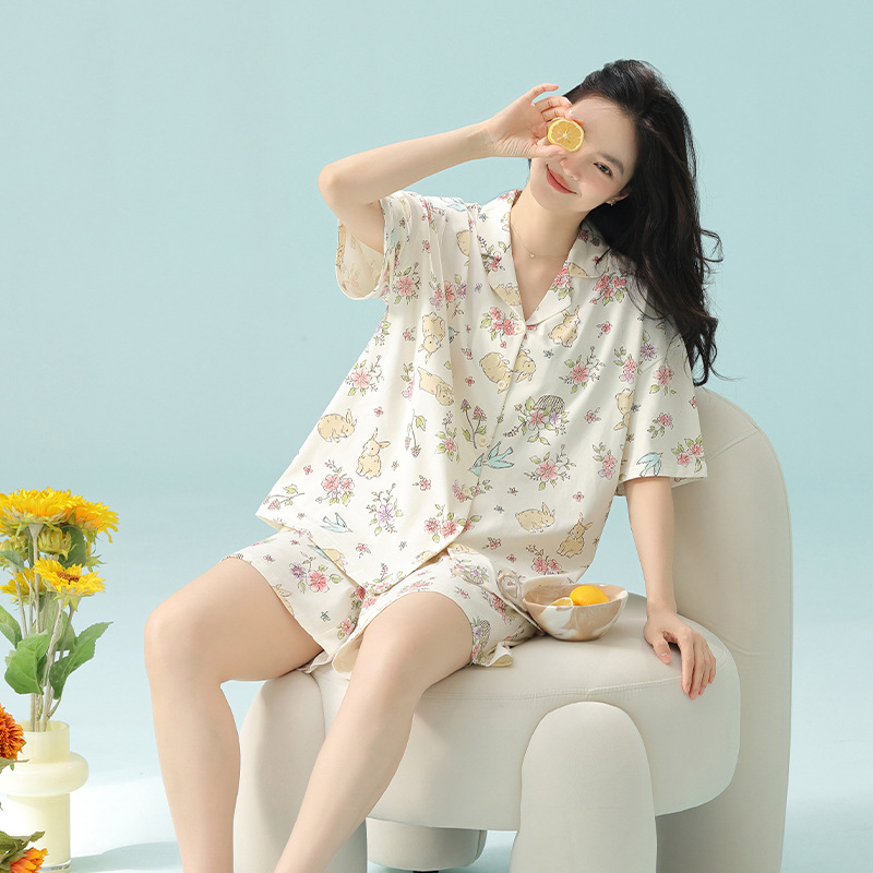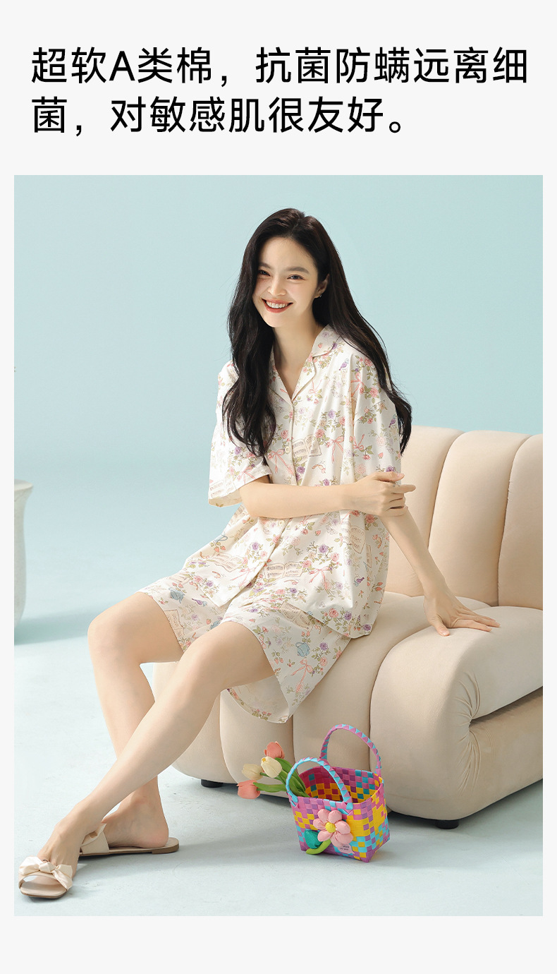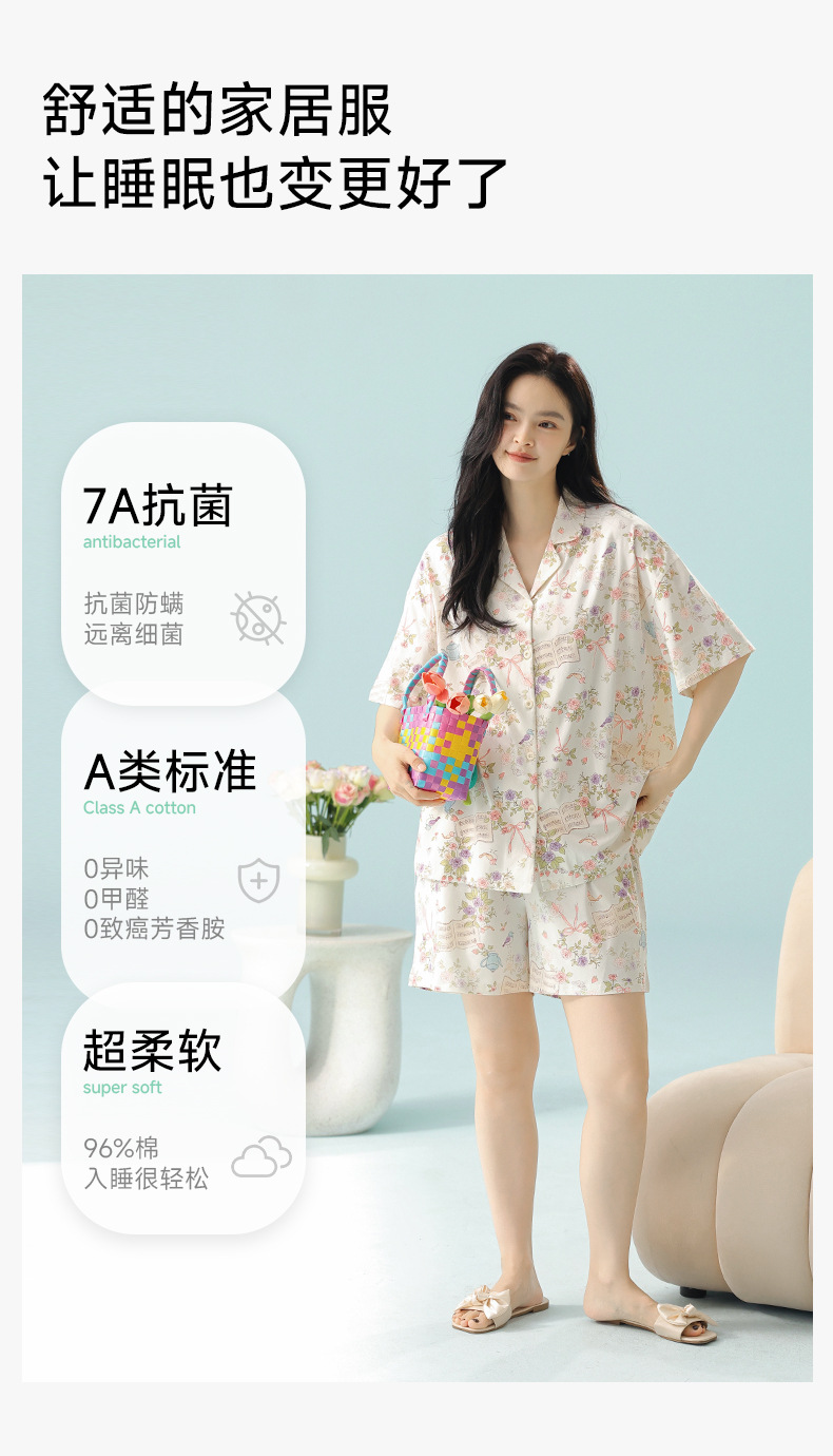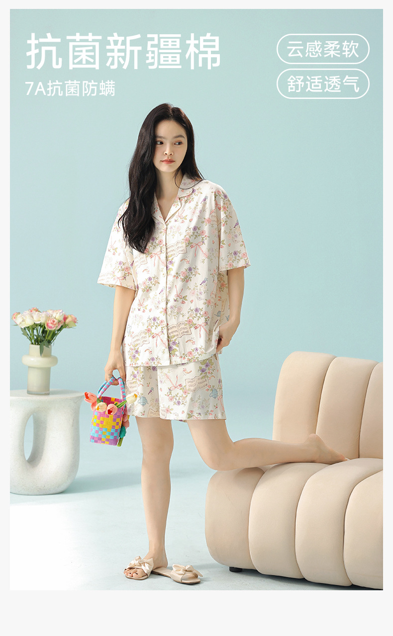 【 Antibacterial Xinjiang Cotton 】 Spring and summer pajamas, summer pure cotton women's Class a cartoon style Stretched-frame cotton short-sleeved home wear