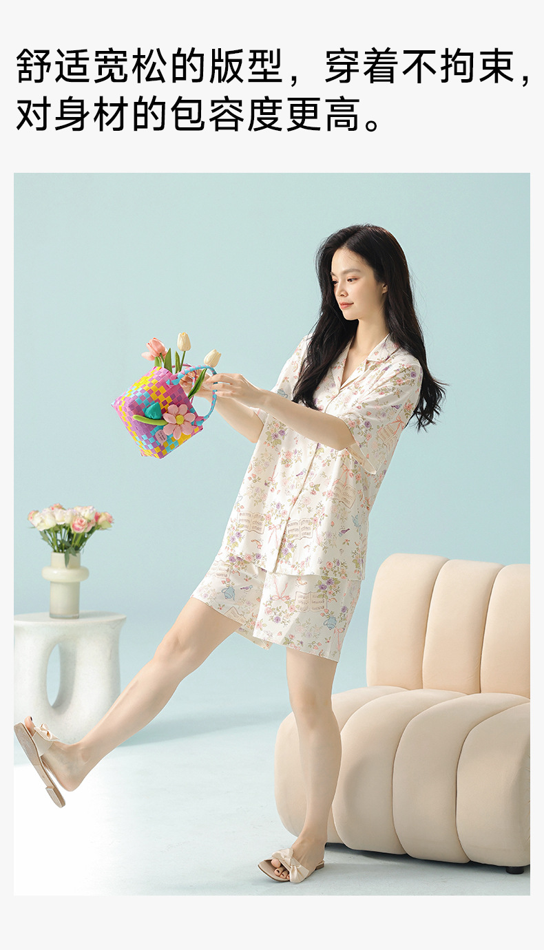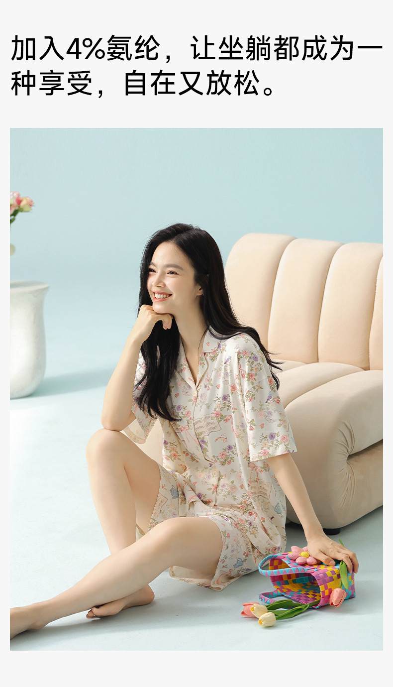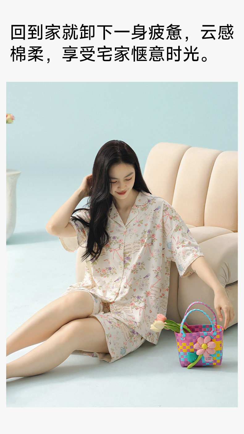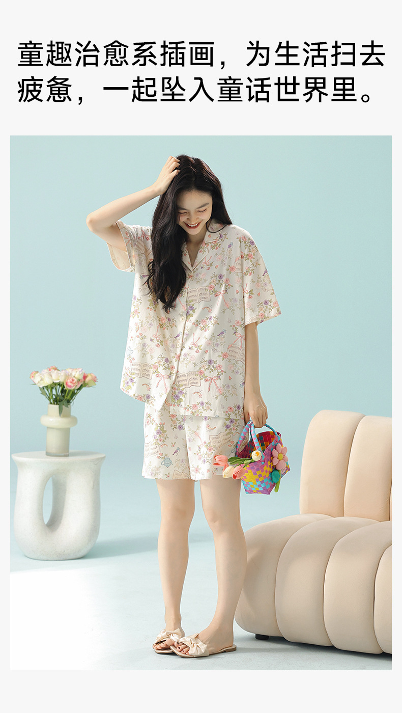 【 Antibacterial Xinjiang Cotton 】 Spring and summer pajamas, summer pure cotton women's Class a cartoon style Stretched-frame cotton short-sleeved home wear
