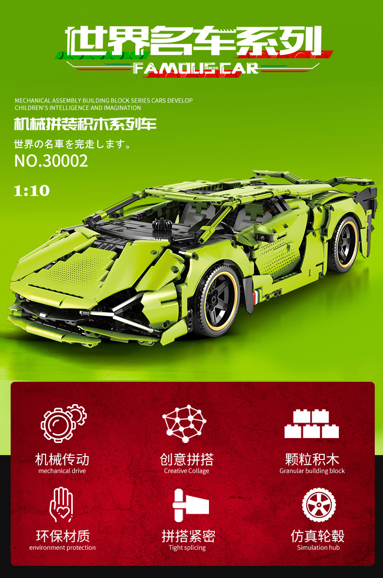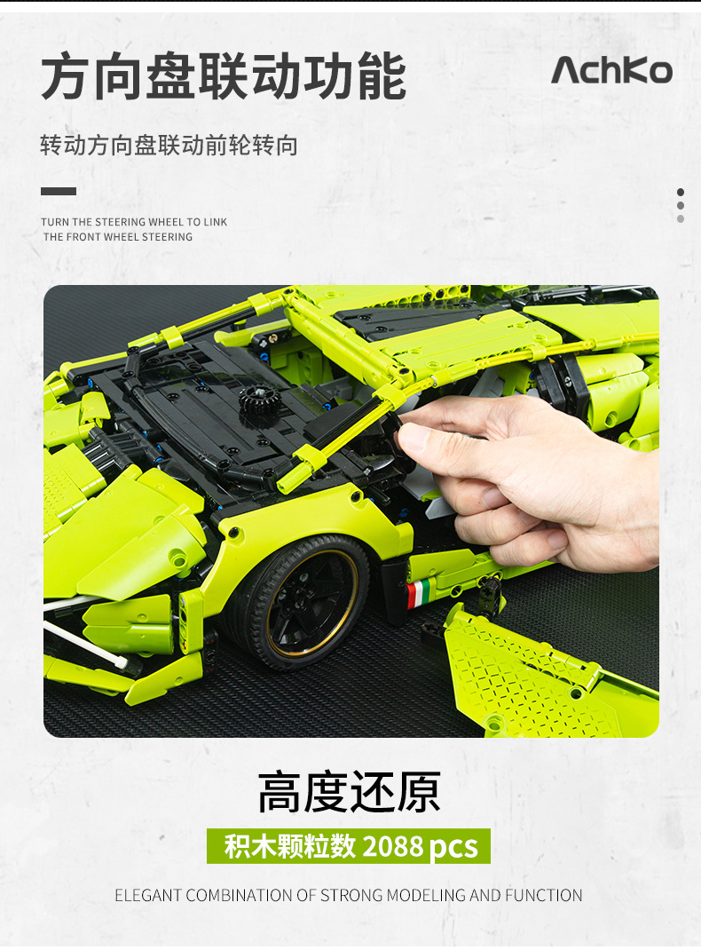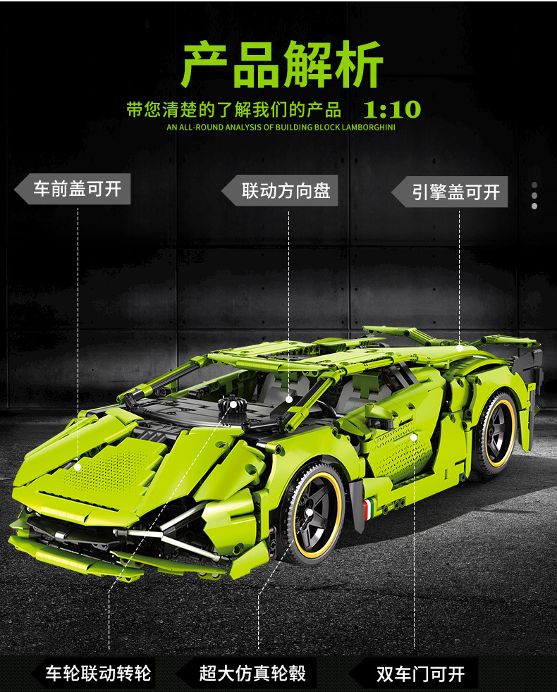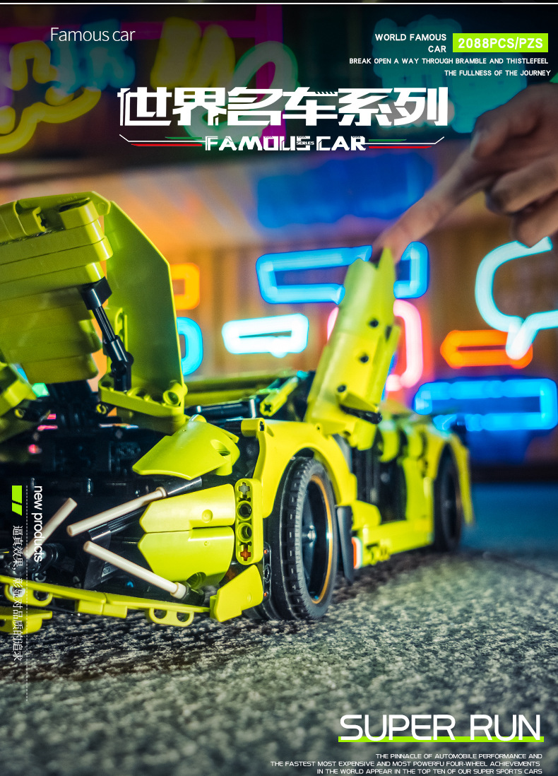 Aoke Simulation Lanbo Big Bull Building Block Car Model, children's building blocks, adult leisure building block wholesale manufacturer