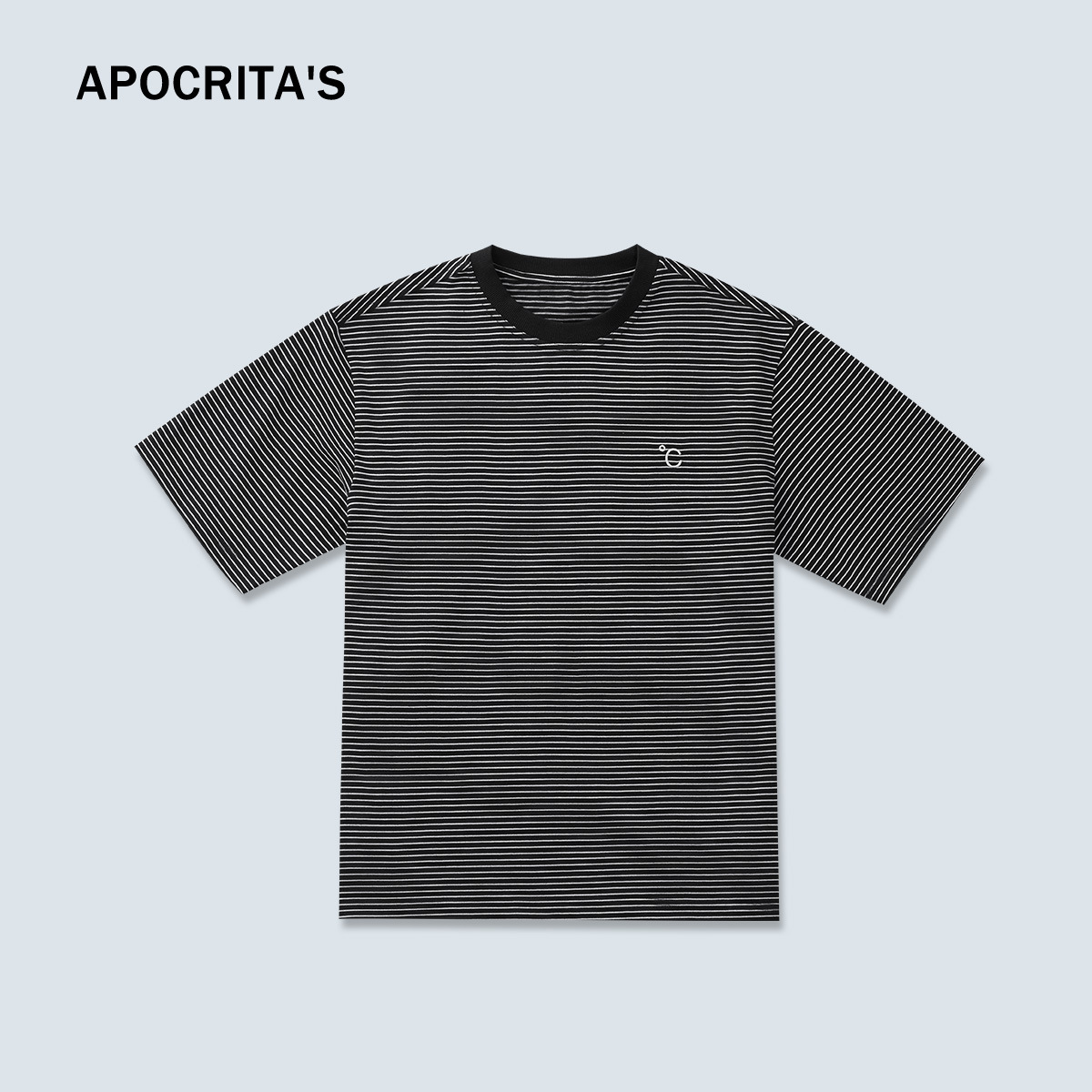 APO Men's Wear: A highly anticipated color-blocking striped short-sleeved T-shirt for men, a trendy brand with embroidered loose round-neck casual innerwear