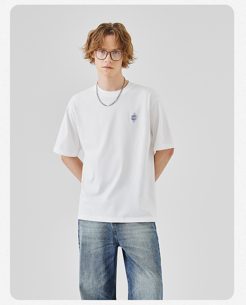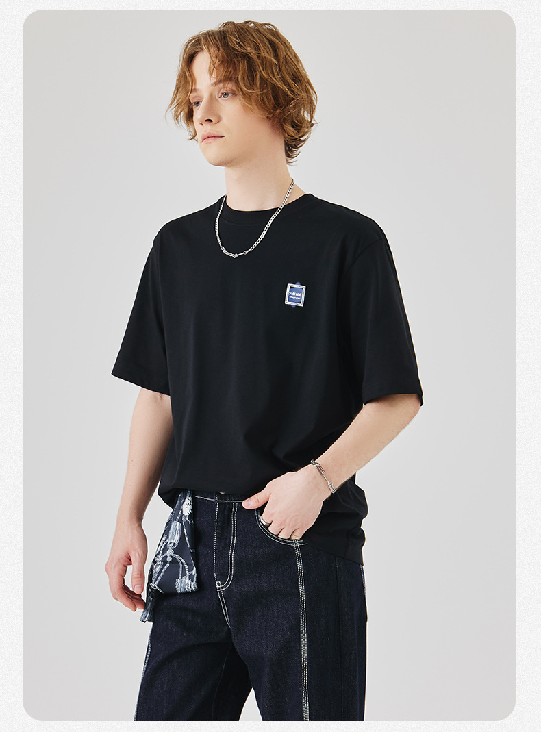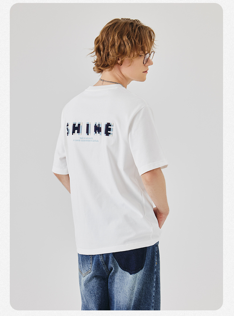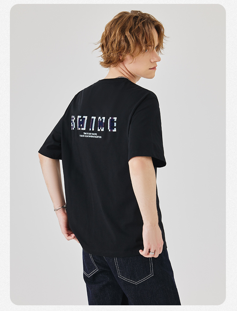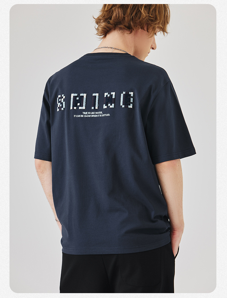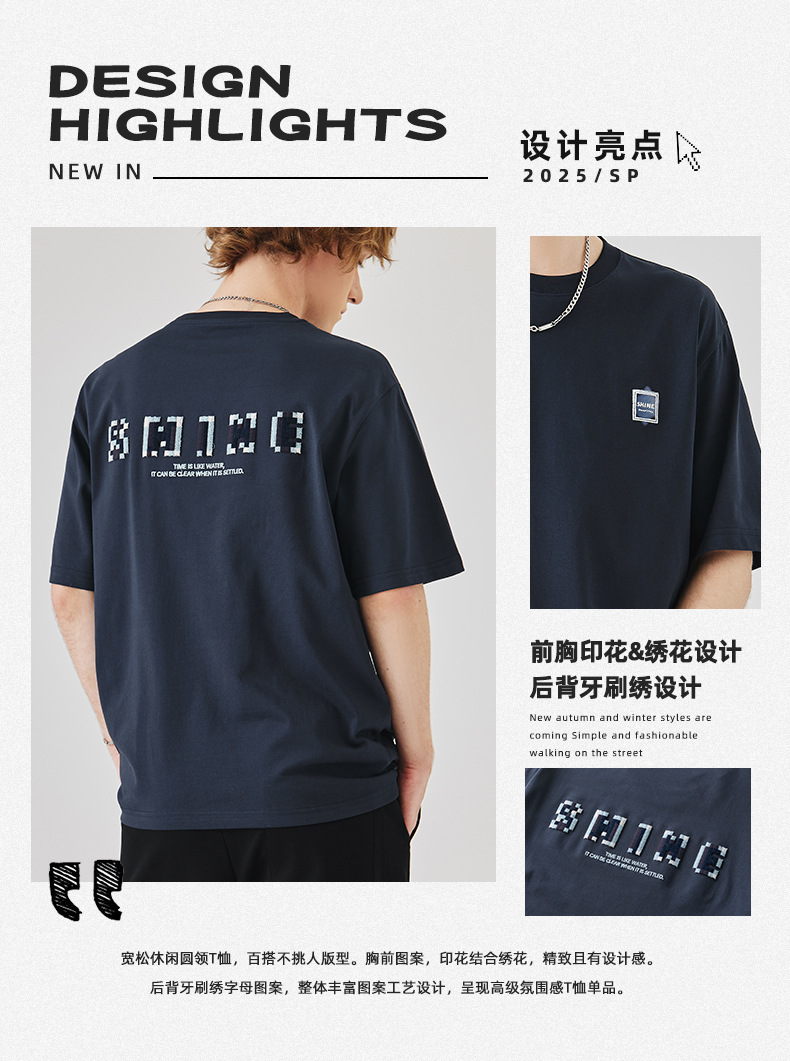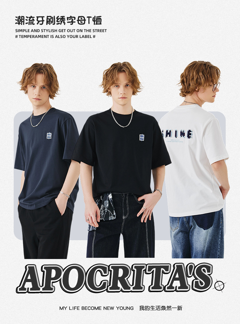 APO Men's Wear: A versatile printed short-sleeved T-shirt for men, a summer trend brand with three-dimensional embroidery and a loose round-neck inner layer