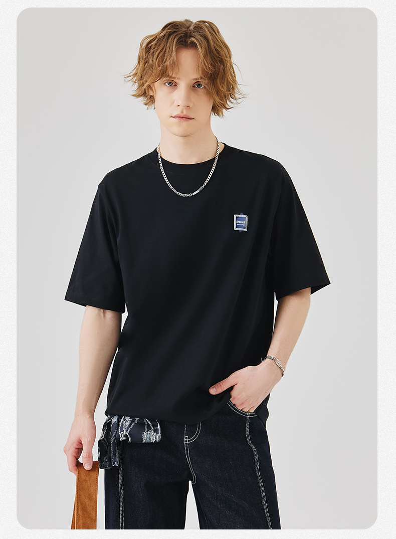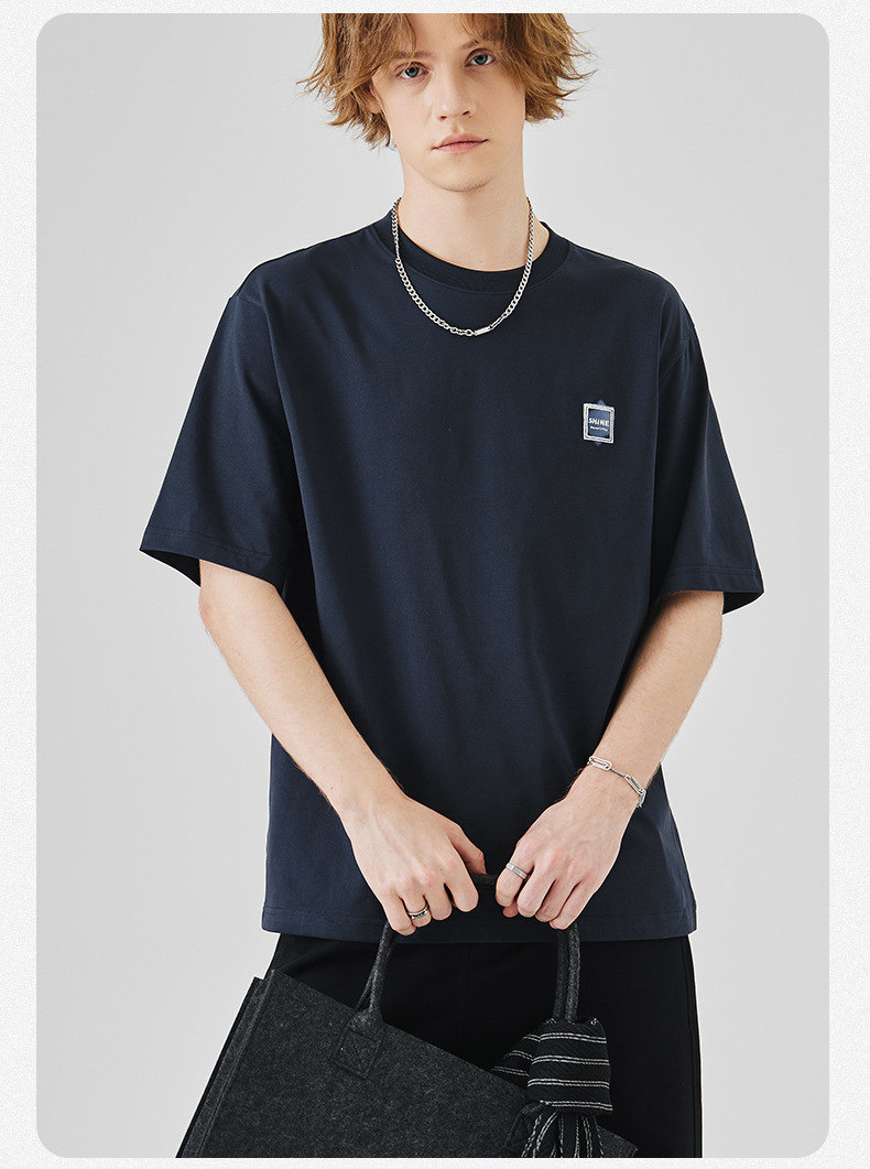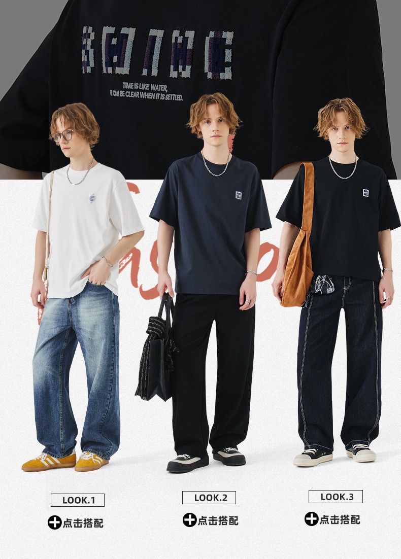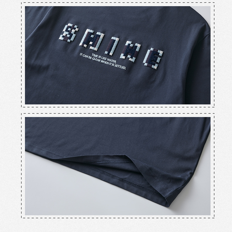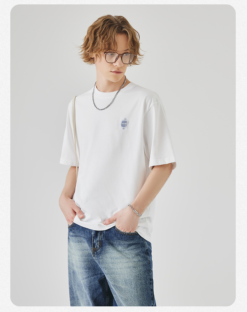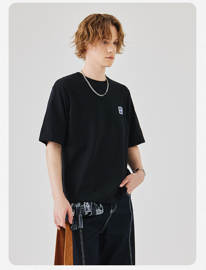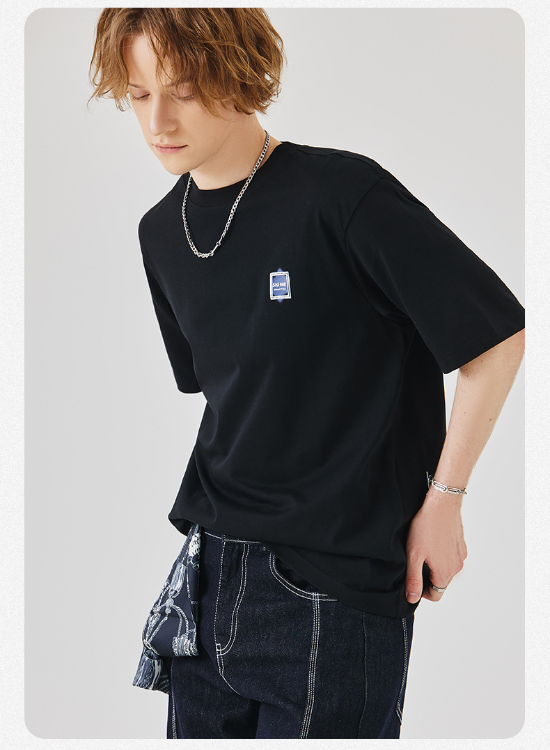 APO Men's Wear: A versatile printed short-sleeved T-shirt for men, a summer trend brand with three-dimensional embroidery and a loose round-neck inner layer