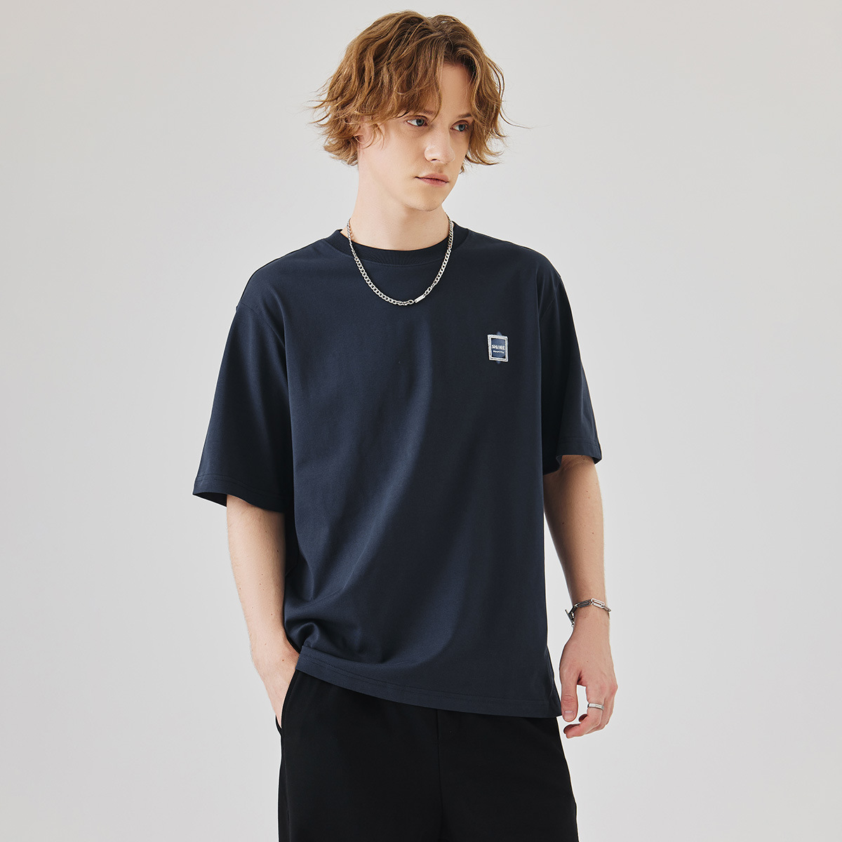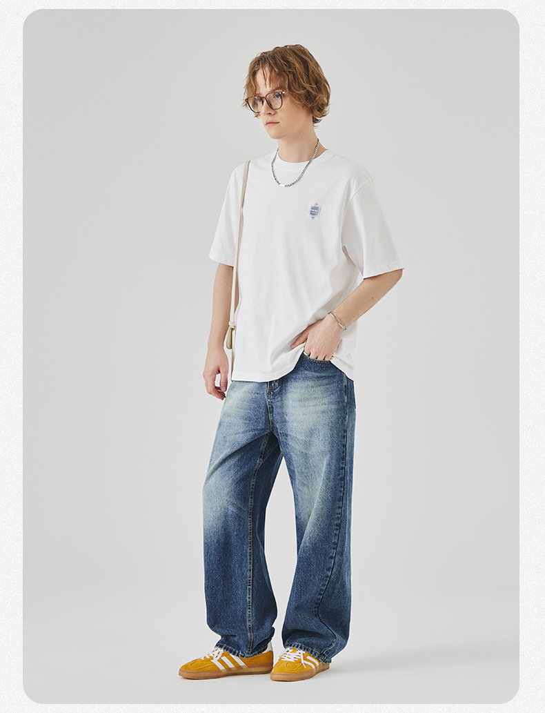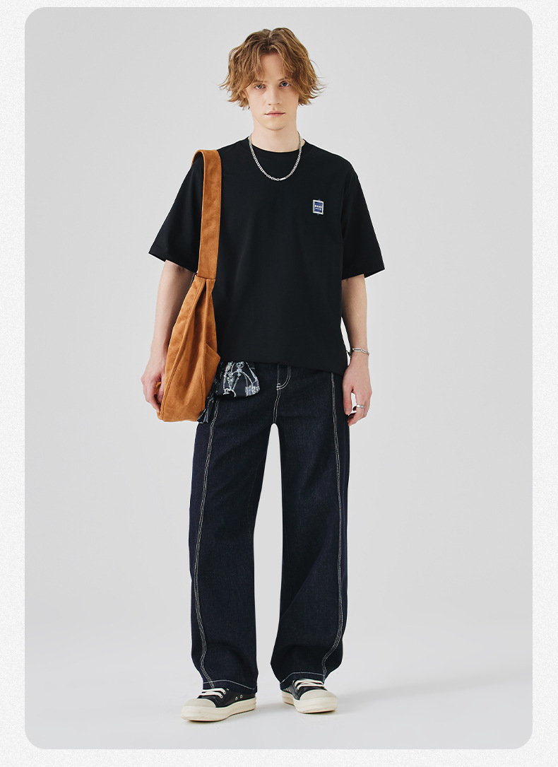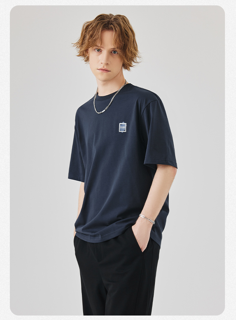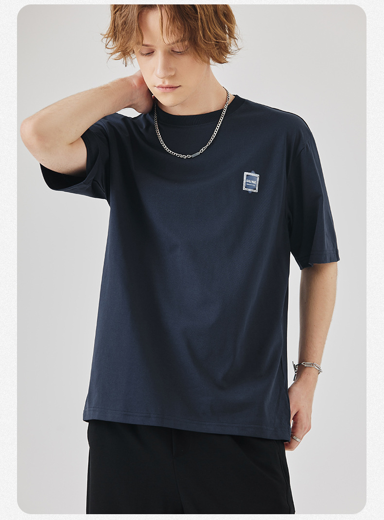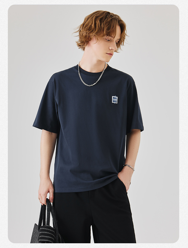 APO Men's Wear: A versatile printed short-sleeved T-shirt for men, a summer trend brand with three-dimensional embroidery and a loose round-neck inner layer