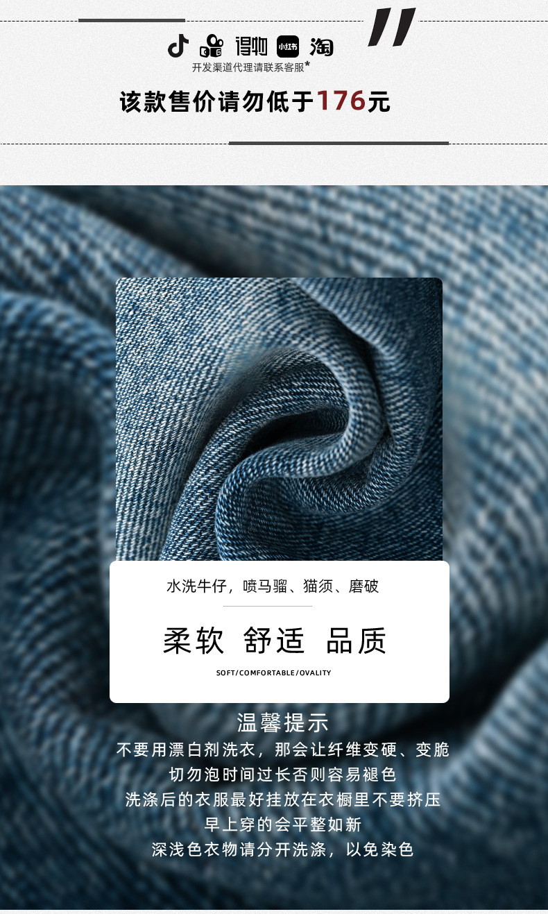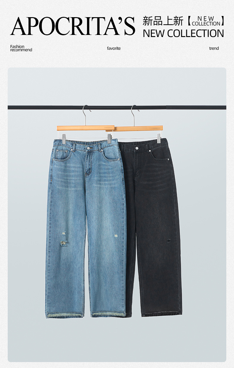 APO Men's Wear: American high street ripped jeans for men's spring, a high-end, trendy, cool, loose, straight long pants