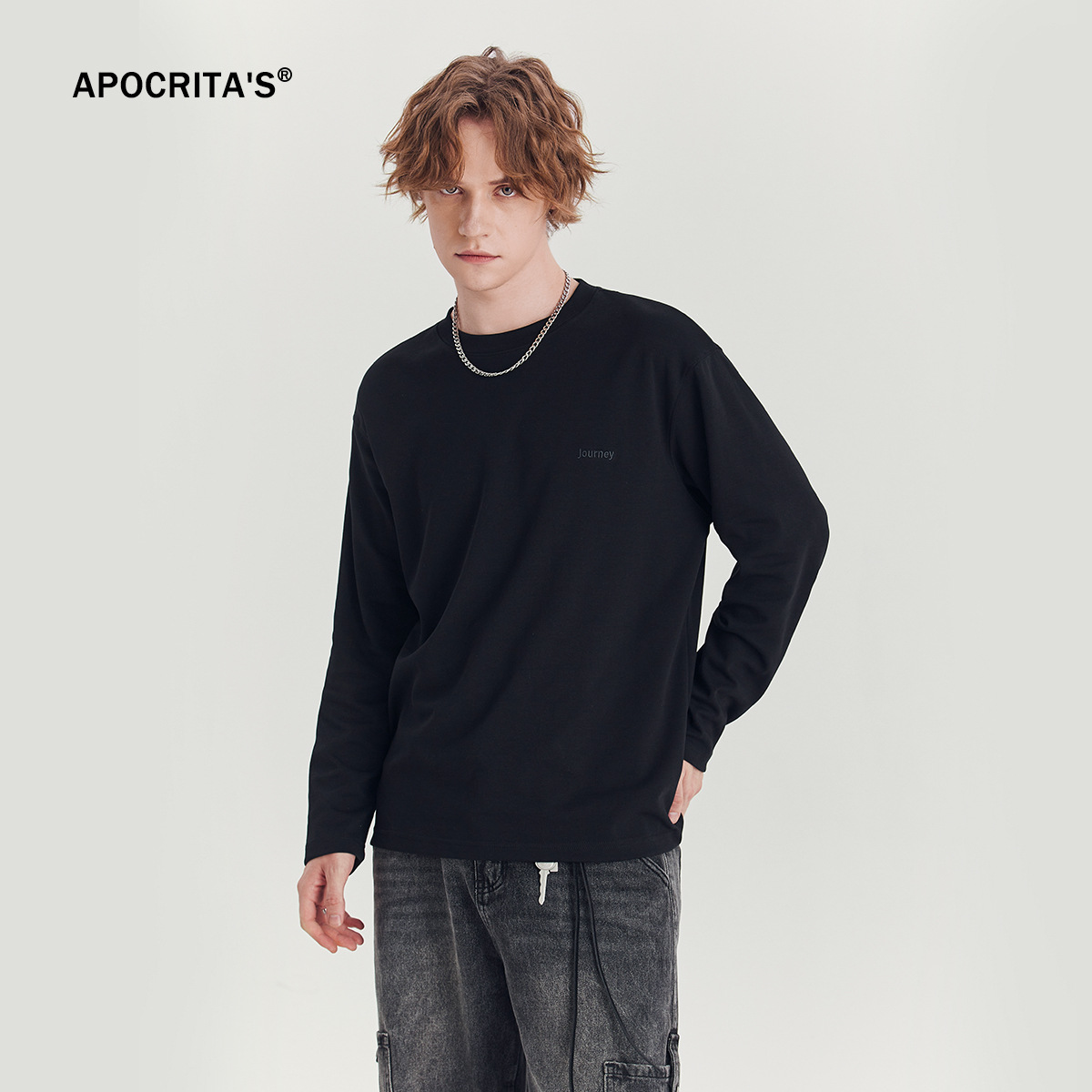 APO Men's Wear: Autumn and winter long-sleeved T-shirts, a trendy men's brand. Loose round-neck printed embroidered base layer with an inner top