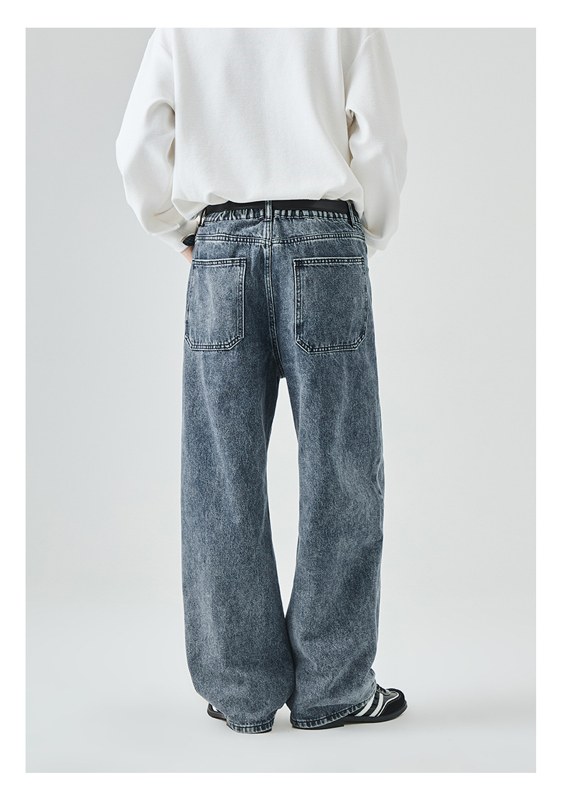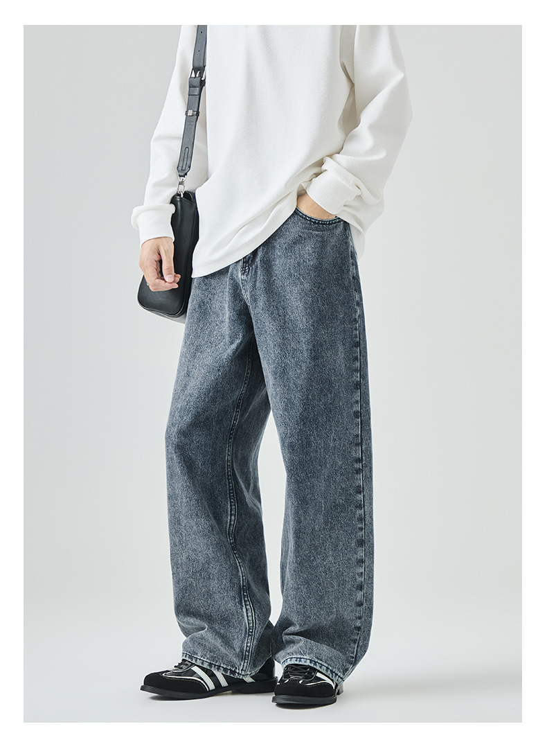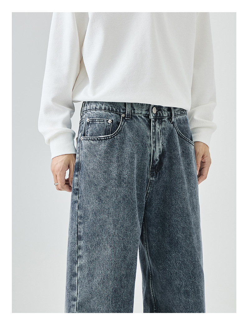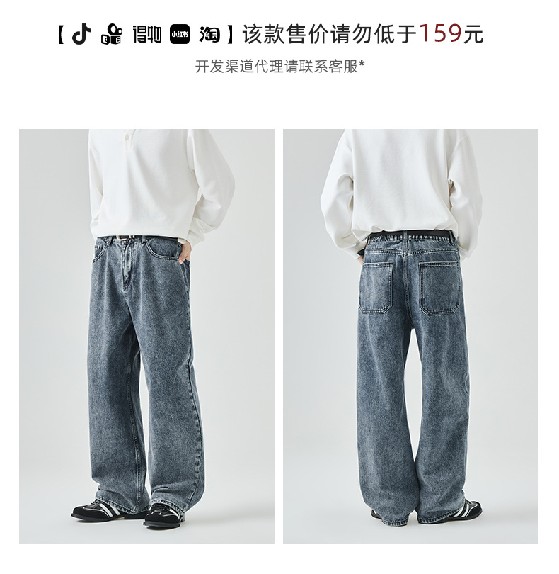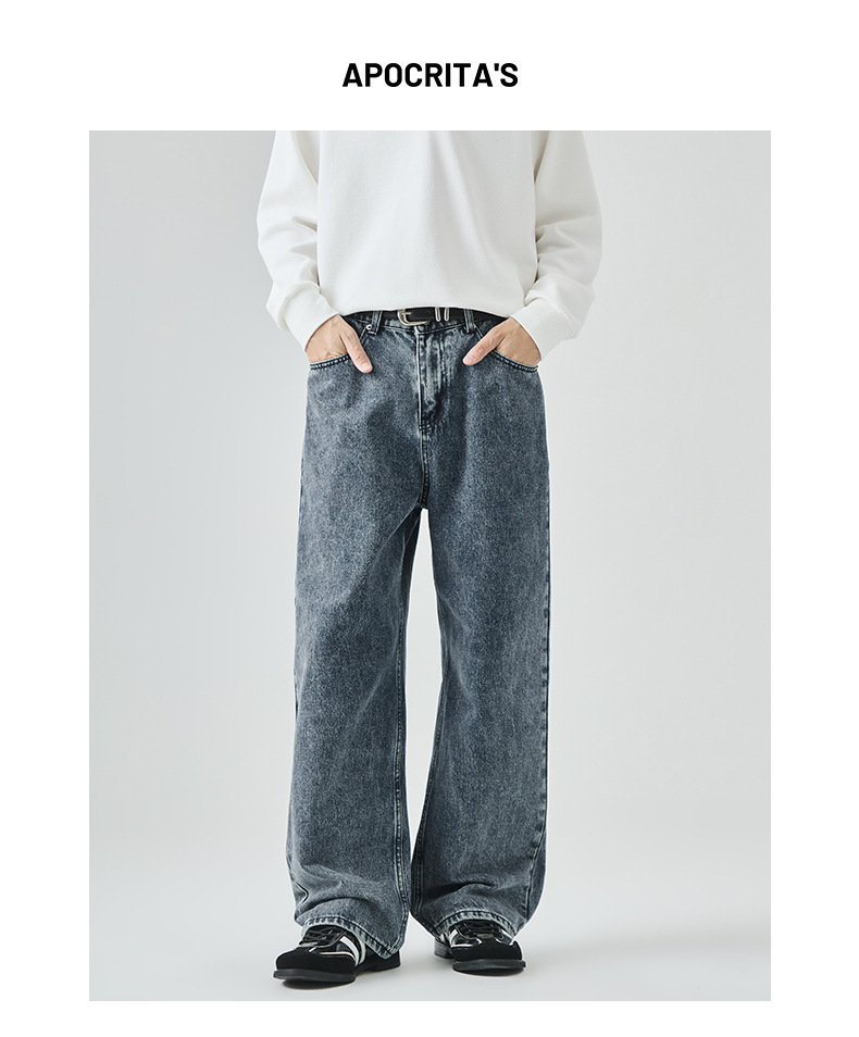 APO Men's Wear: Cross-border men's fashion brand jeans, autumn American high street washed distressed loose straight-leg long pants