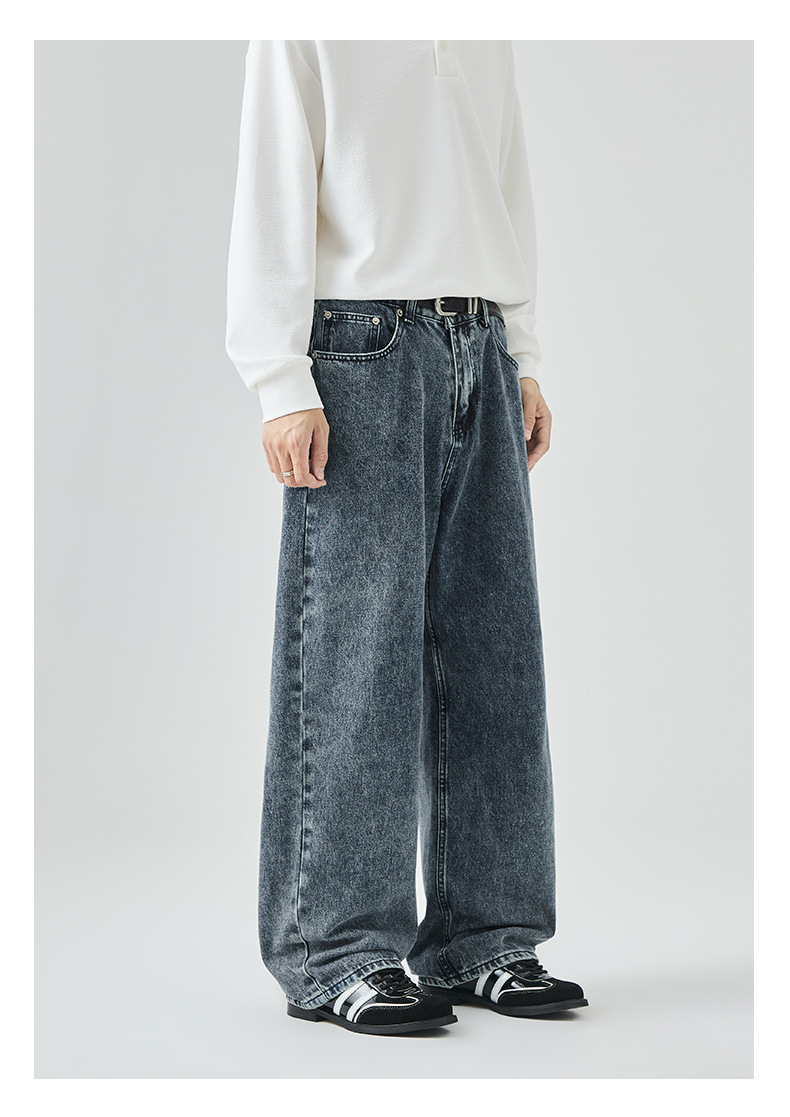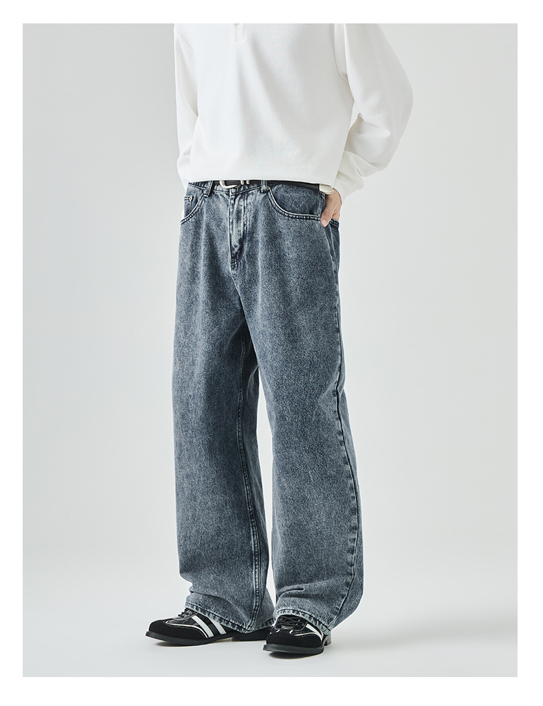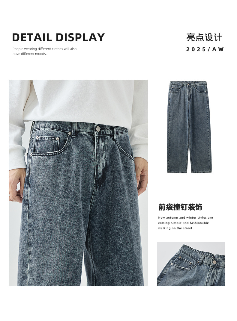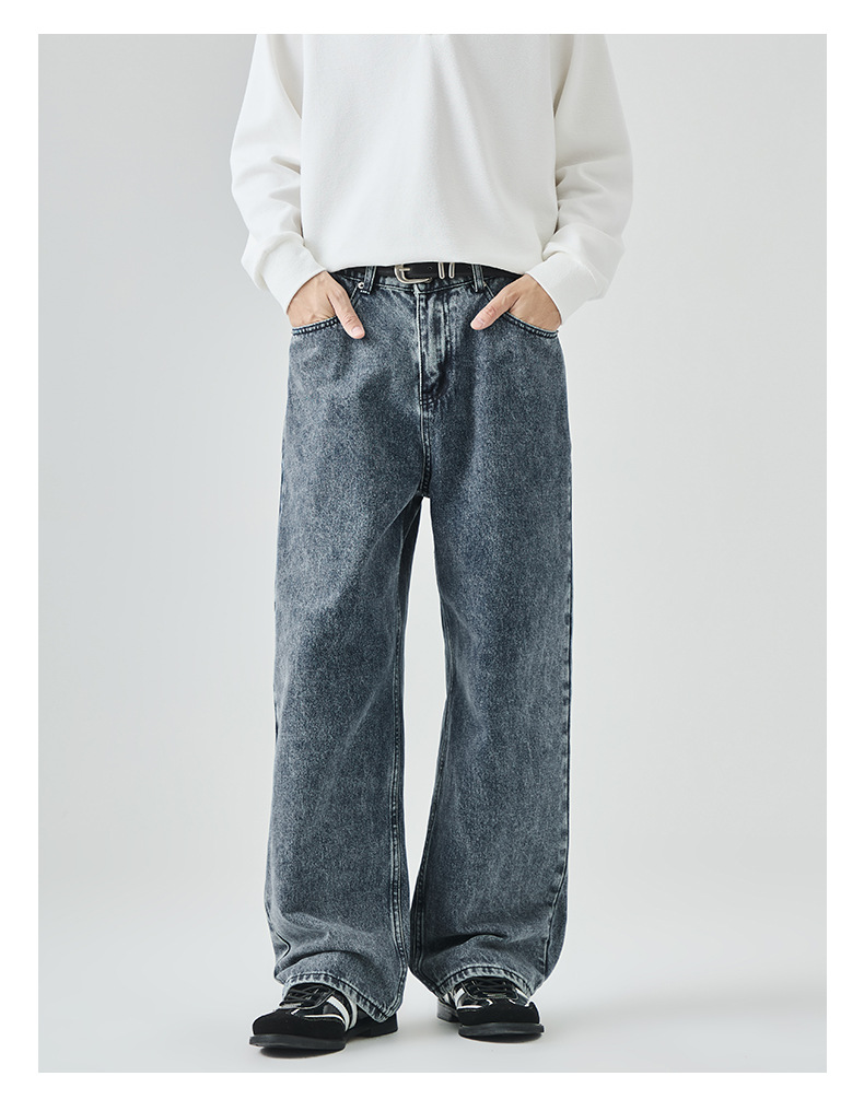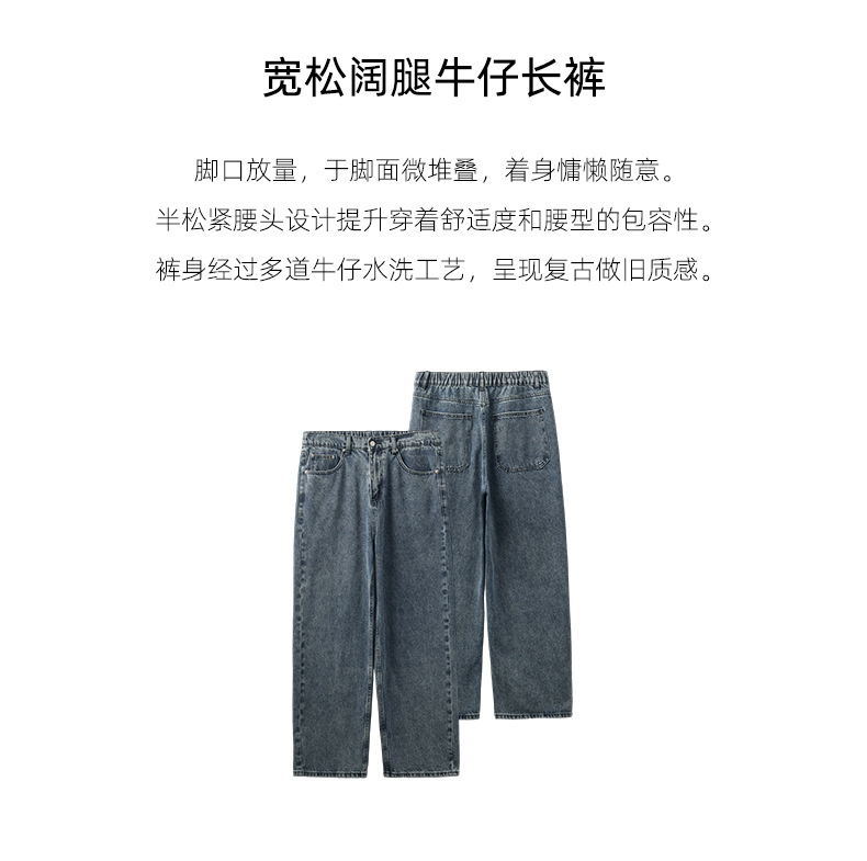 APO Men's Wear: Cross-border men's fashion brand jeans, autumn American high street washed distressed loose straight-leg long pants