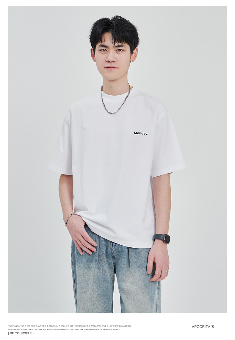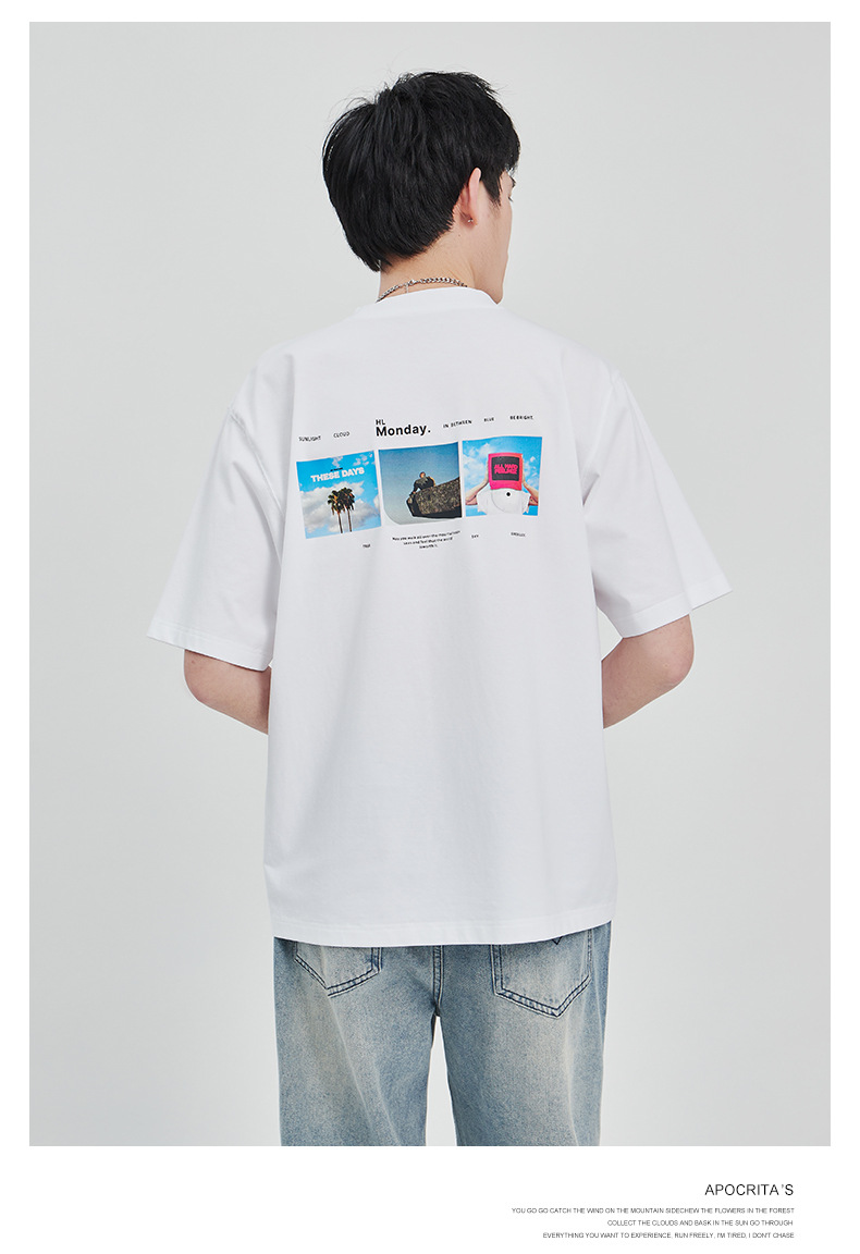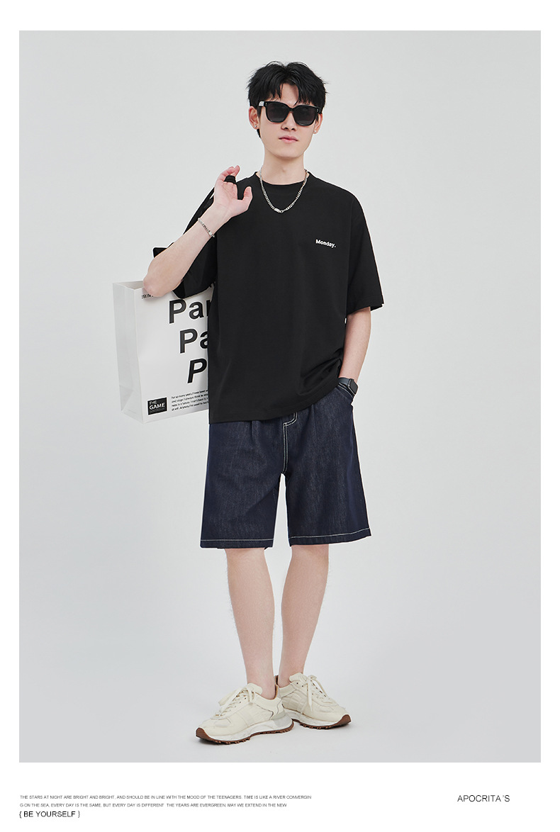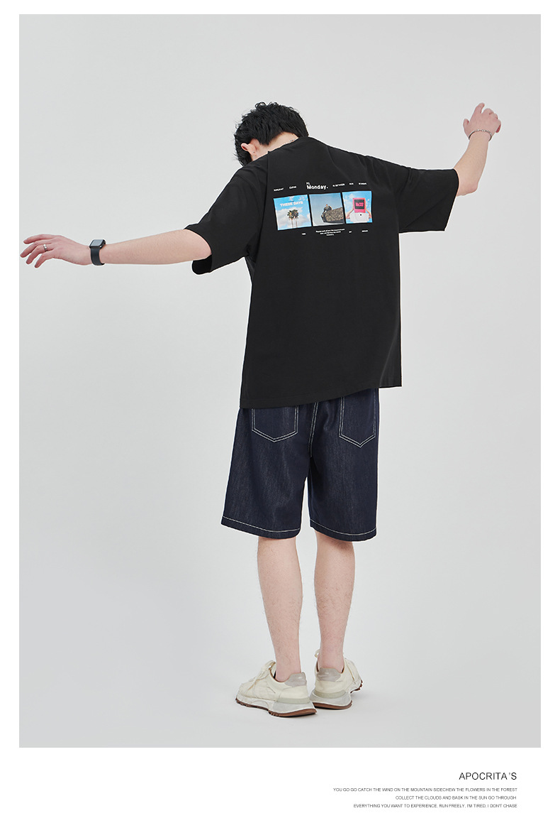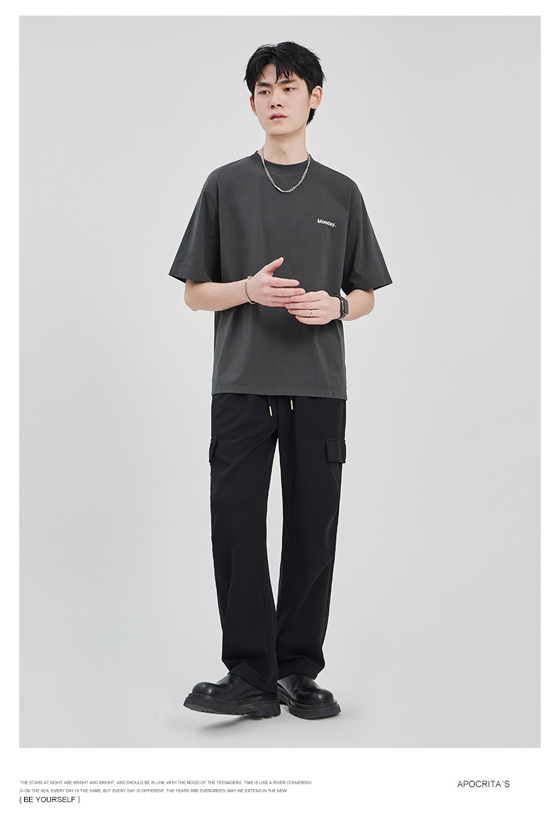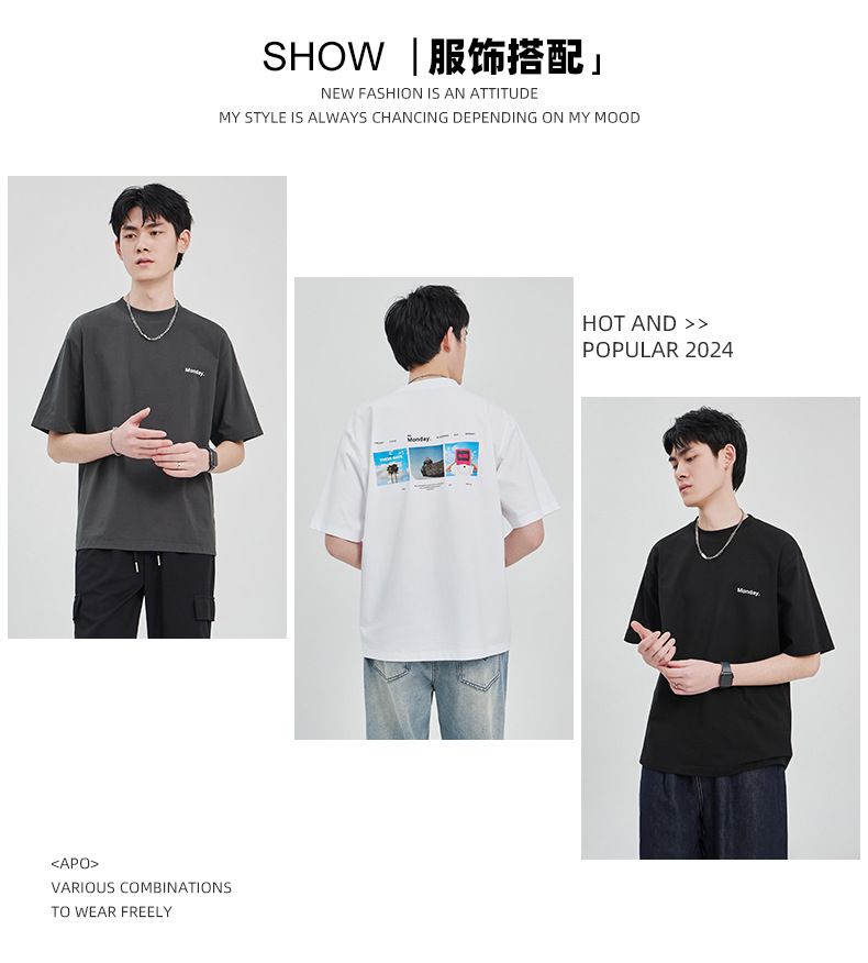 APO Men's Wear: The latest pure cotton casual T-shirt for men in summer 2024, a trendy round-neck printed short-sleeved shirt for men