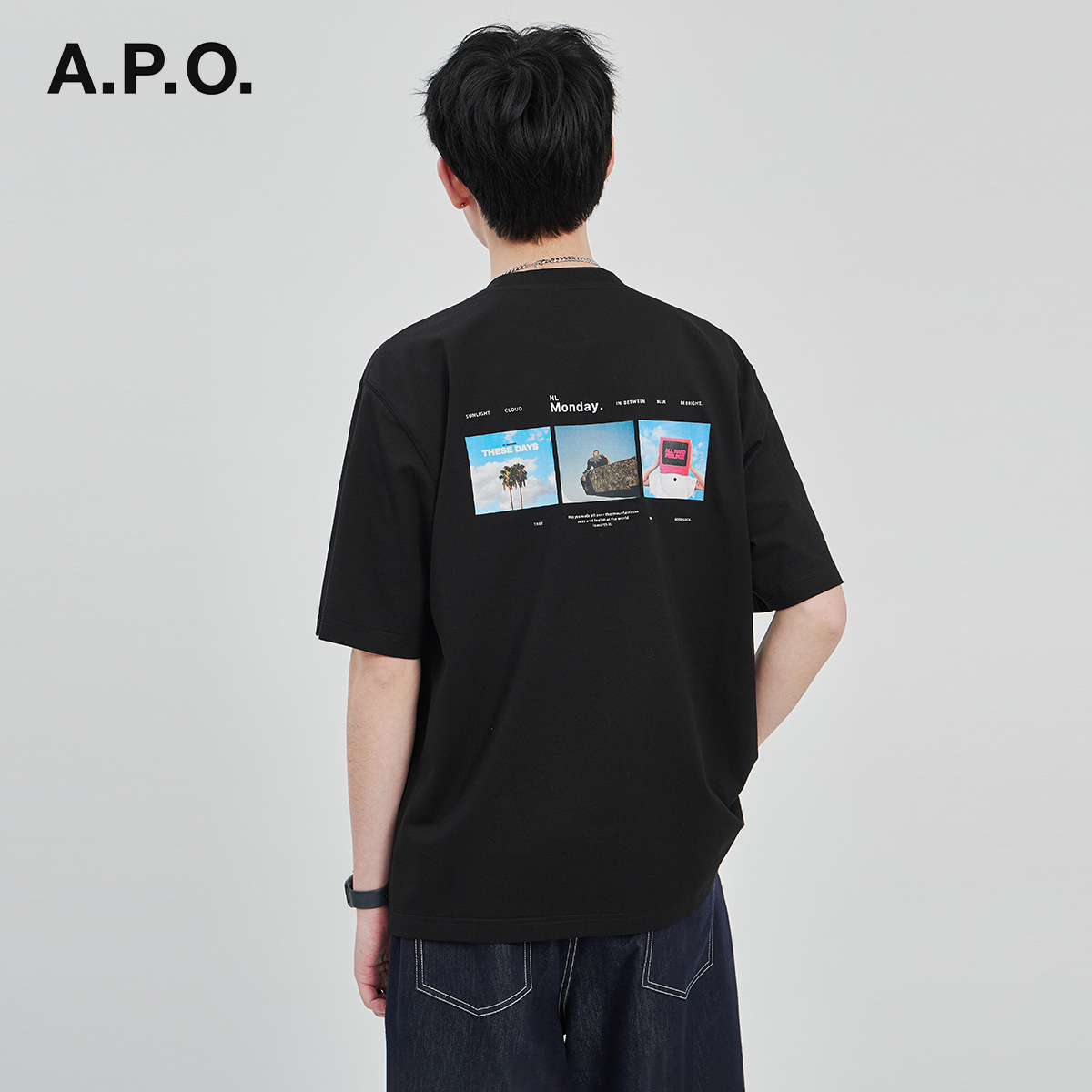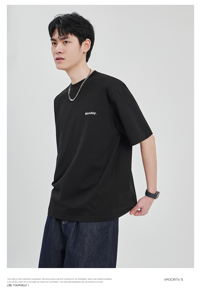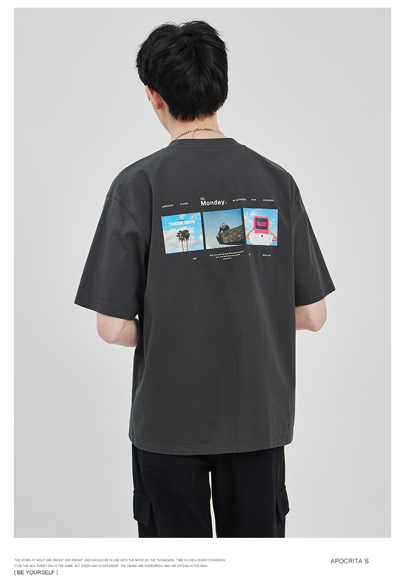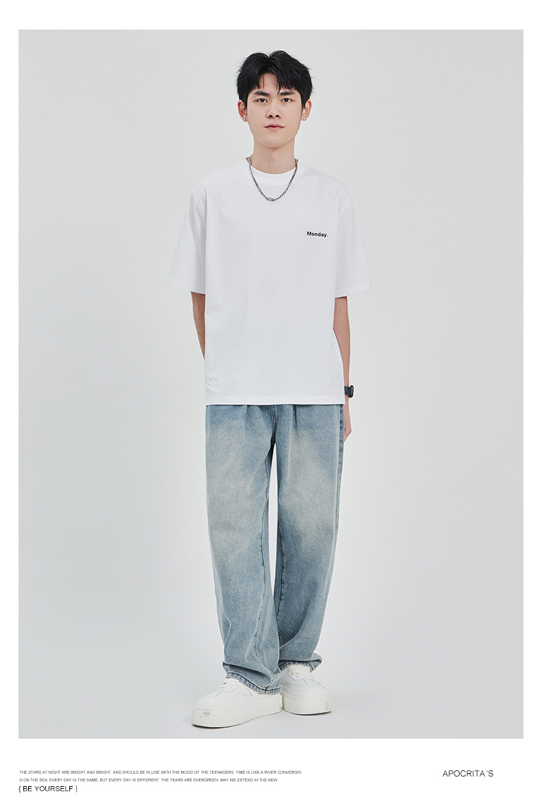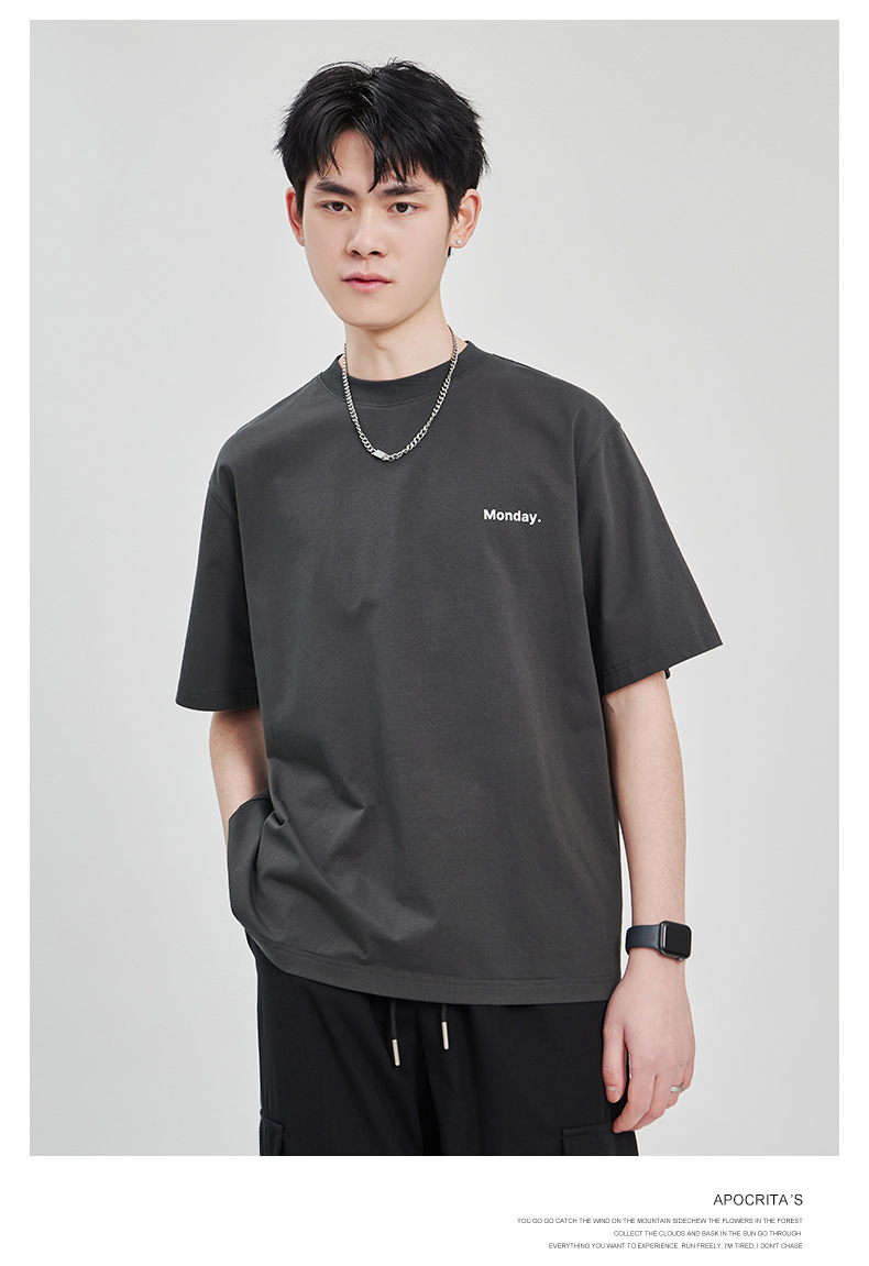 APO Men's Wear: The latest pure cotton casual T-shirt for men in summer 2024, a trendy round-neck printed short-sleeved shirt for men