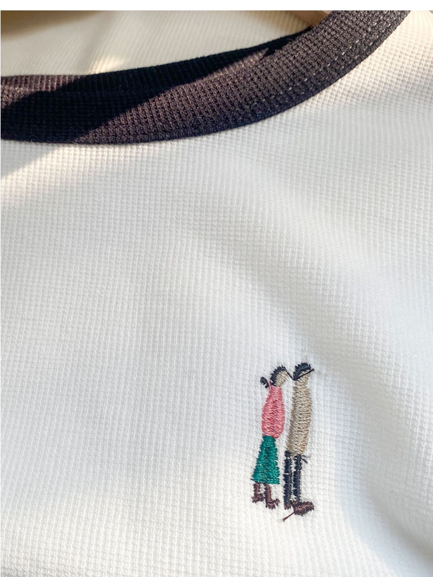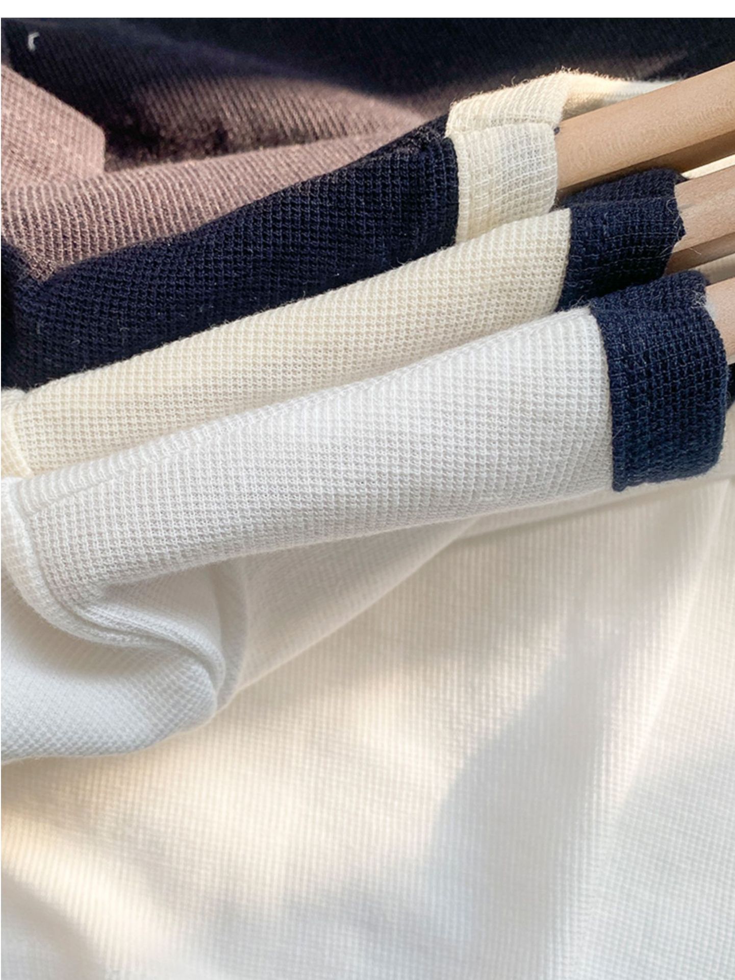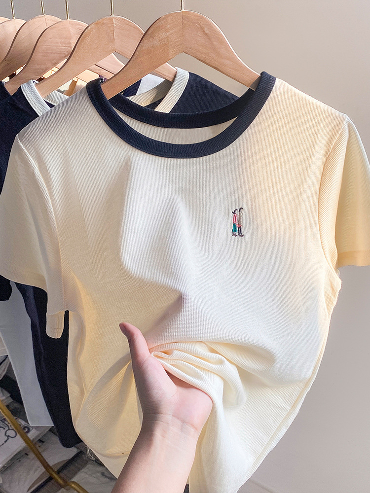 Apricot-colored pure cotton short-sleeved women's summer 2022 new design sense embroidered T-shirt, thin waffle check slimming top