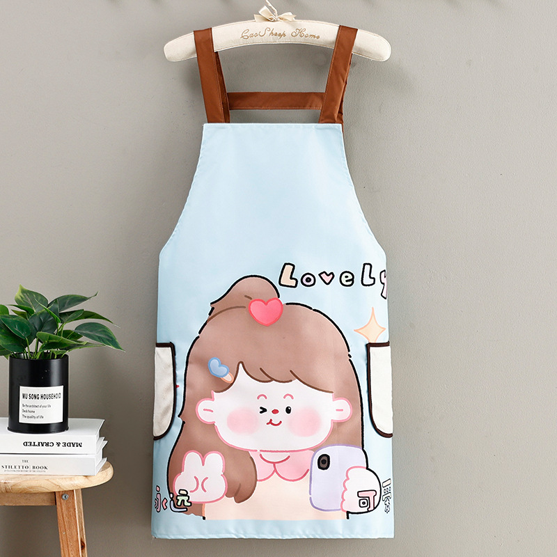 Apron Kitchen home thin waterproof apron for young and beautiful women cooking waterproof, oil-proof and stain-proof work clothes waist apron for women sleeveless Korean version