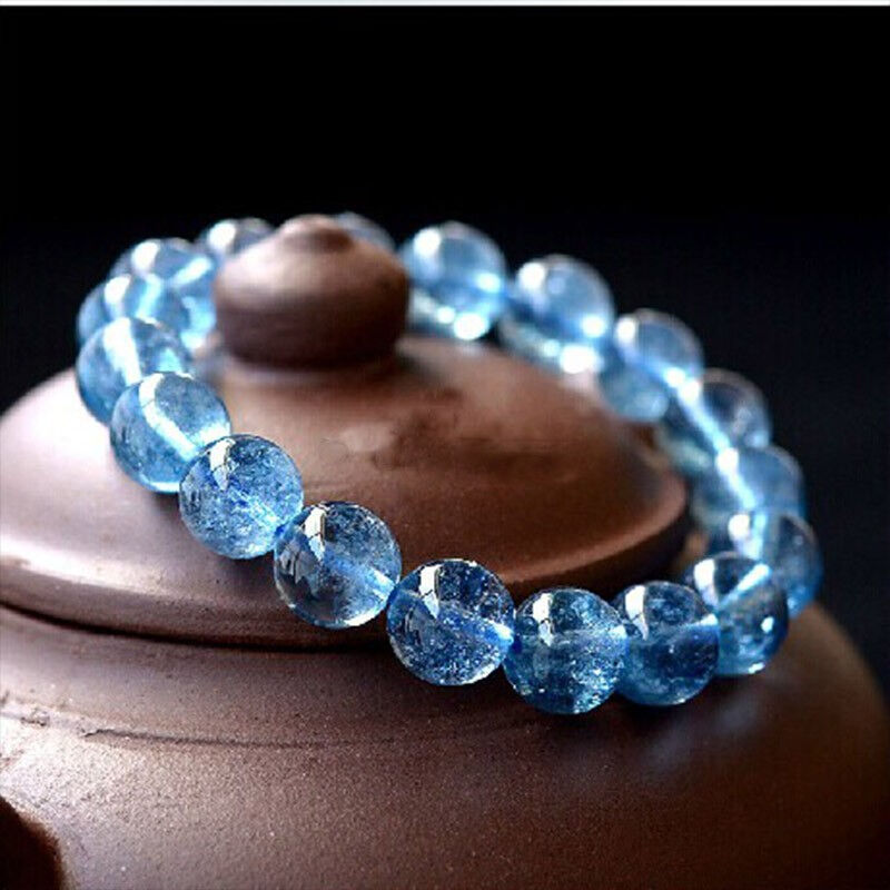 Aquamarine natural floral crystal bracelet, semi-precious stone bracelet, blue Buddhist prayer beads, couple, blue crystal bead diameter