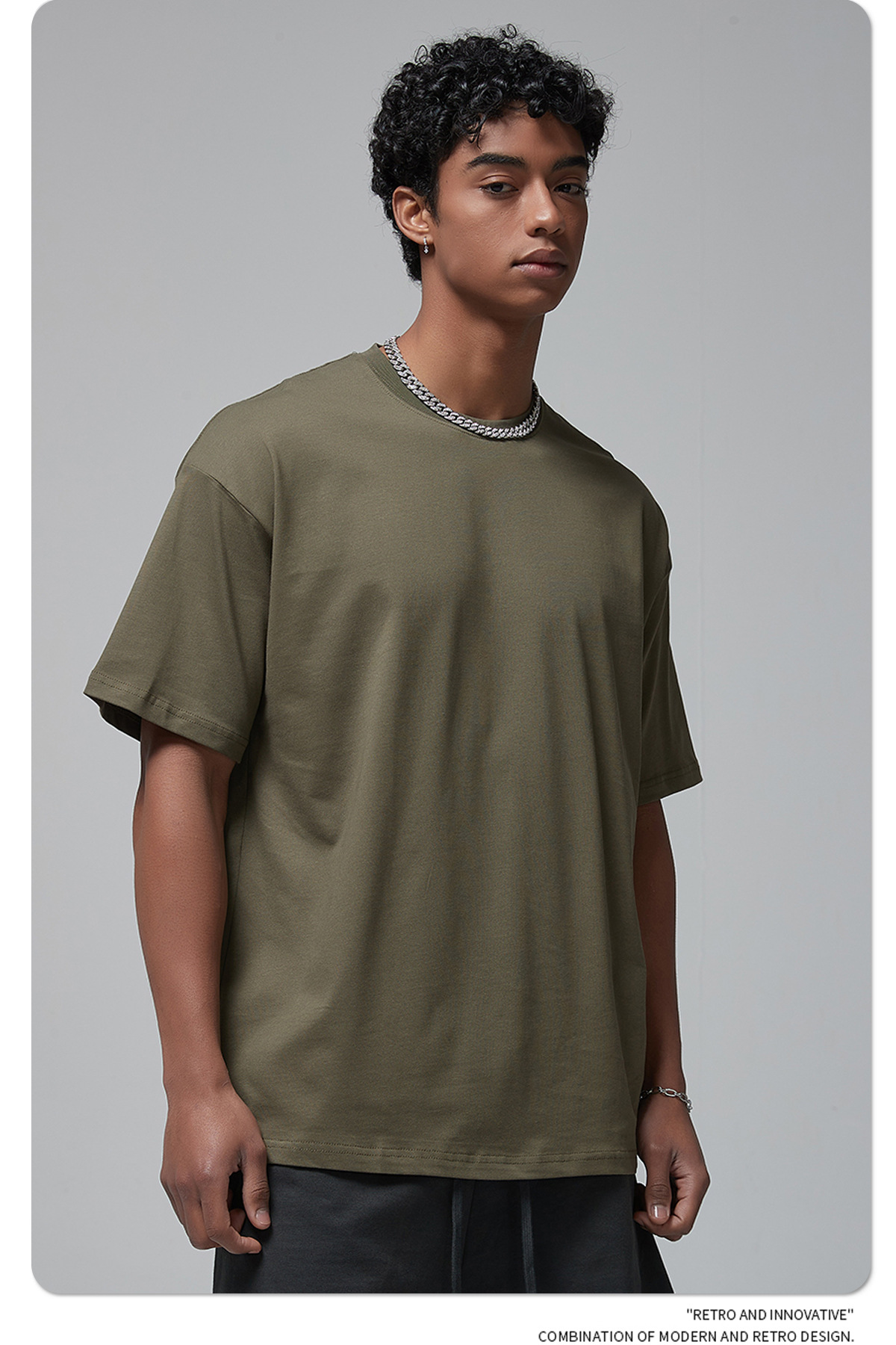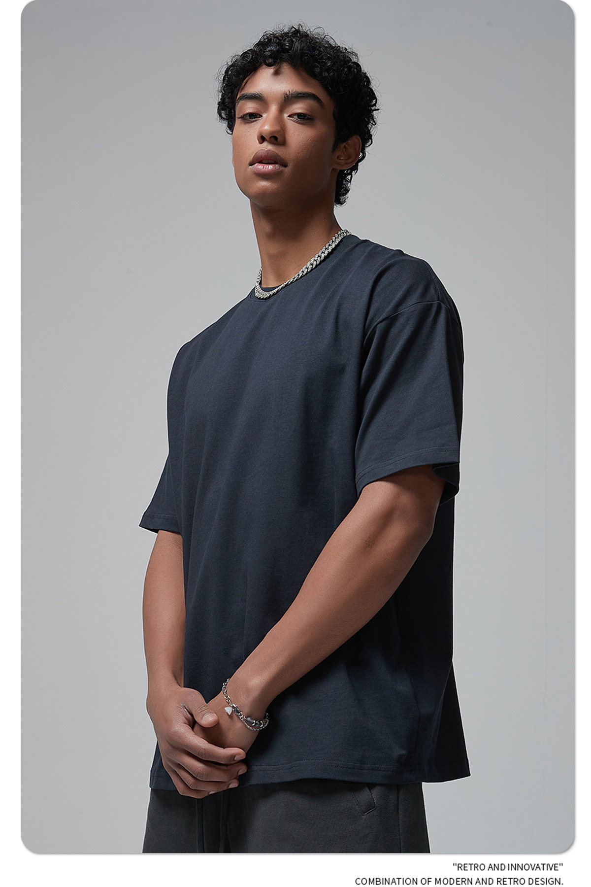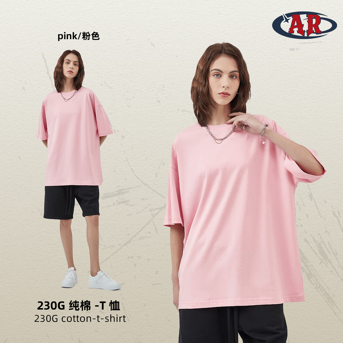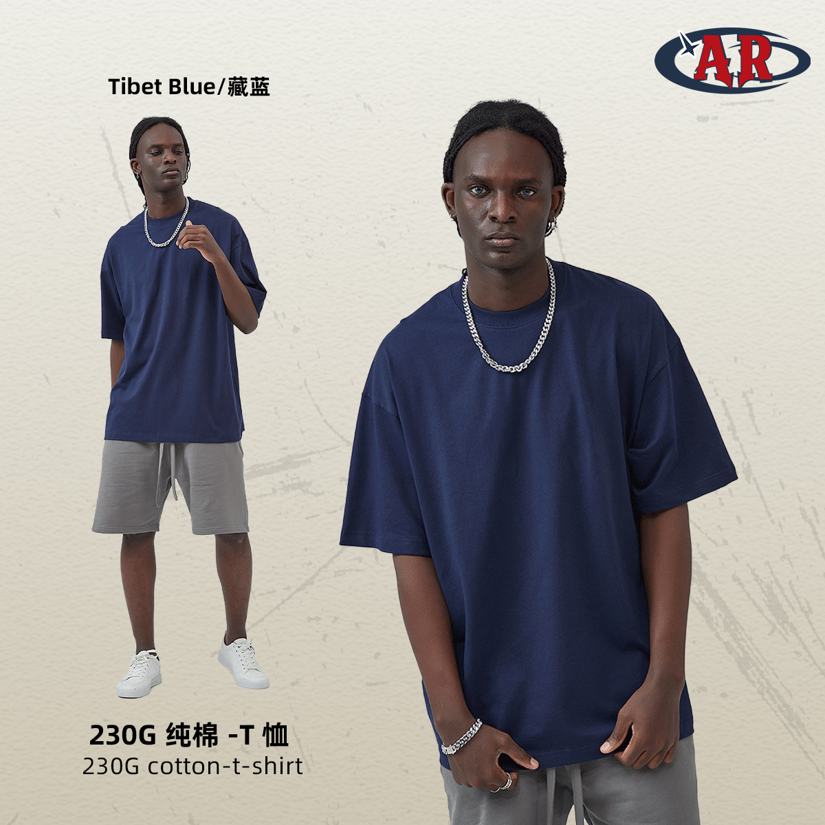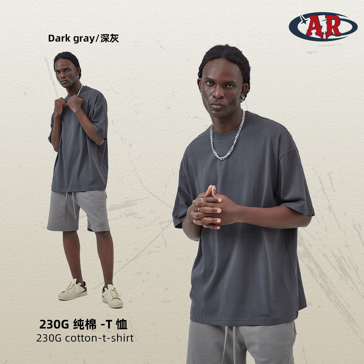 AR plus-size men's clothing, a European and American trendy brand 230G double-yarn pure cotton antibacterial short-sleeved men's T-shirt, solid color blank men's loose T-shirt