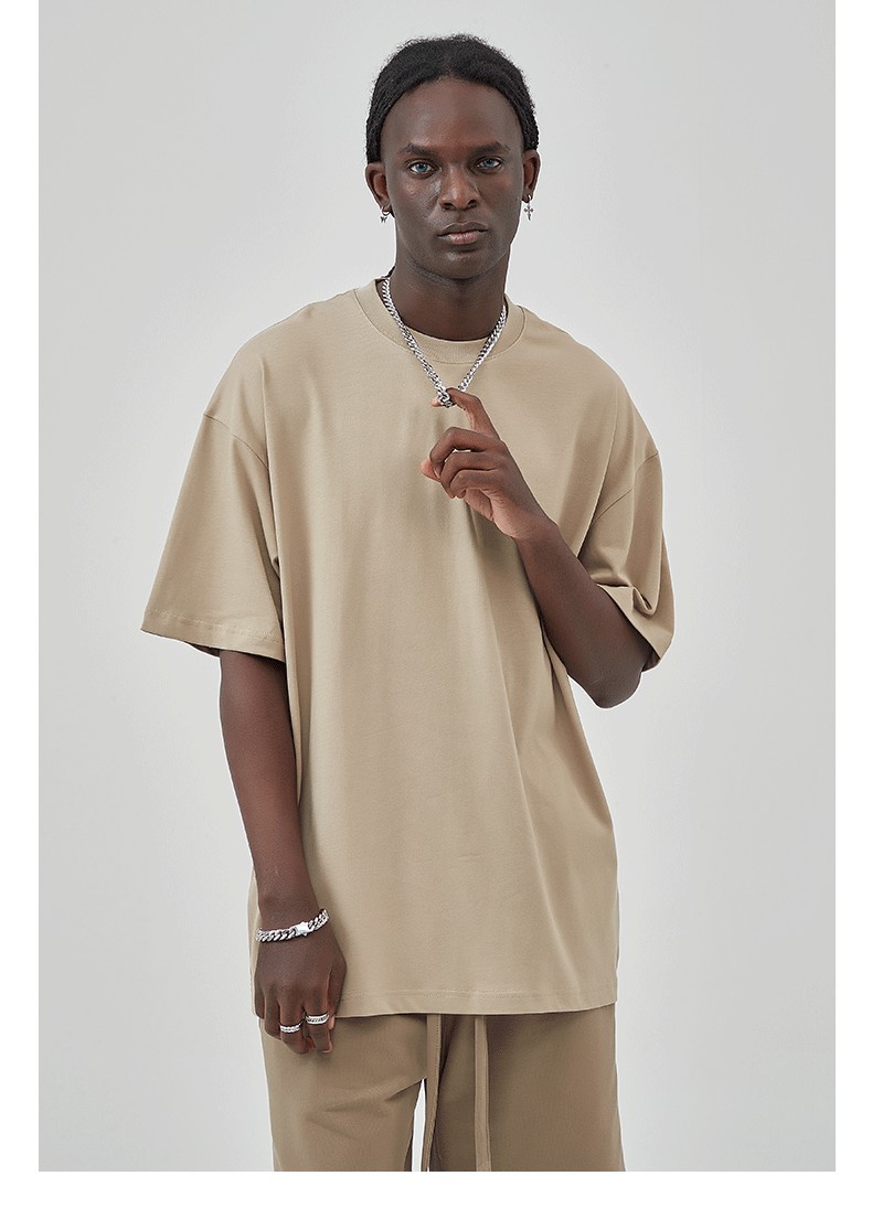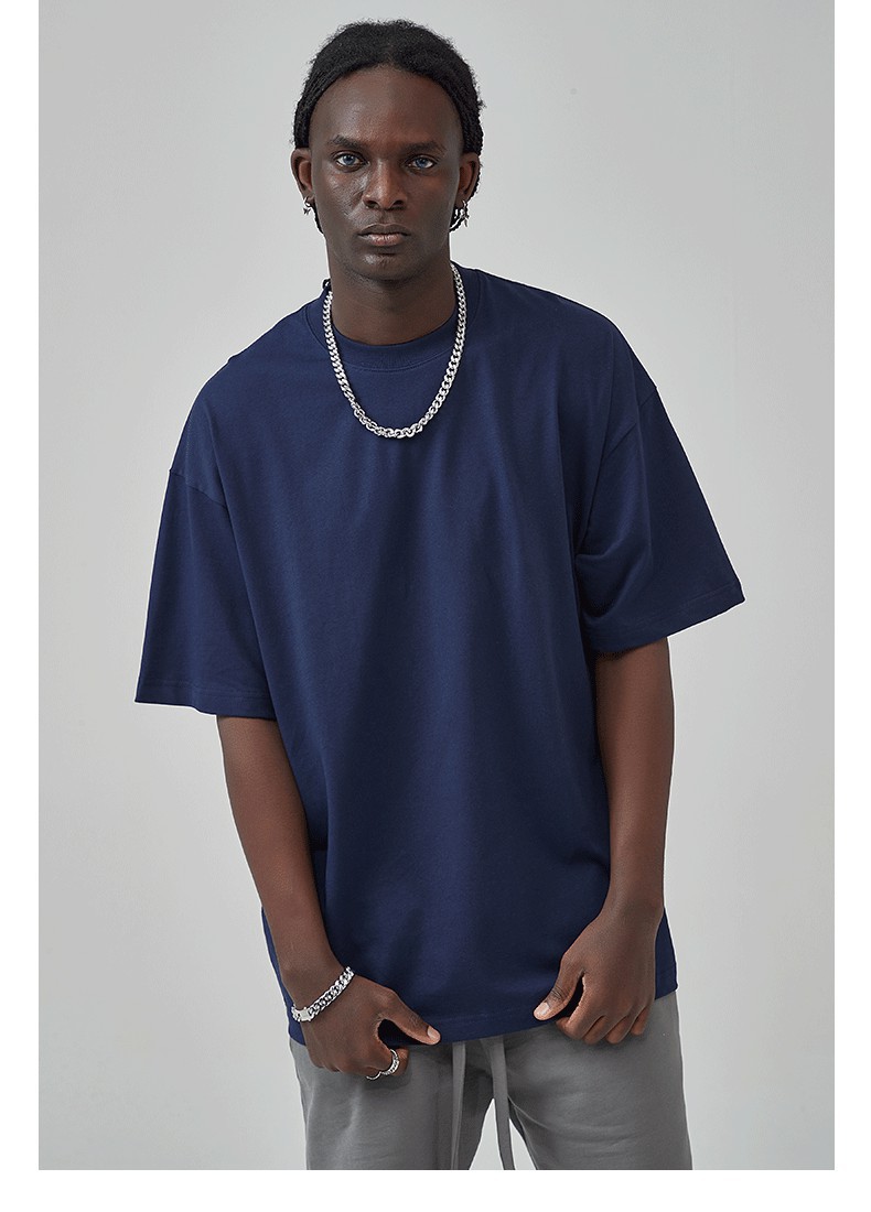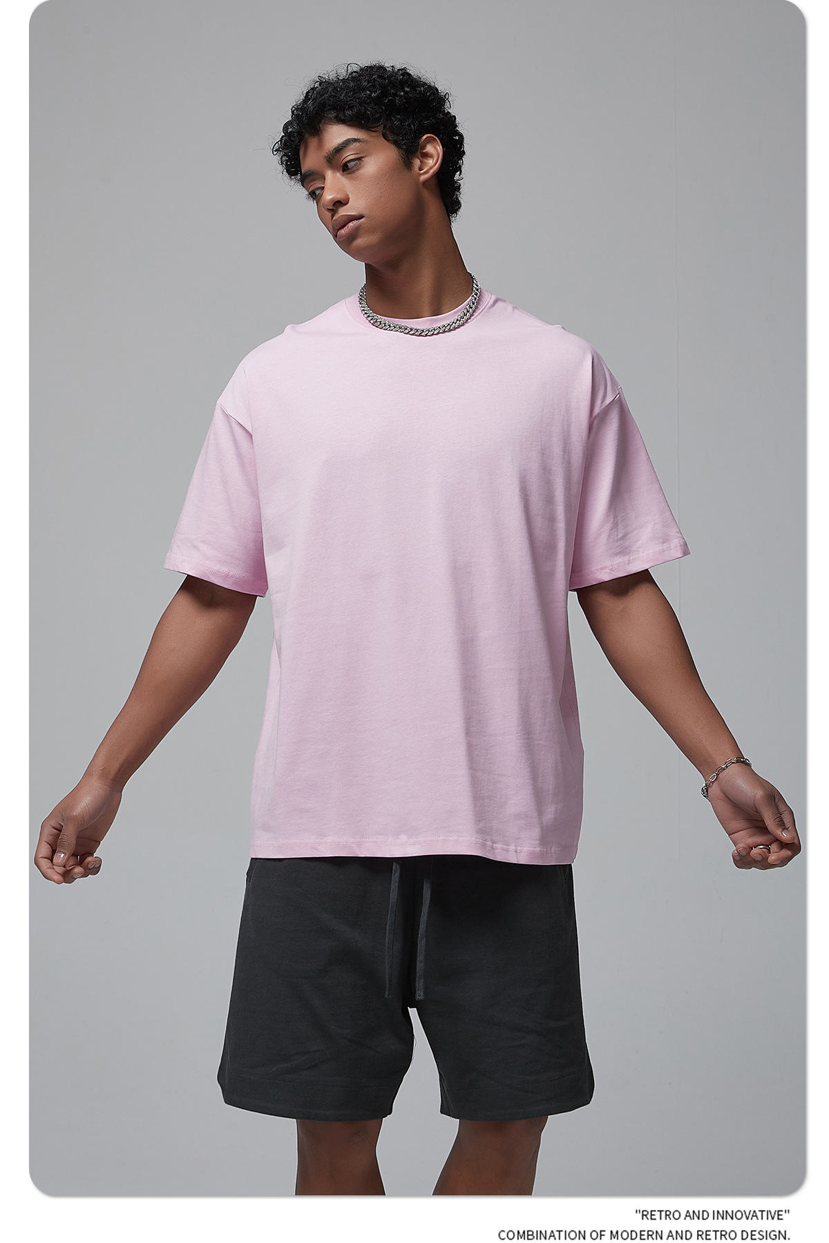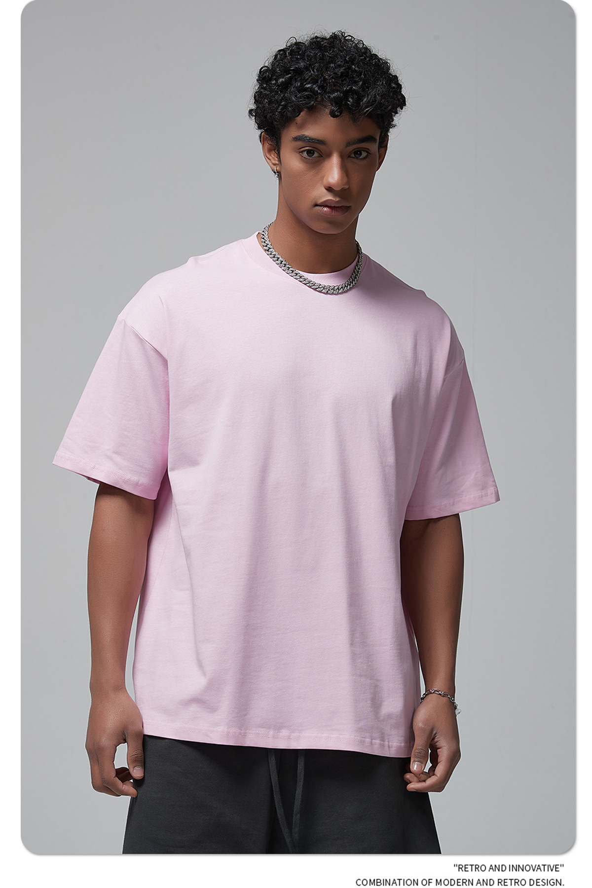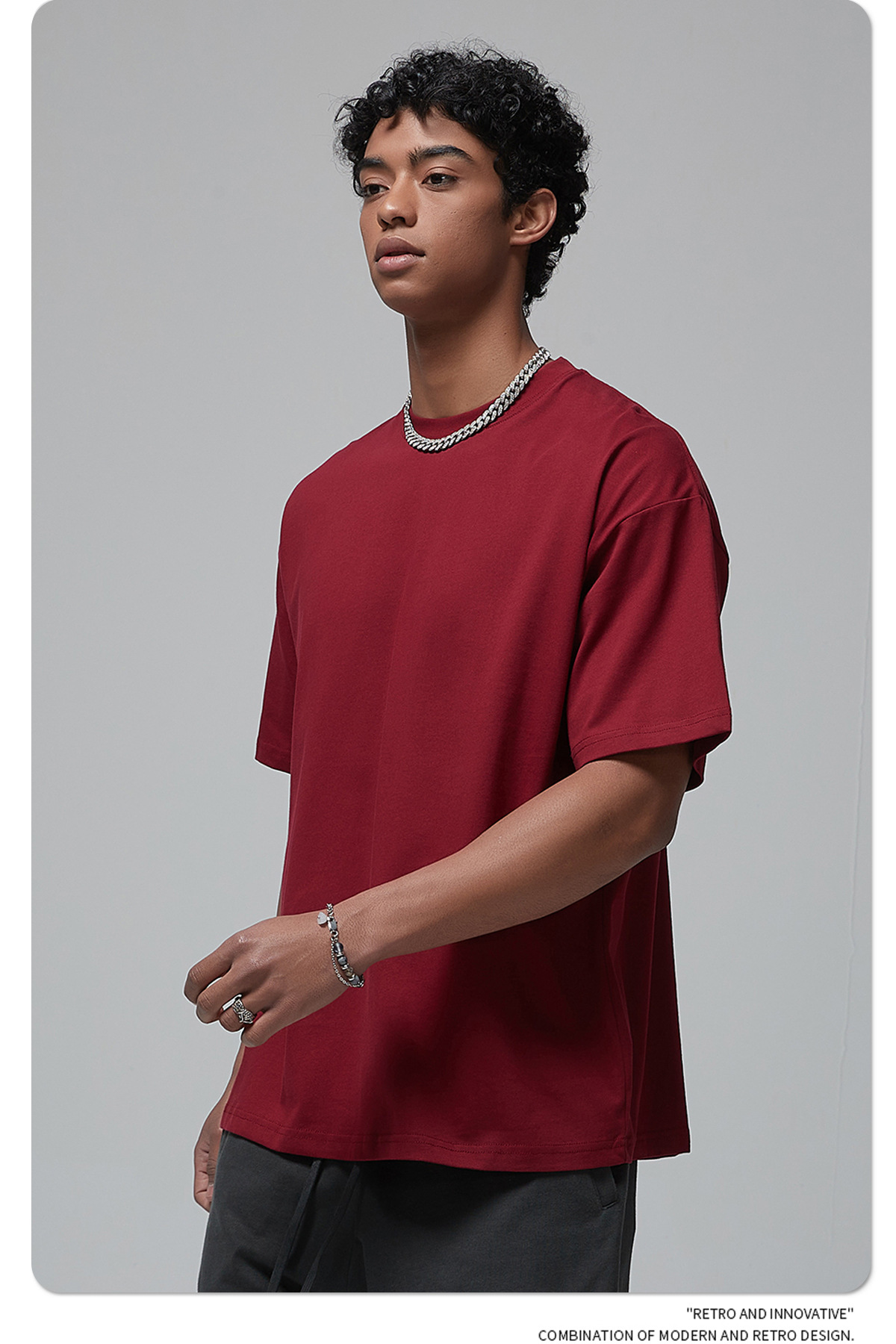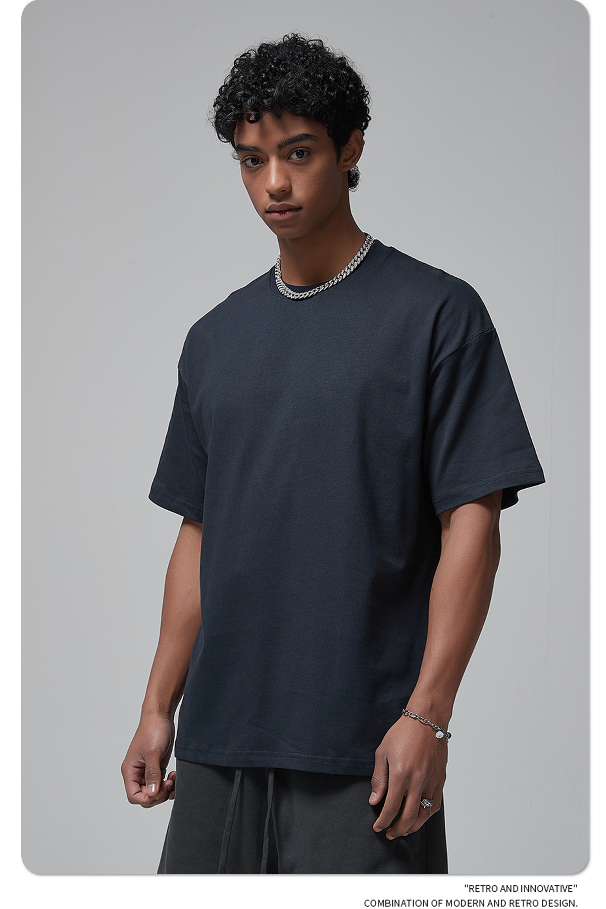 AR plus-size men's clothing, a European and American trendy brand 230G double-yarn pure cotton antibacterial short-sleeved men's T-shirt, solid color blank men's loose T-shirt