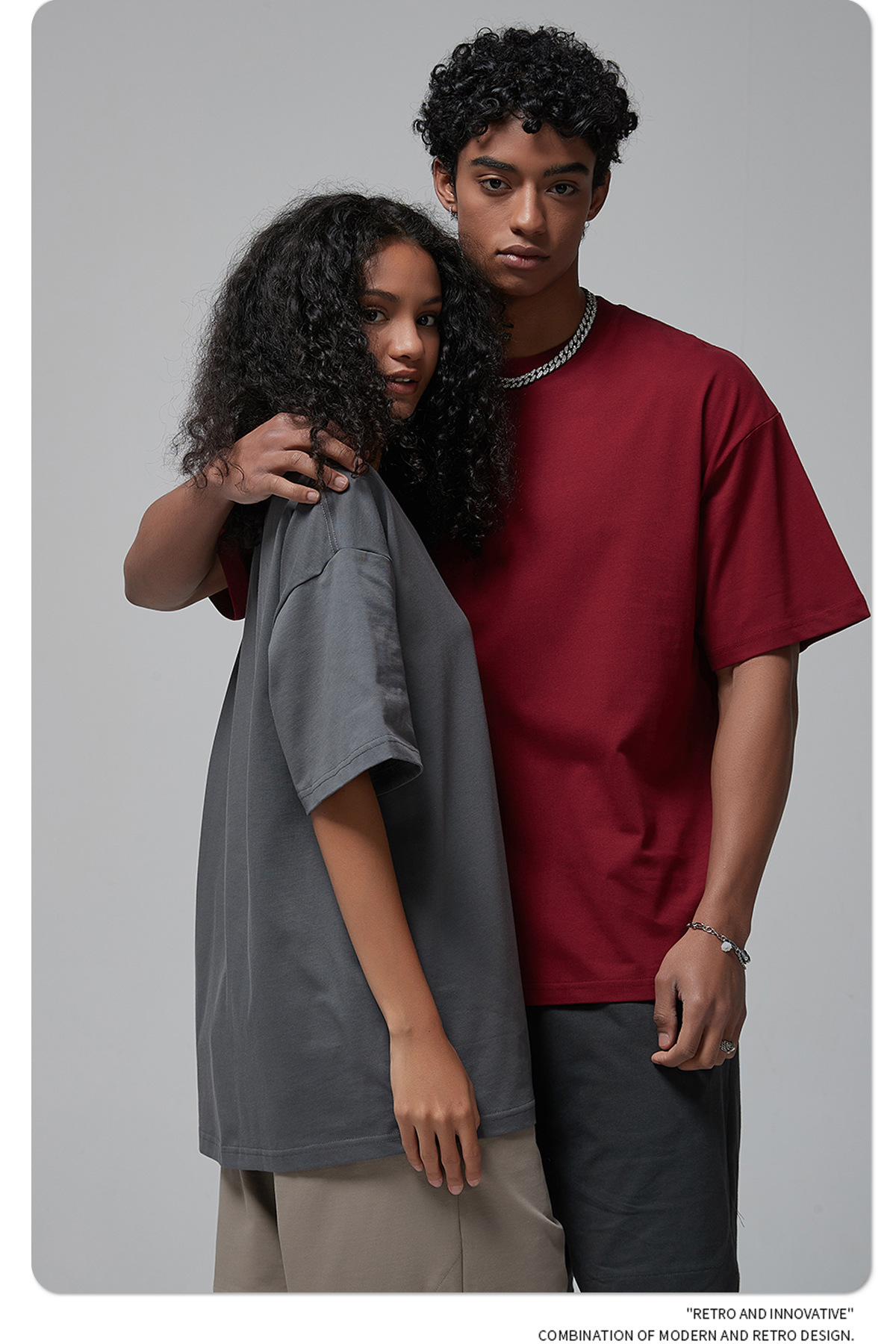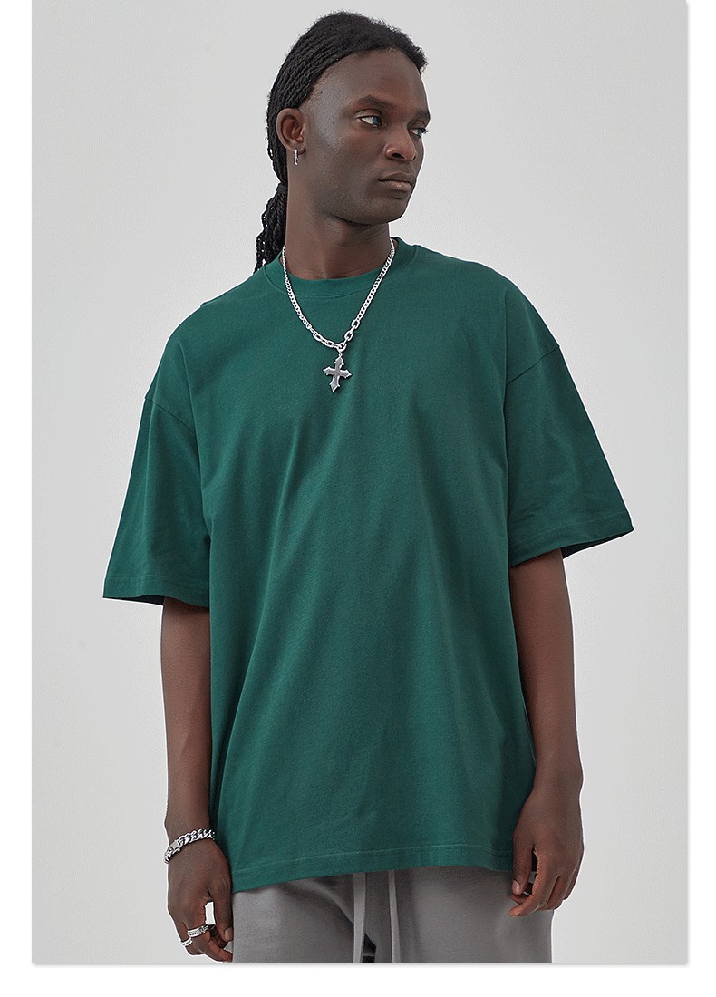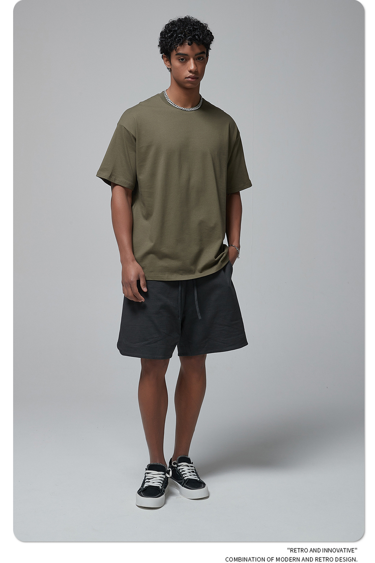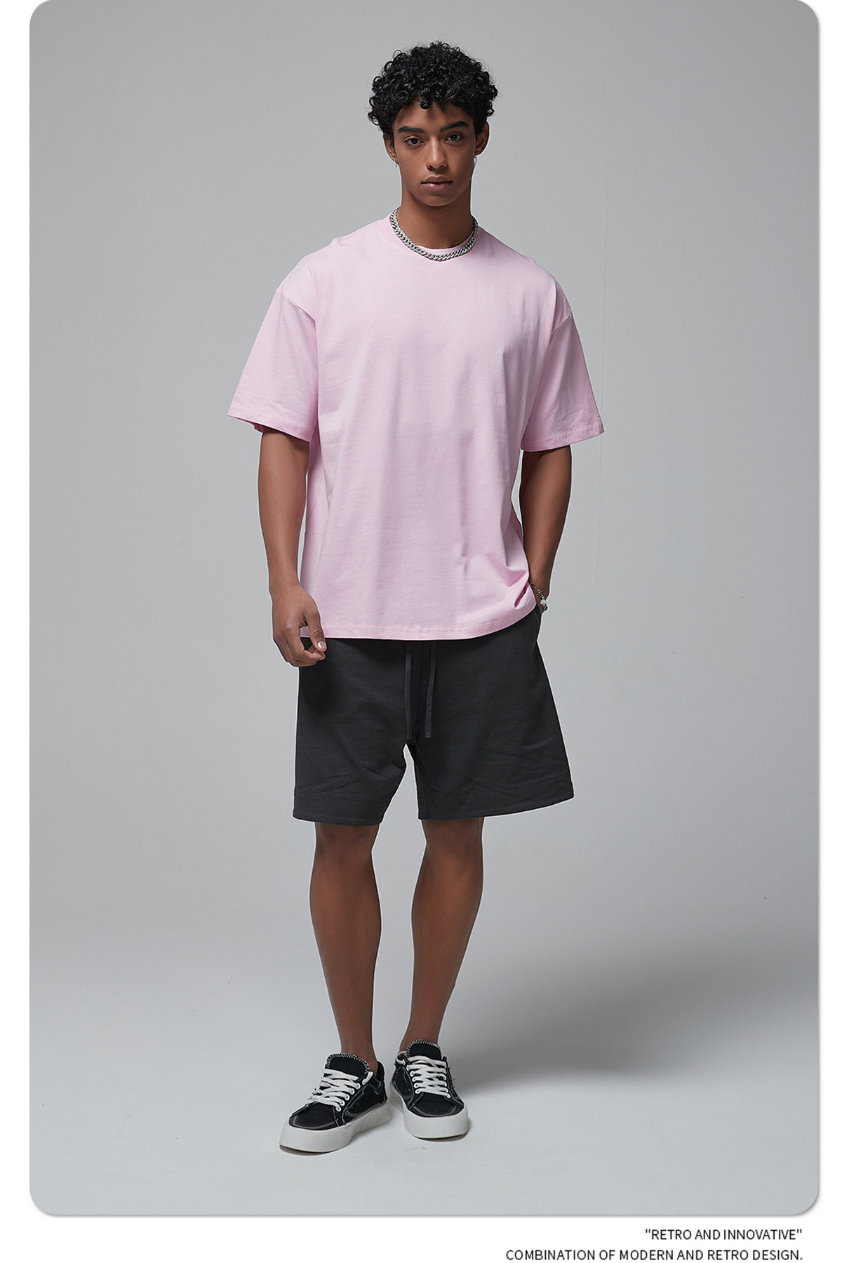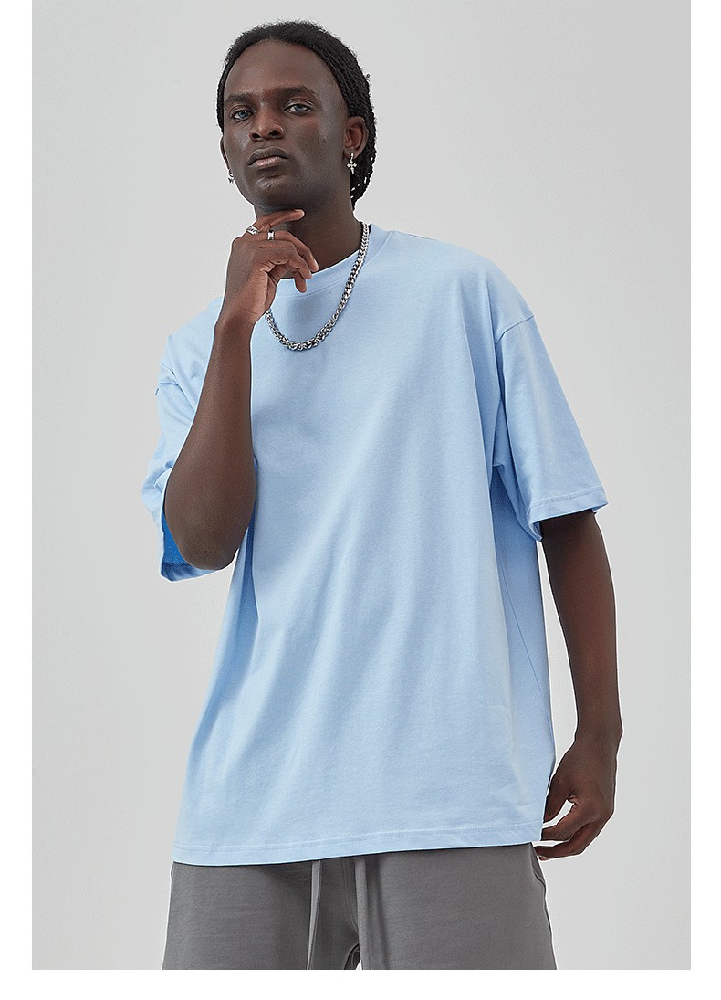 AR plus-size men's clothing, a European and American trendy brand 230G double-yarn pure cotton antibacterial short-sleeved men's T-shirt, solid color blank men's loose T-shirt