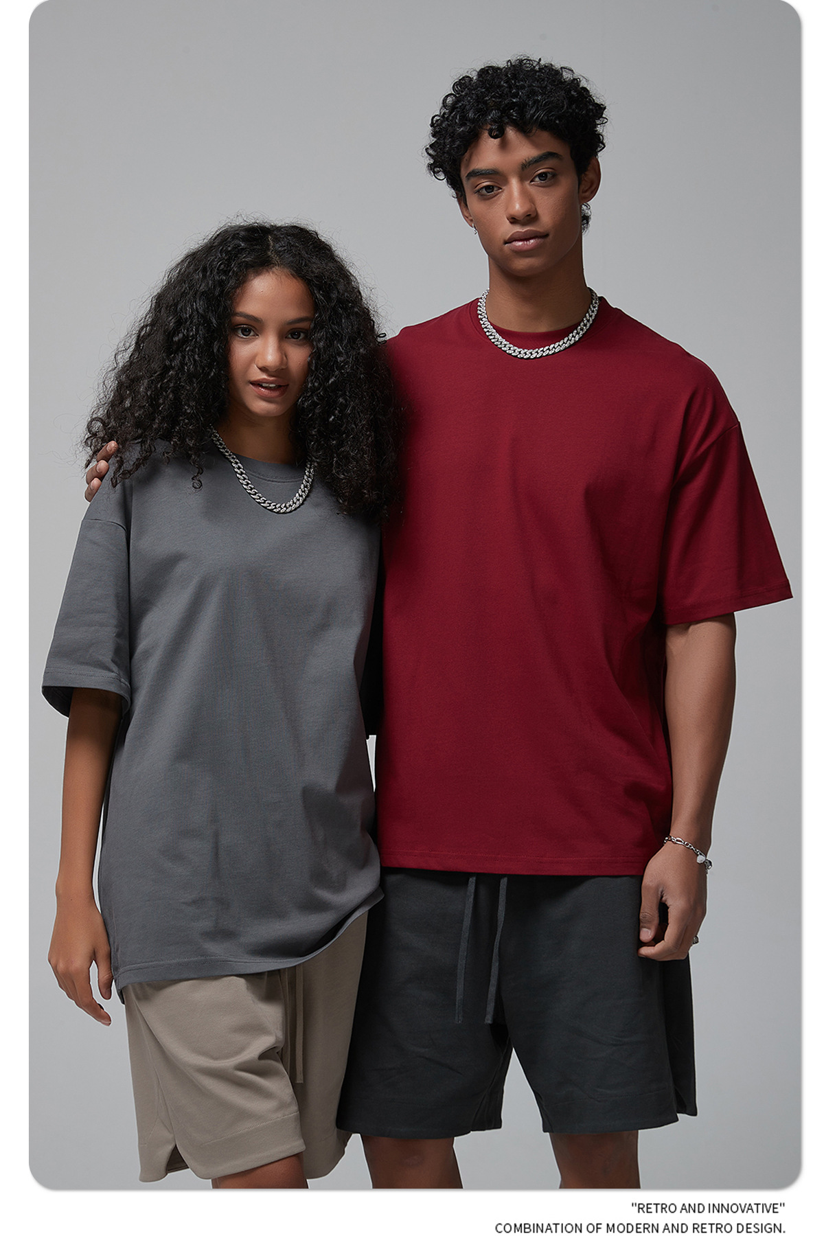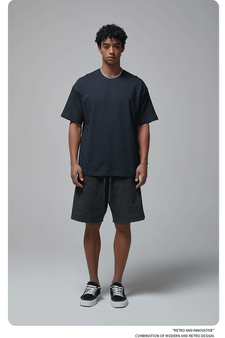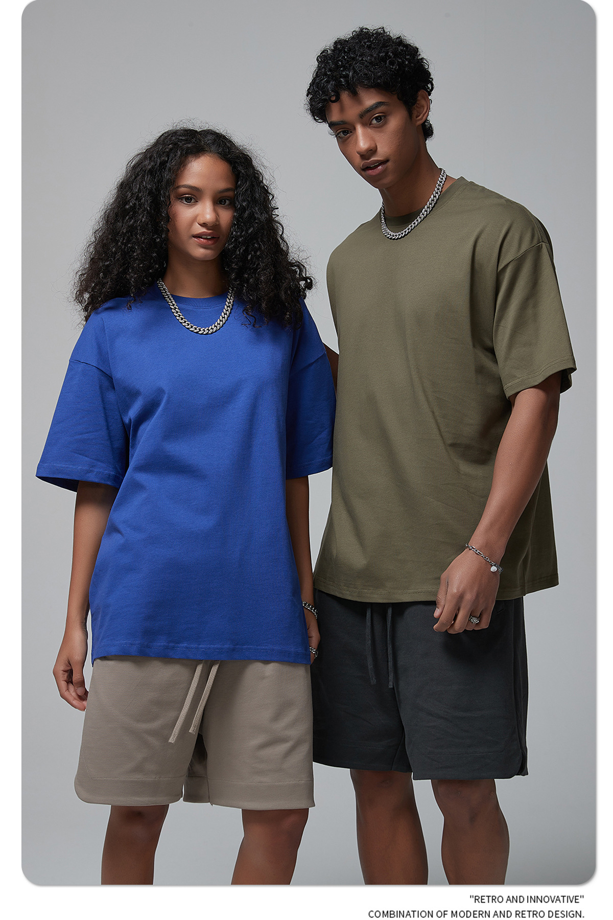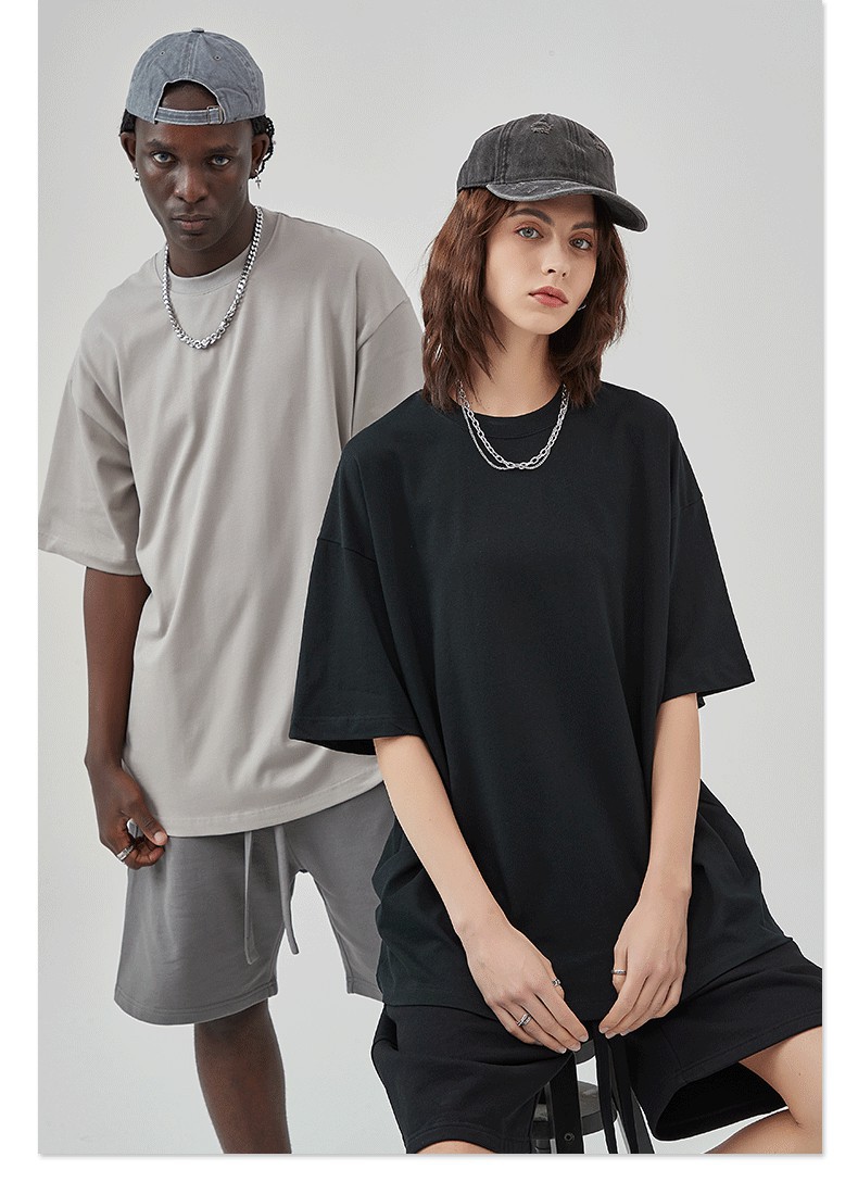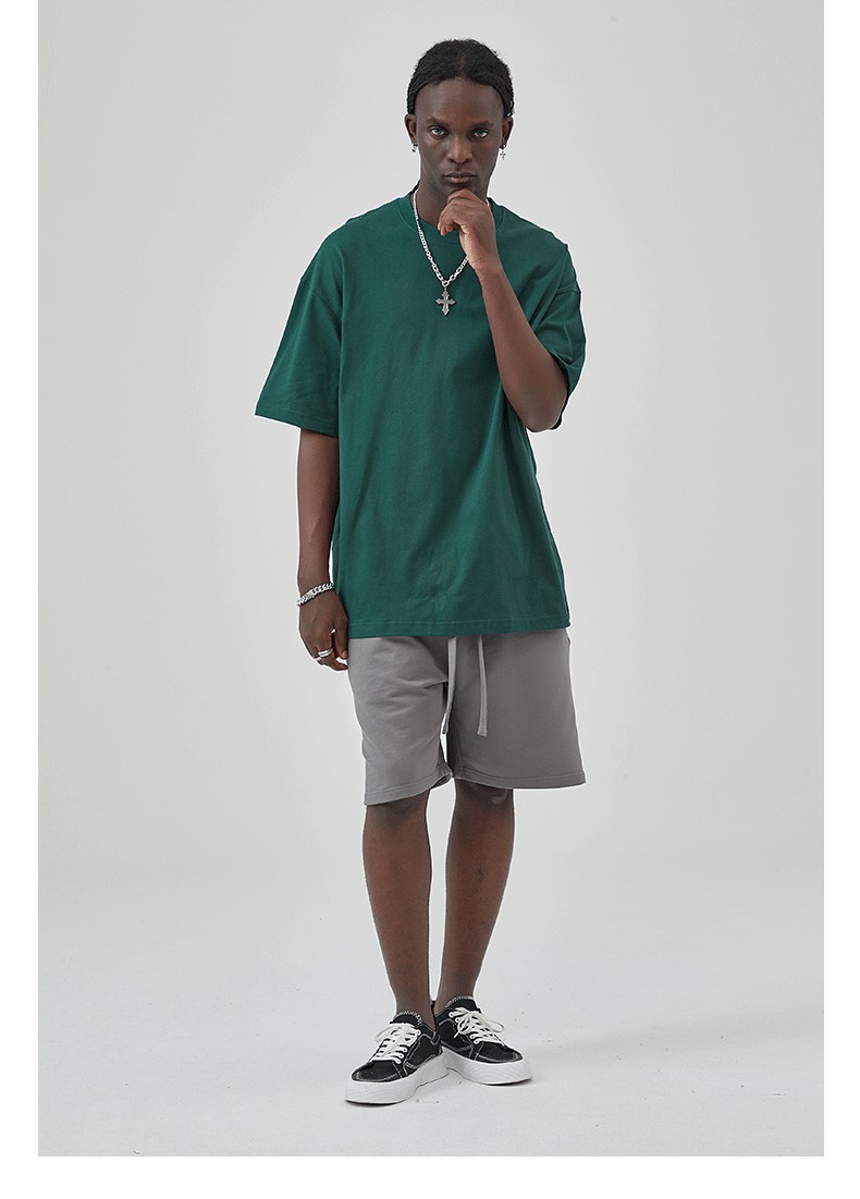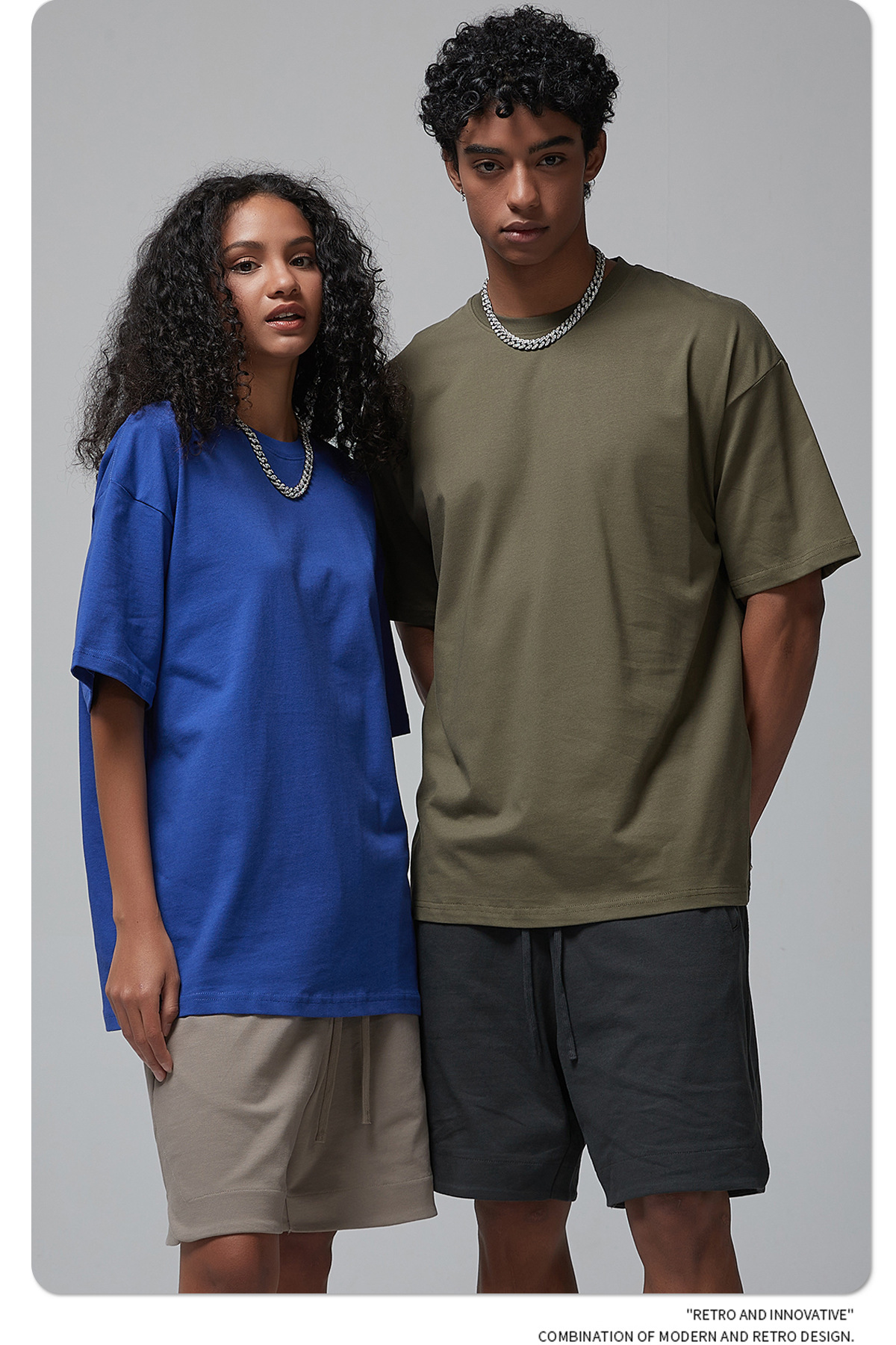 AR plus-size men's clothing, a European and American trendy brand 230G double-yarn pure cotton antibacterial short-sleeved men's T-shirt, solid color blank men's loose T-shirt
