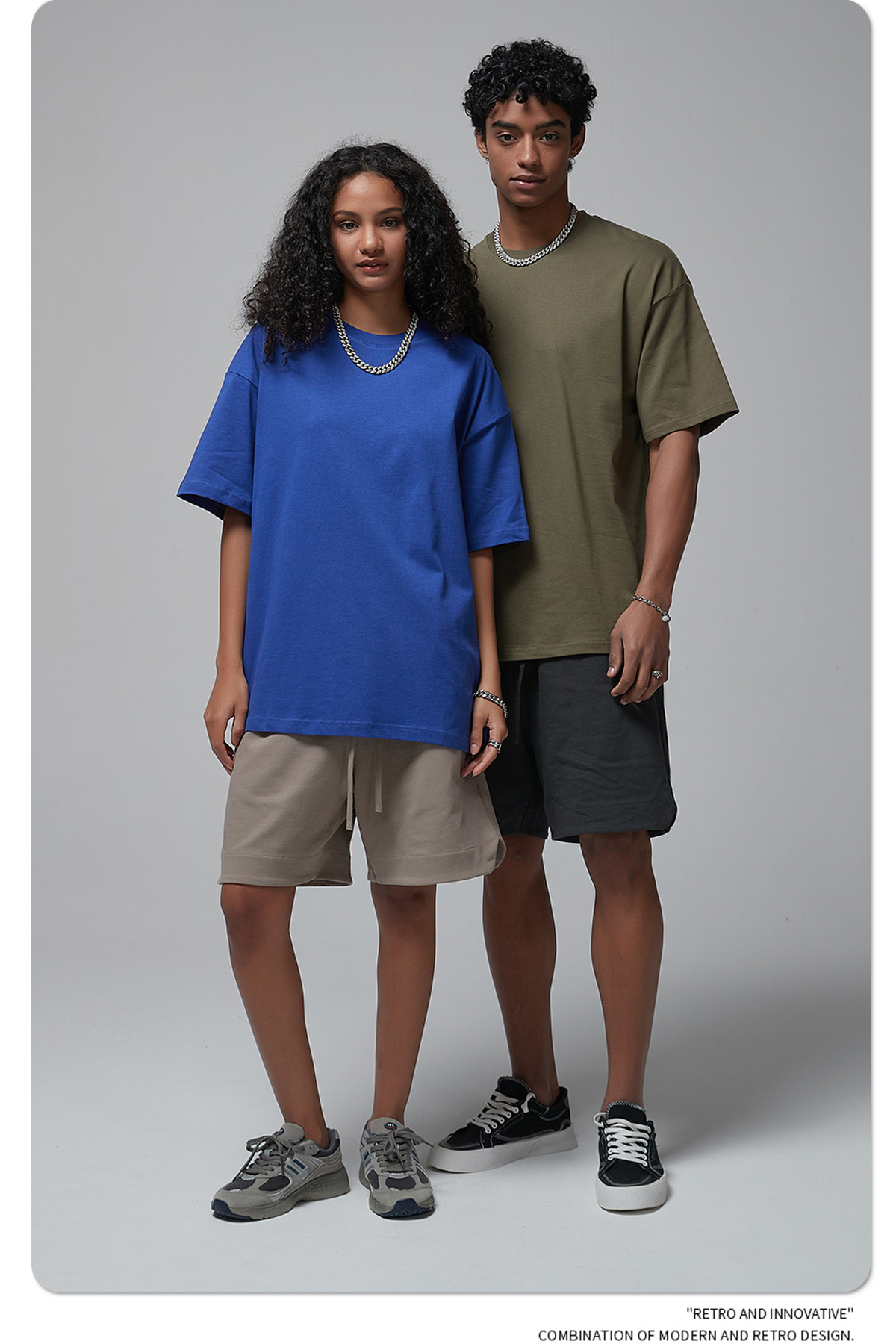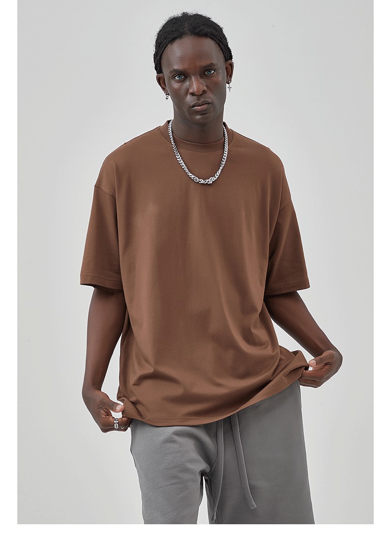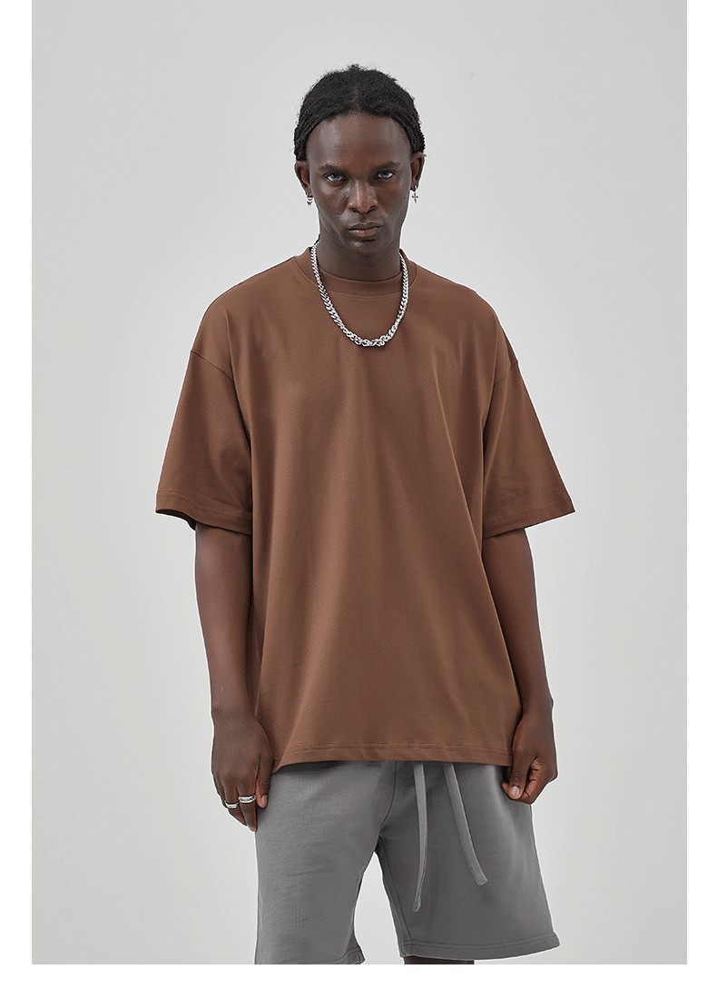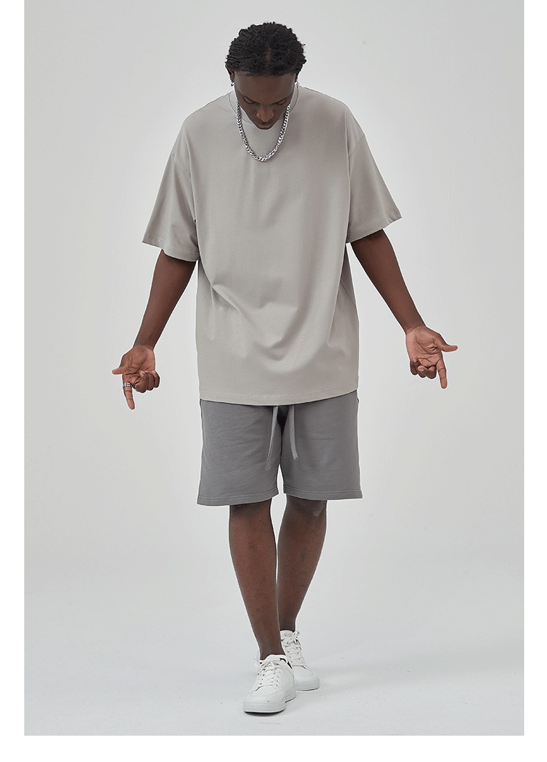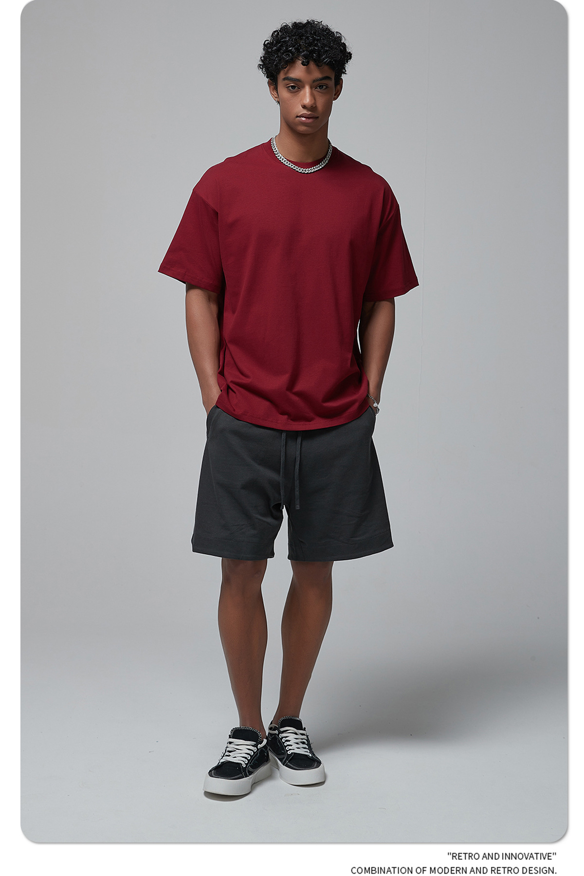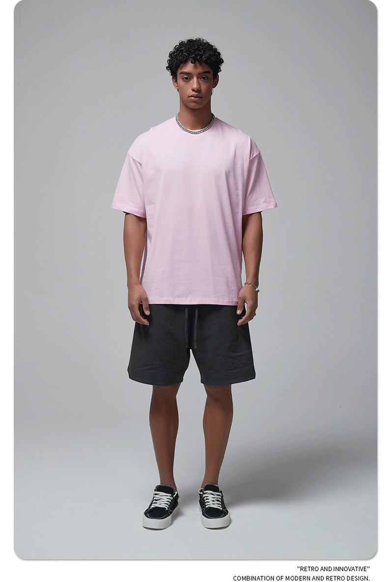 AR plus-size men's clothing, a European and American trendy brand 230G double-yarn pure cotton antibacterial short-sleeved men's T-shirt, solid color blank men's loose T-shirt
