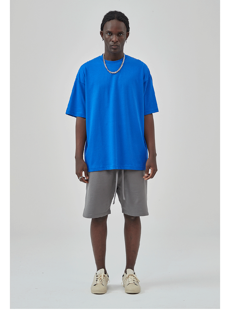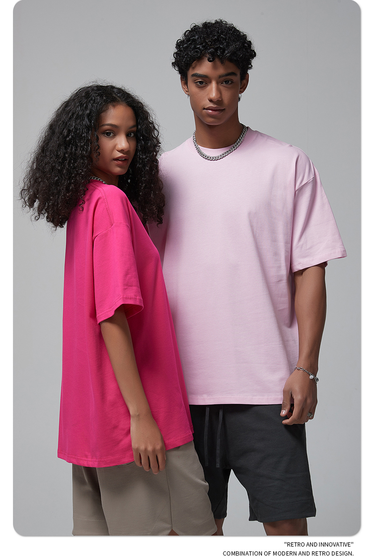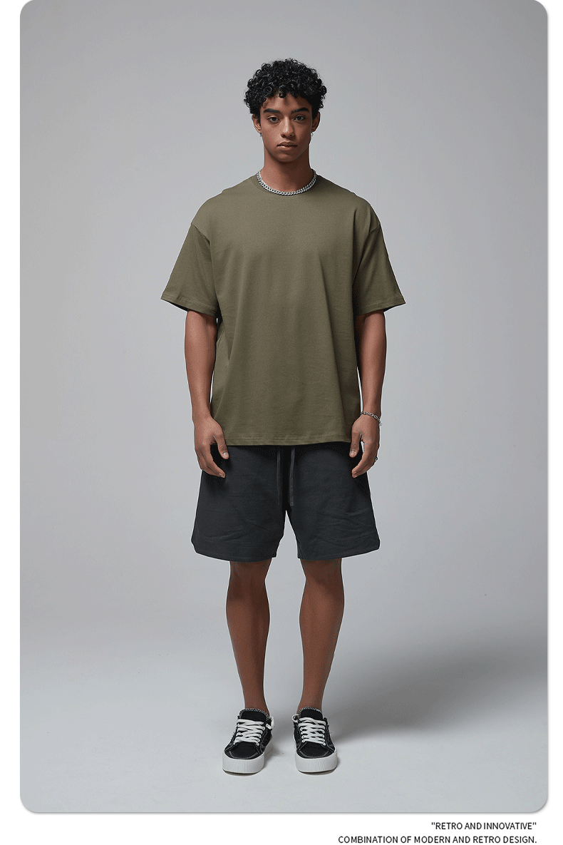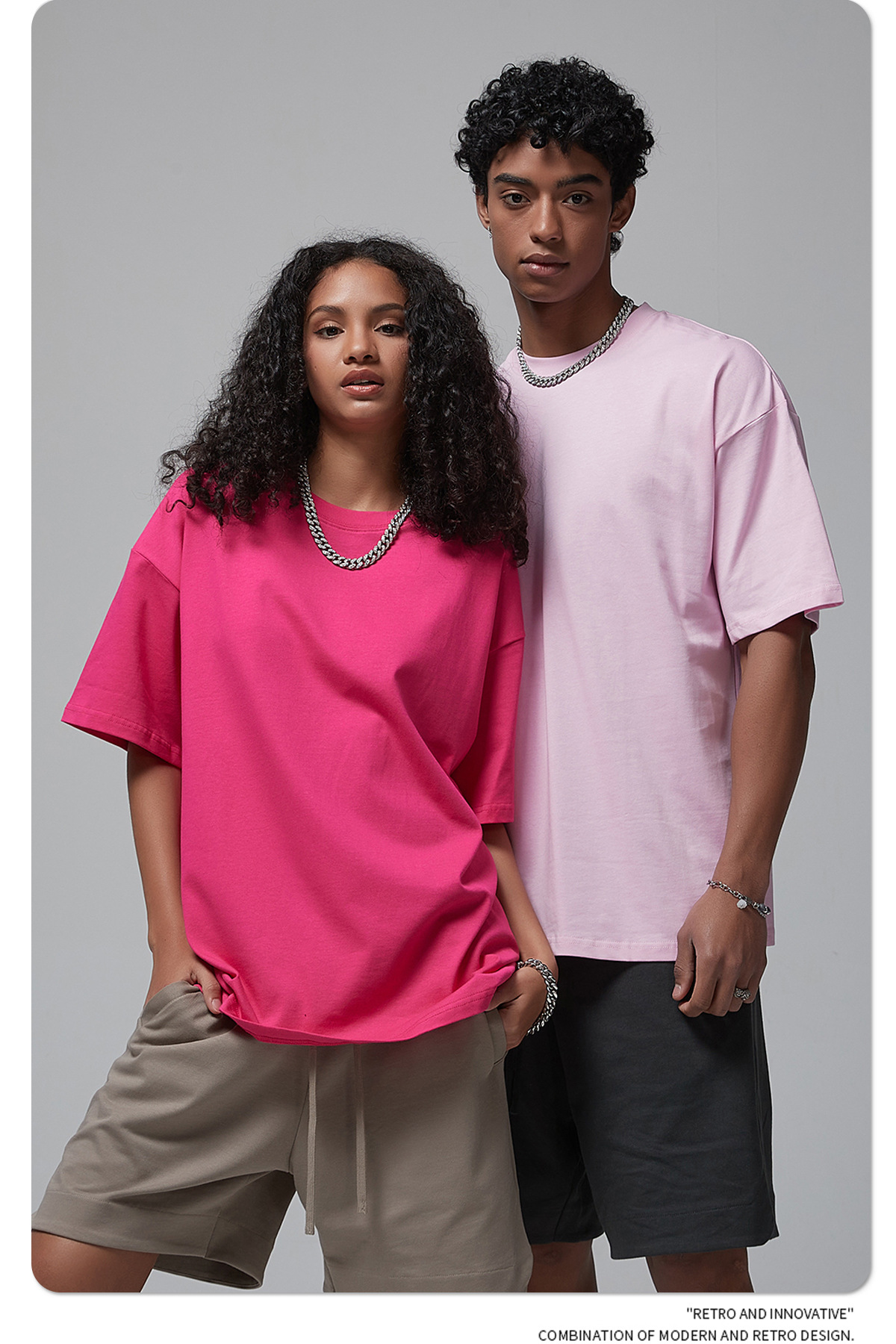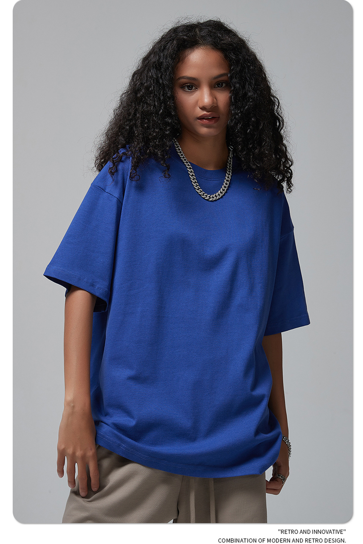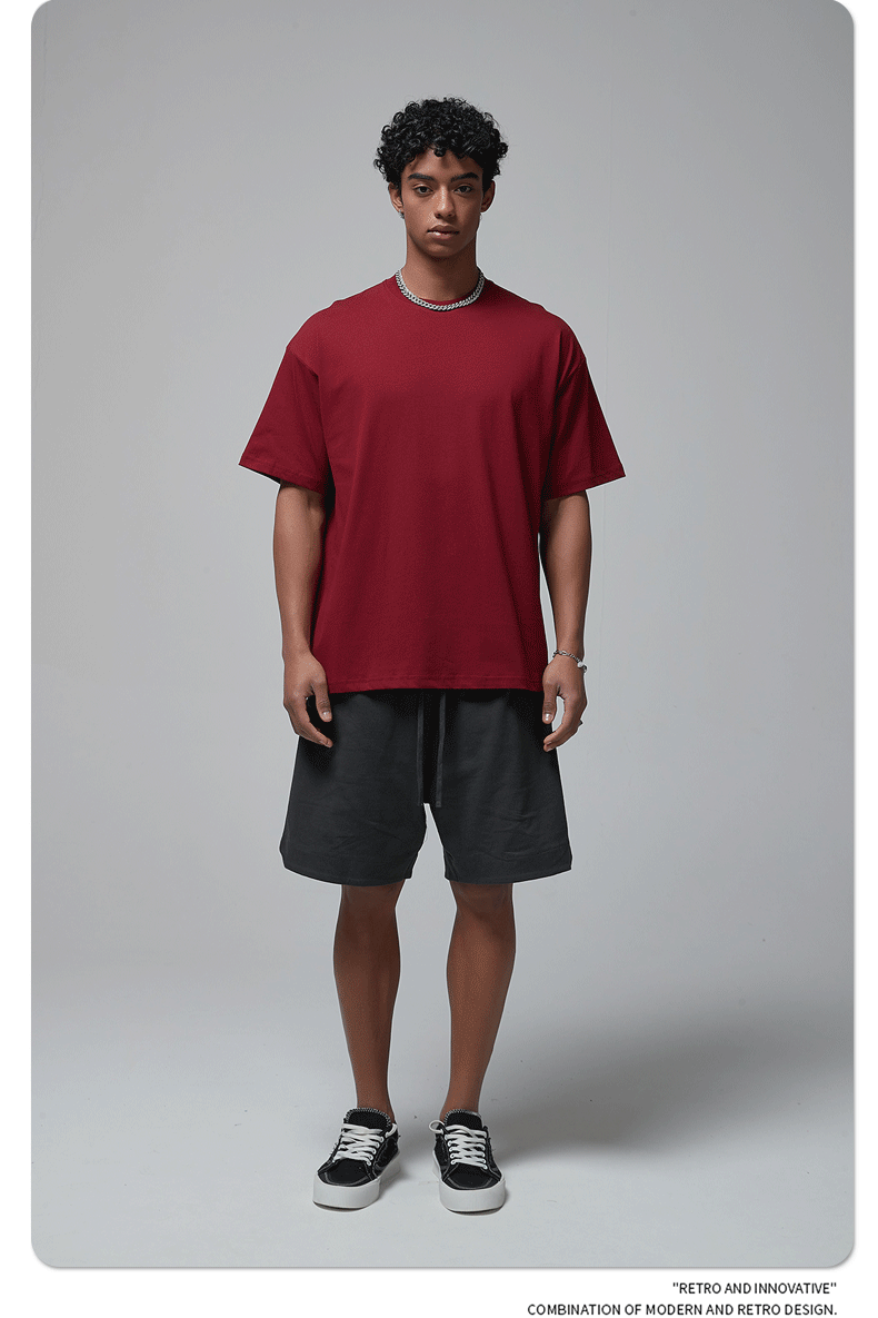 AR plus-size men's clothing, a European and American trendy brand 230G double-yarn pure cotton antibacterial short-sleeved men's T-shirt, solid color blank men's loose T-shirt