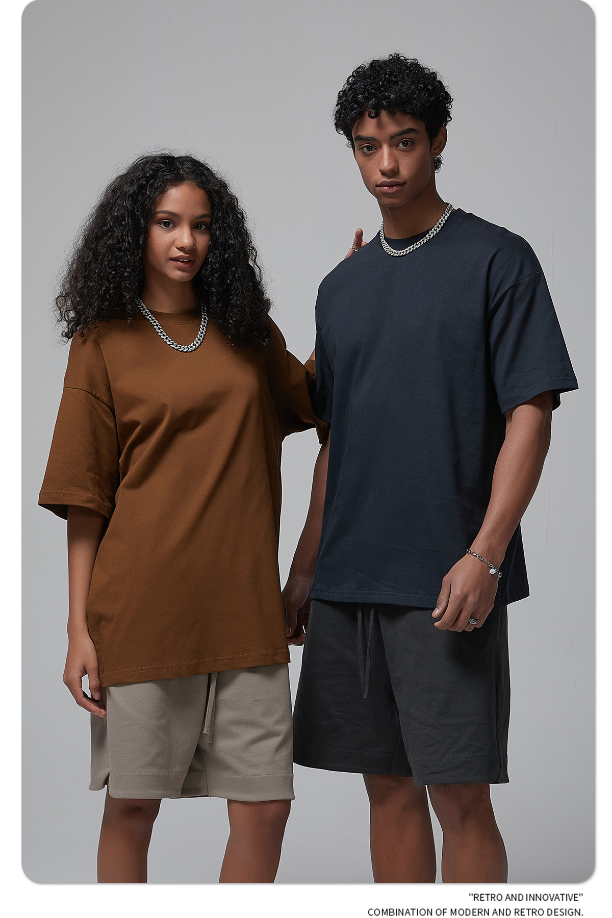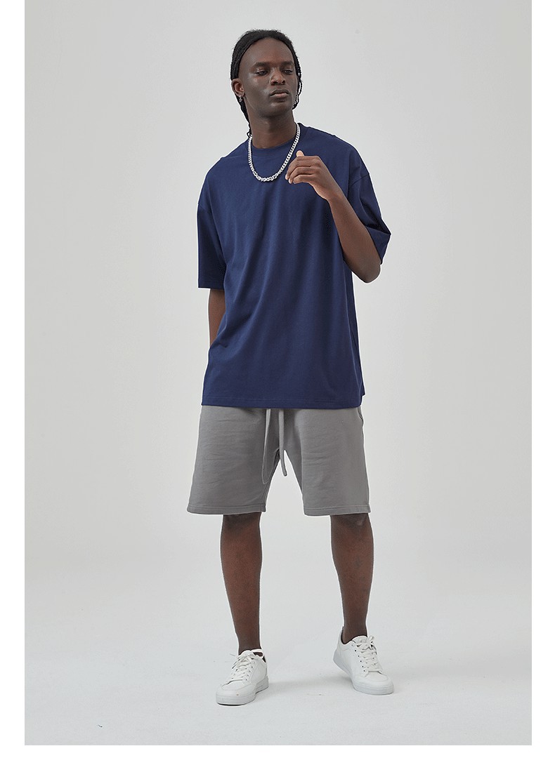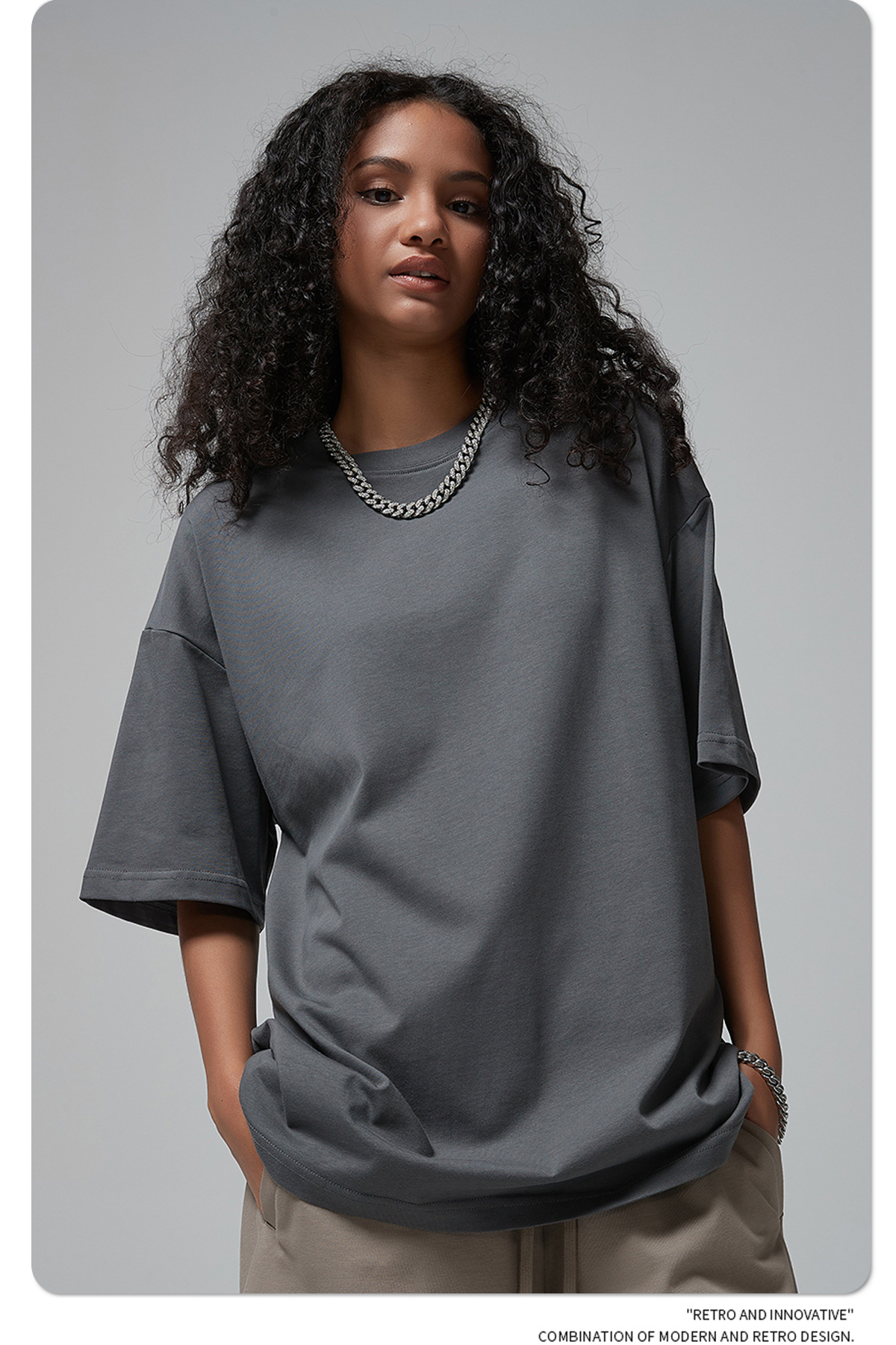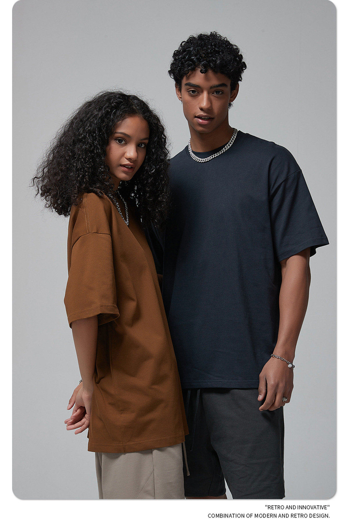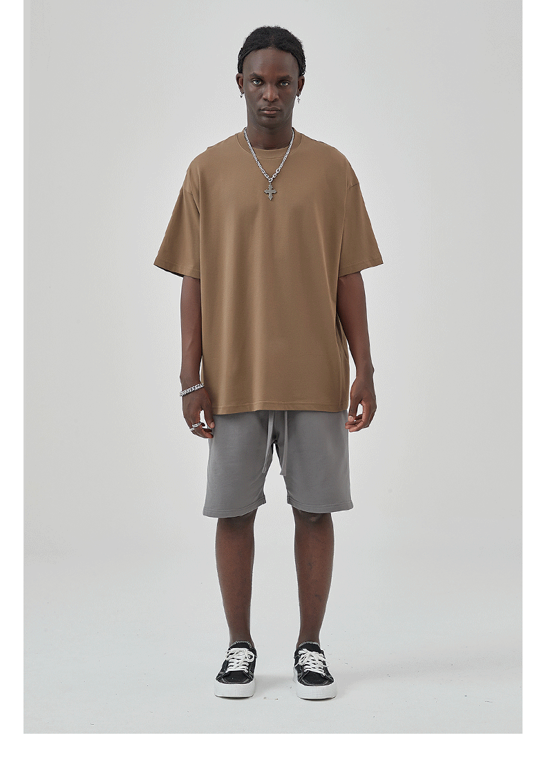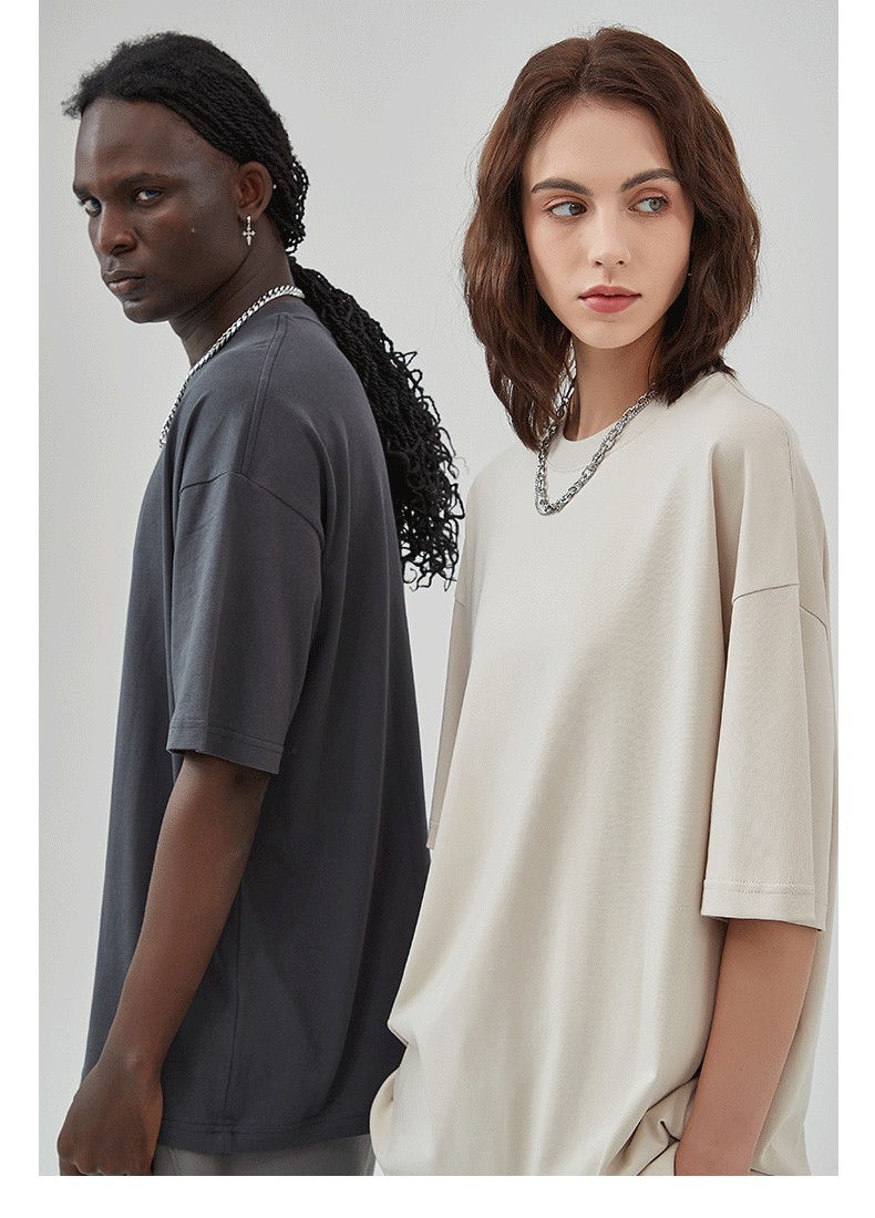 AR plus-size men's clothing, a European and American trendy brand 230G double-yarn pure cotton antibacterial short-sleeved men's T-shirt, solid color blank men's loose T-shirt
