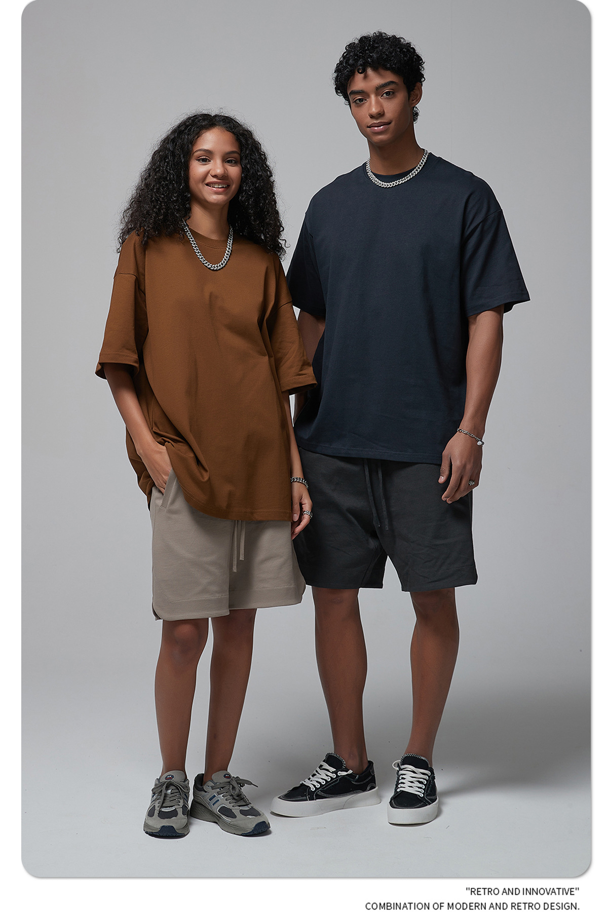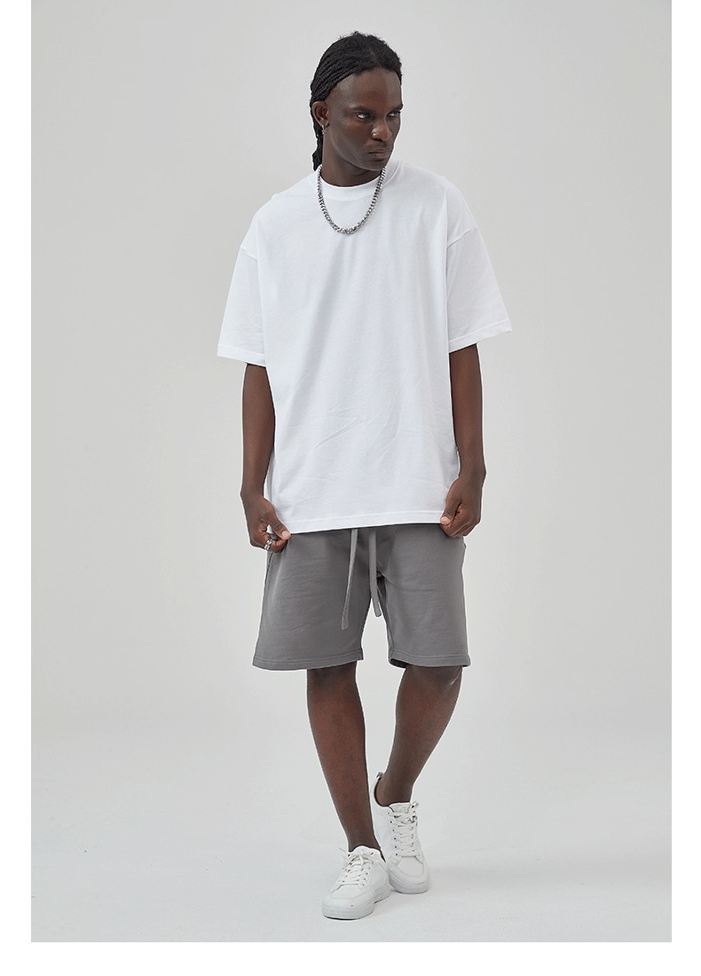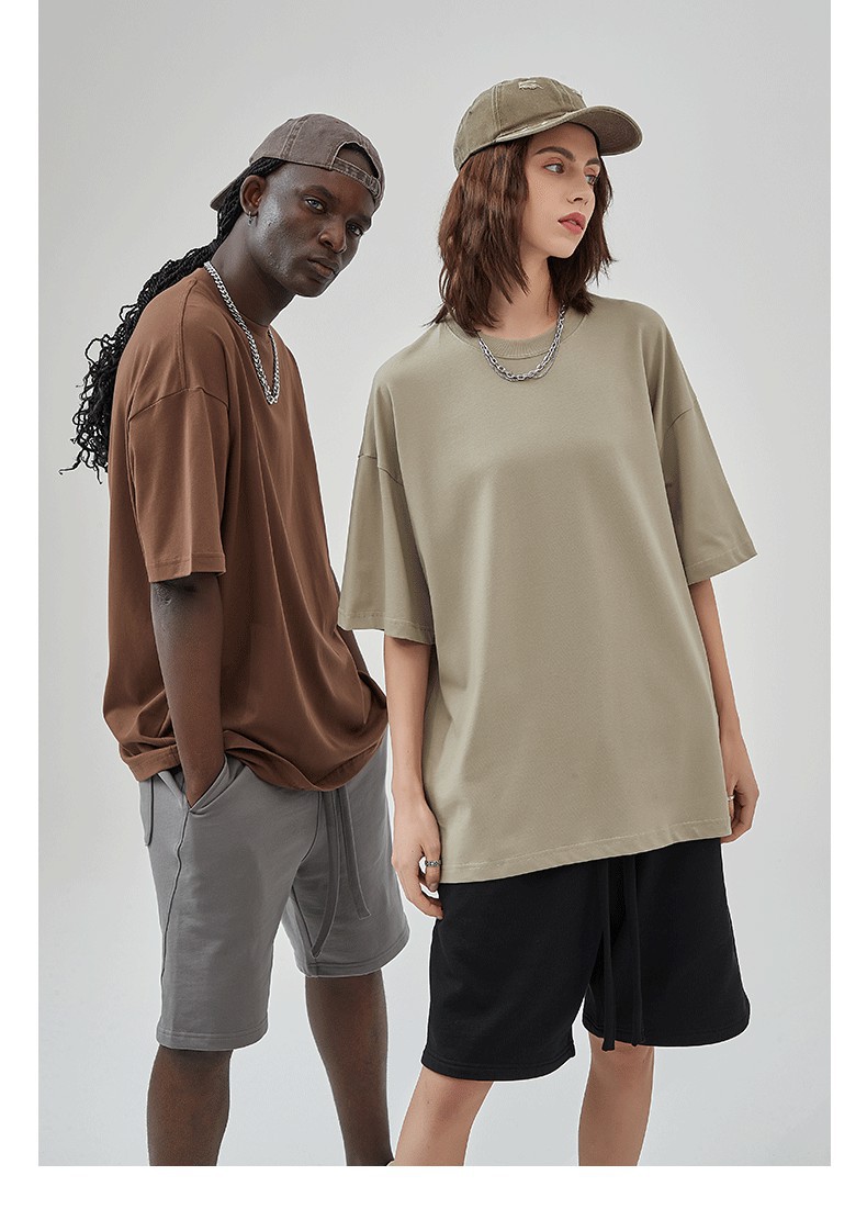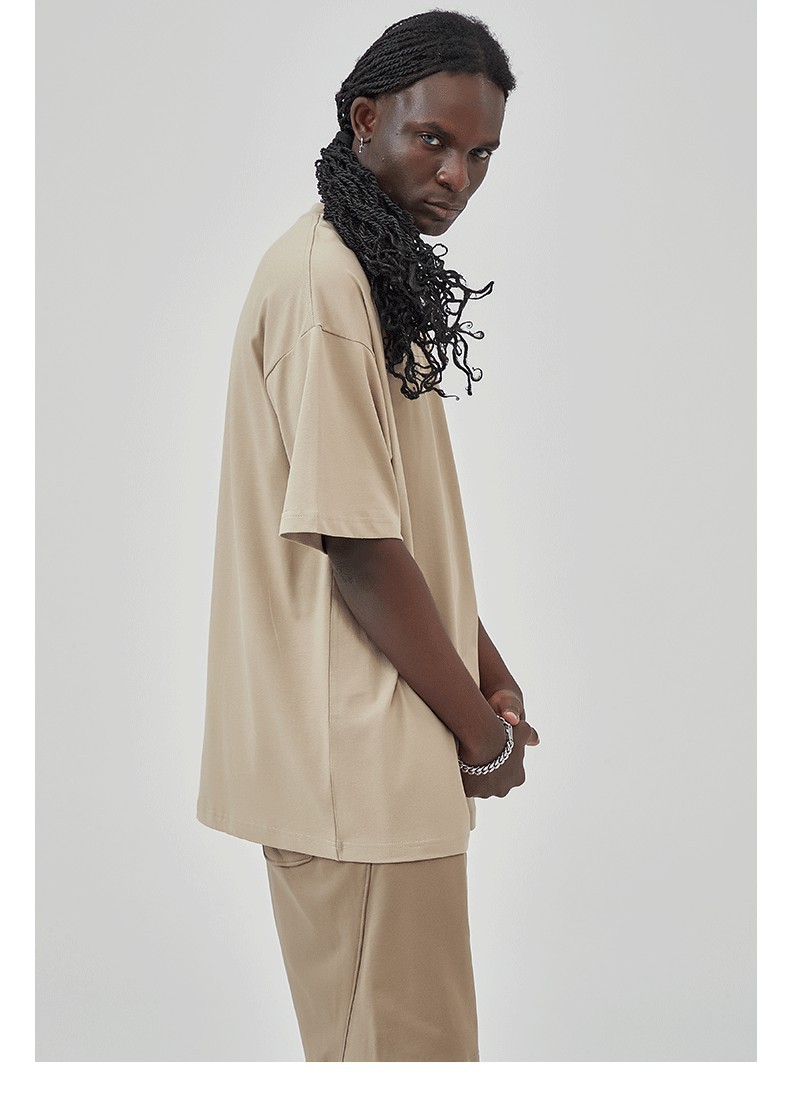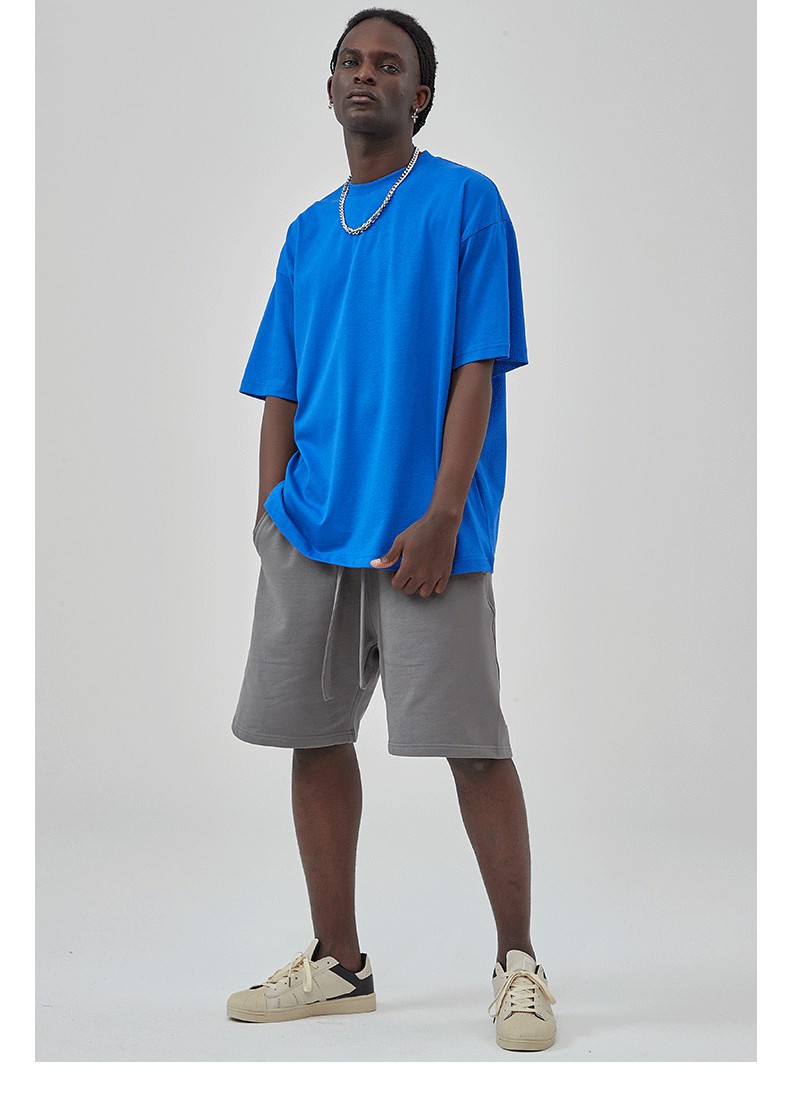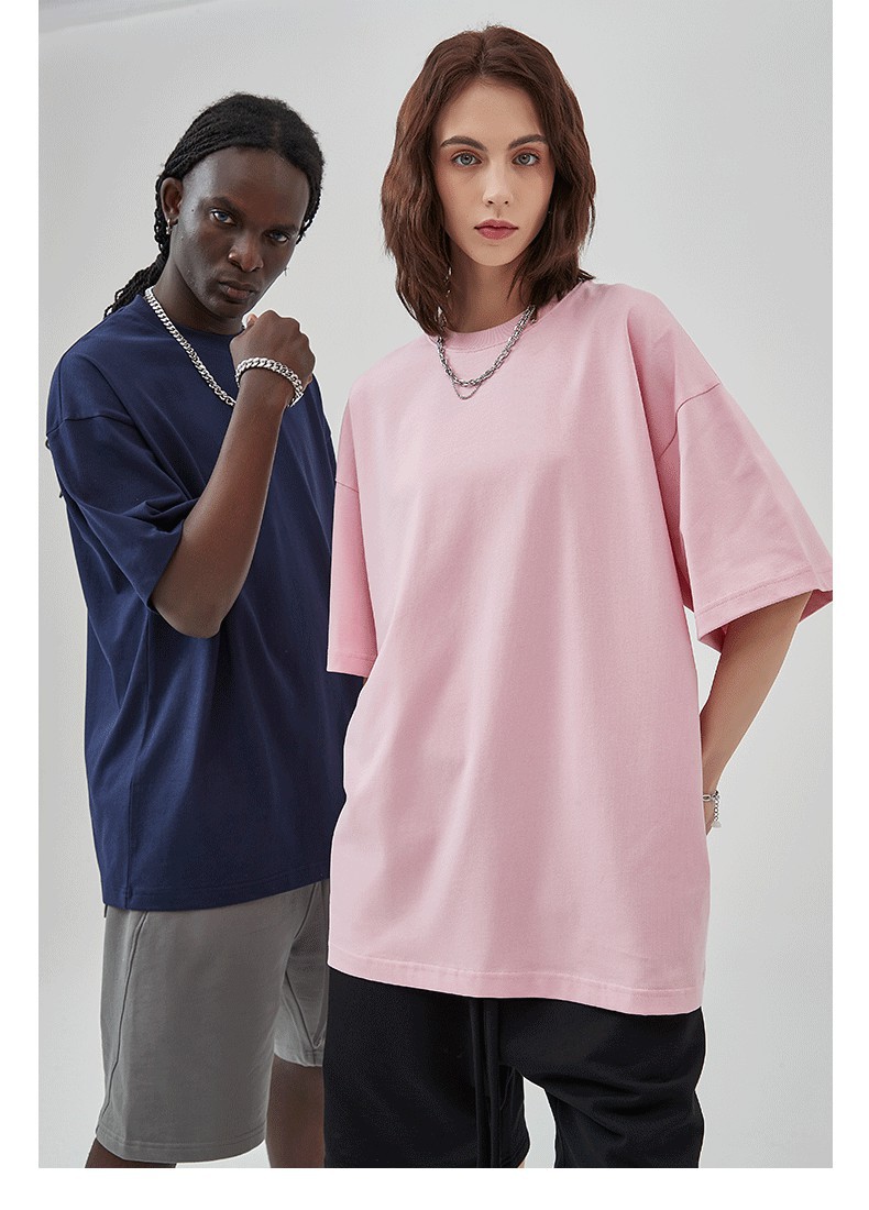 AR plus-size men's clothing, a European and American trendy brand 230G double-yarn pure cotton antibacterial short-sleeved men's T-shirt, solid color blank men's loose T-shirt
