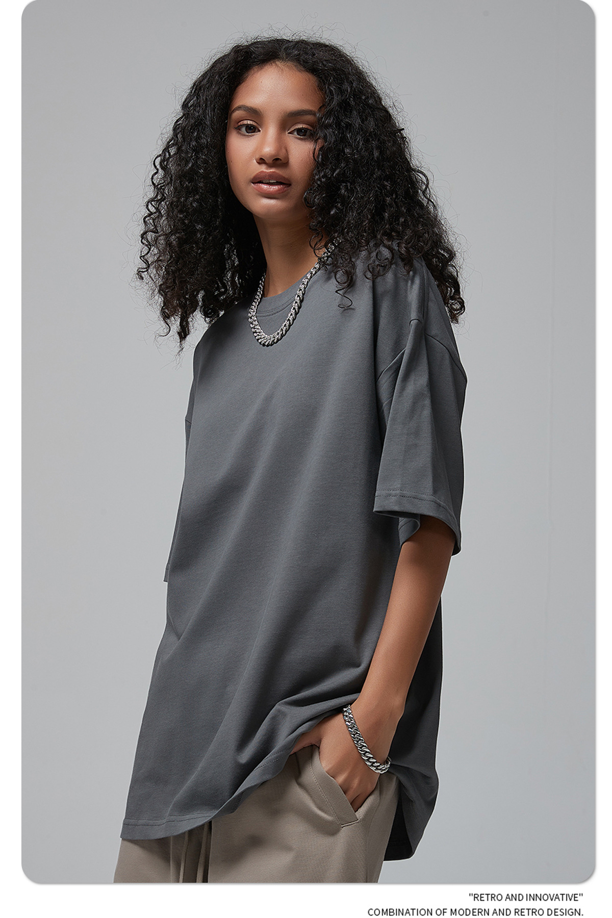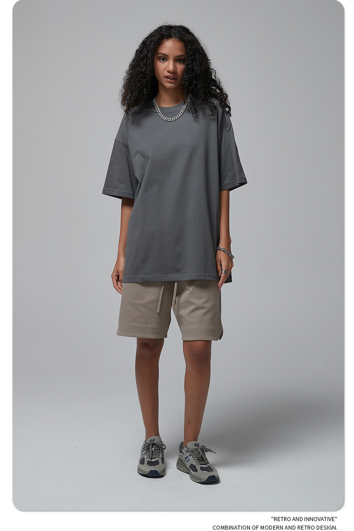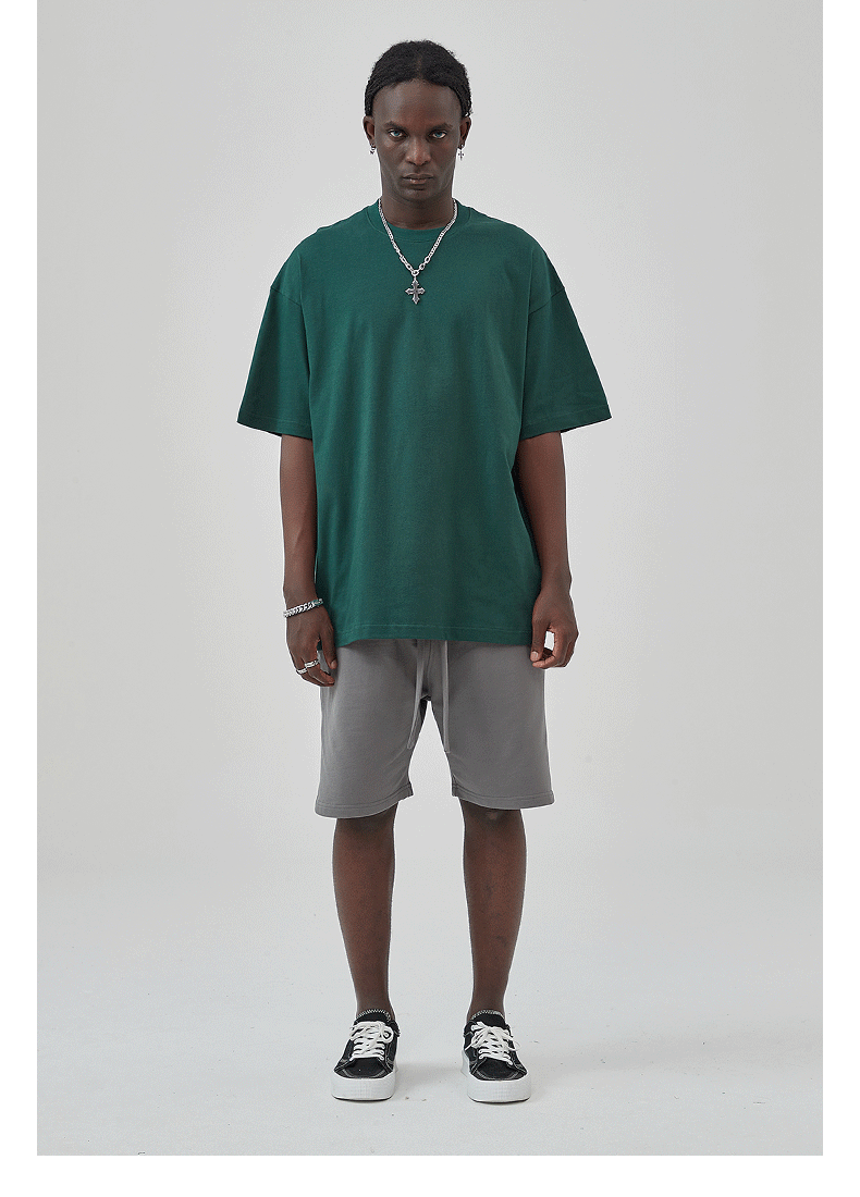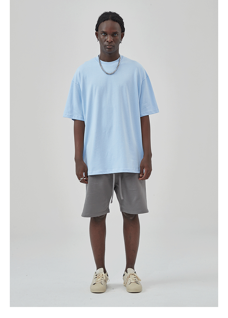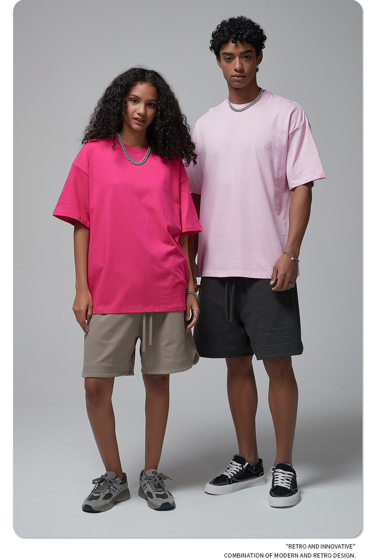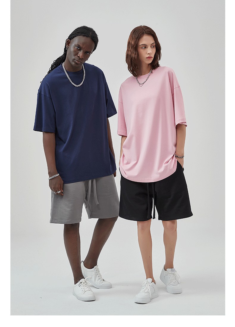 AR plus-size men's clothing, a European and American trendy brand 230G double-yarn pure cotton antibacterial short-sleeved men's T-shirt, solid color blank men's loose T-shirt