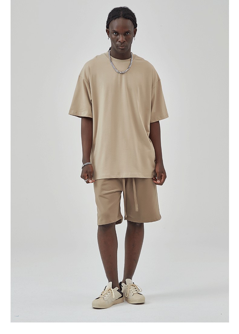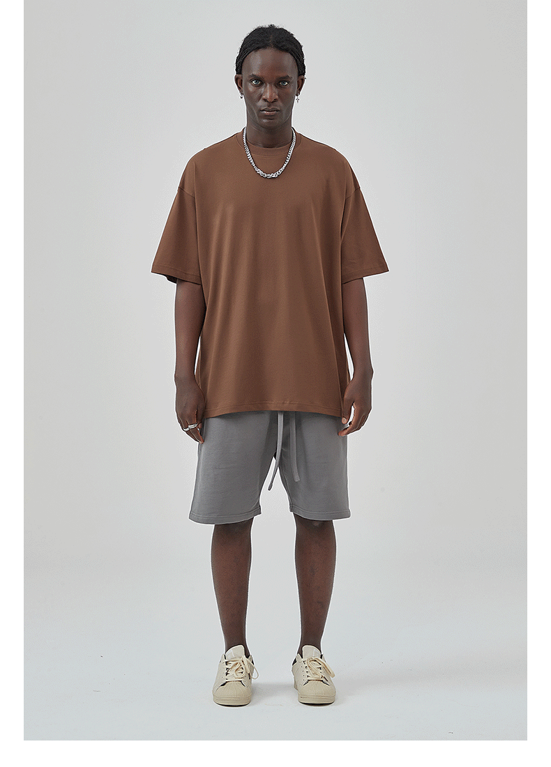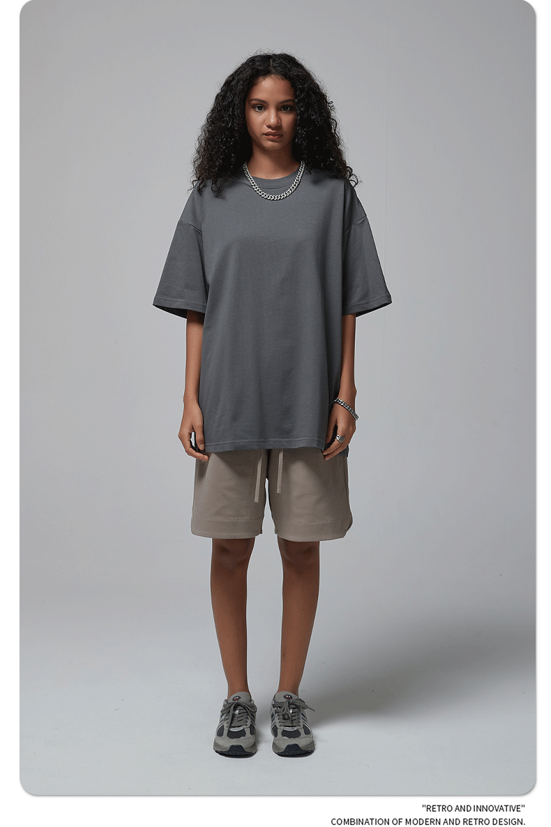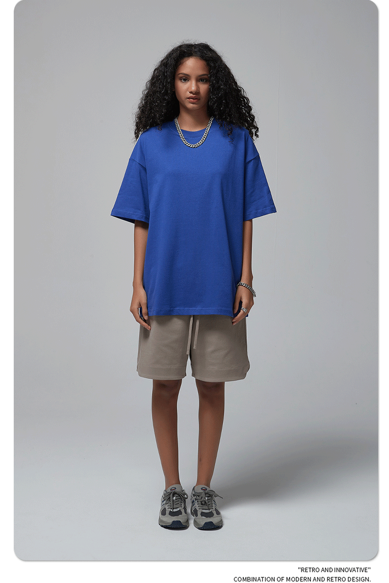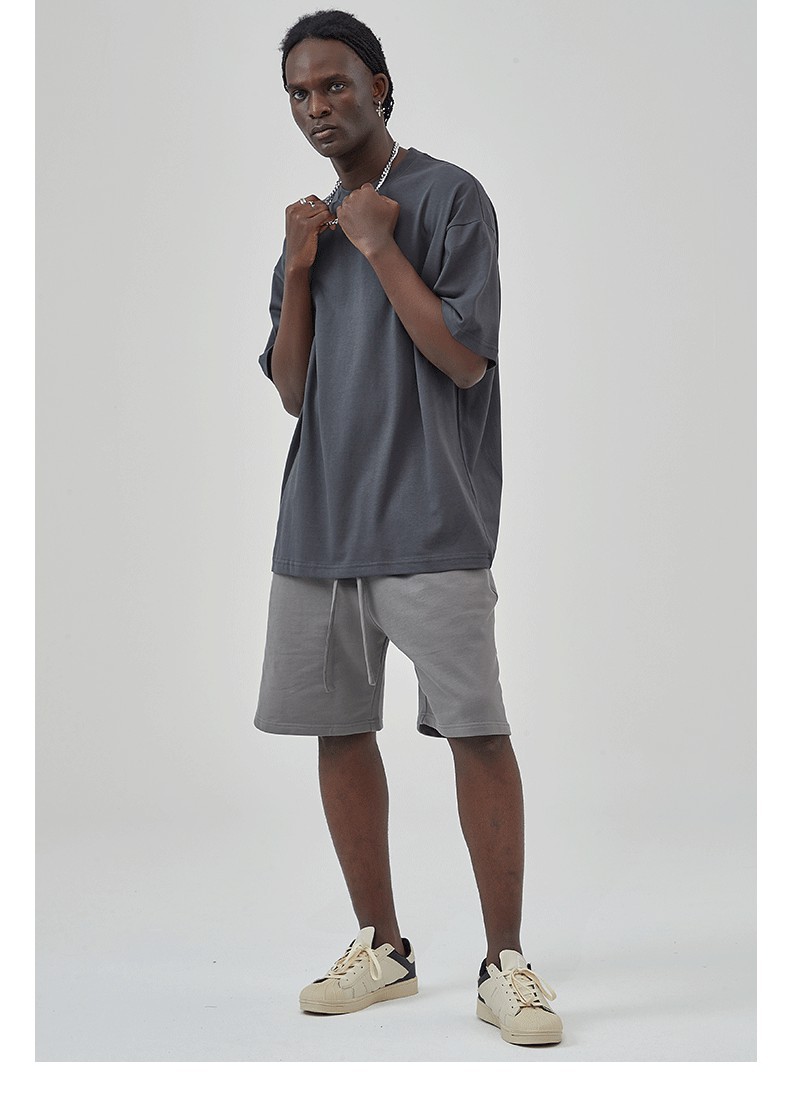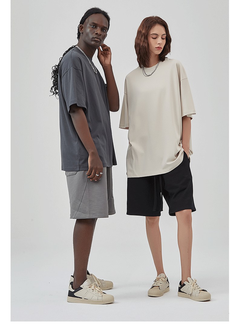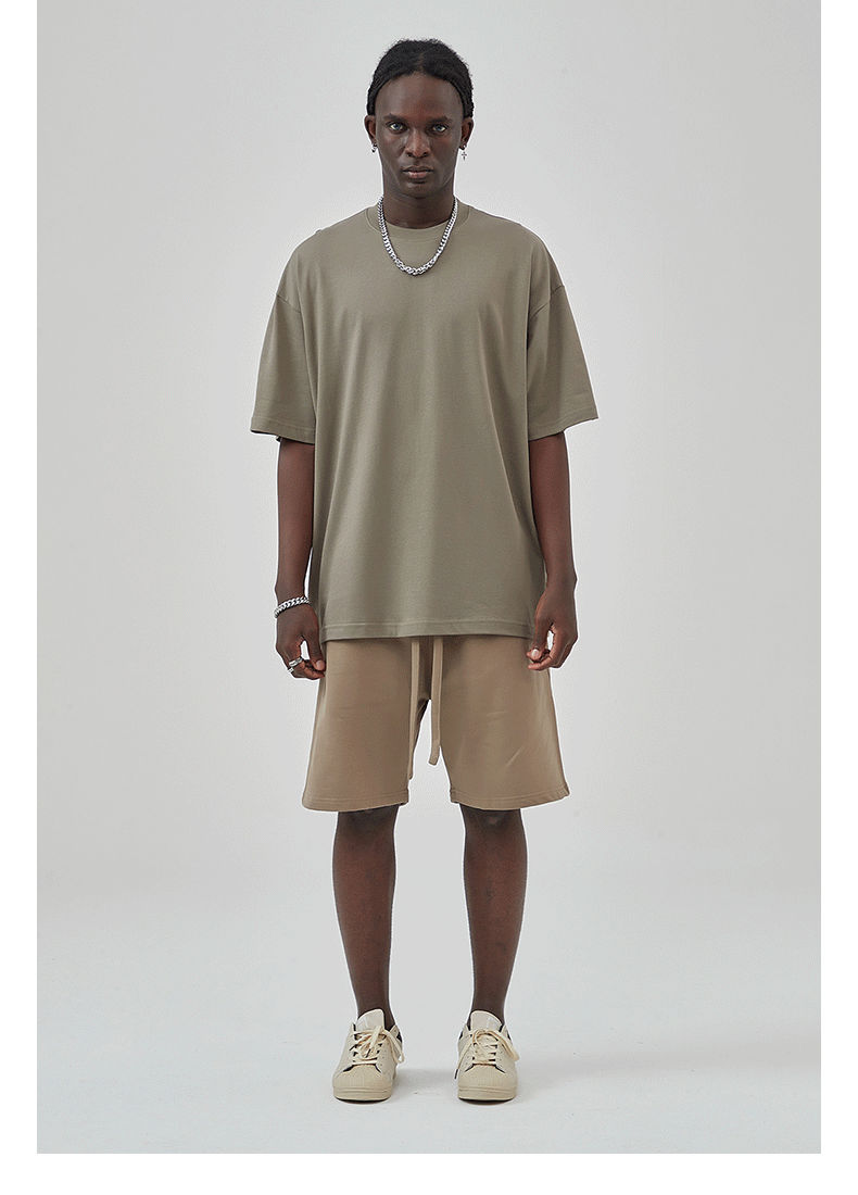 AR plus-size men's clothing, a European and American trendy brand 230G double-yarn pure cotton antibacterial short-sleeved men's T-shirt, solid color blank men's loose T-shirt