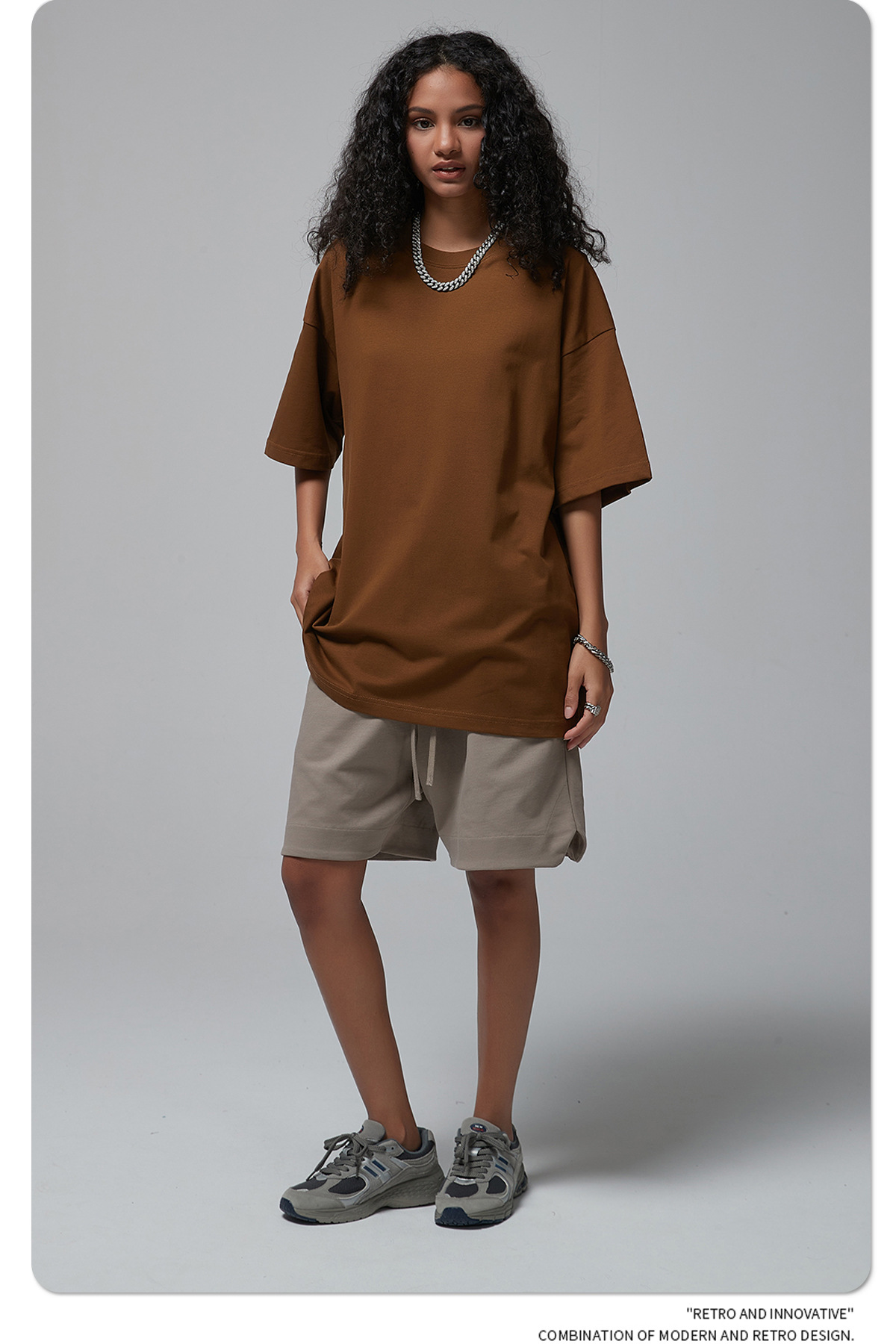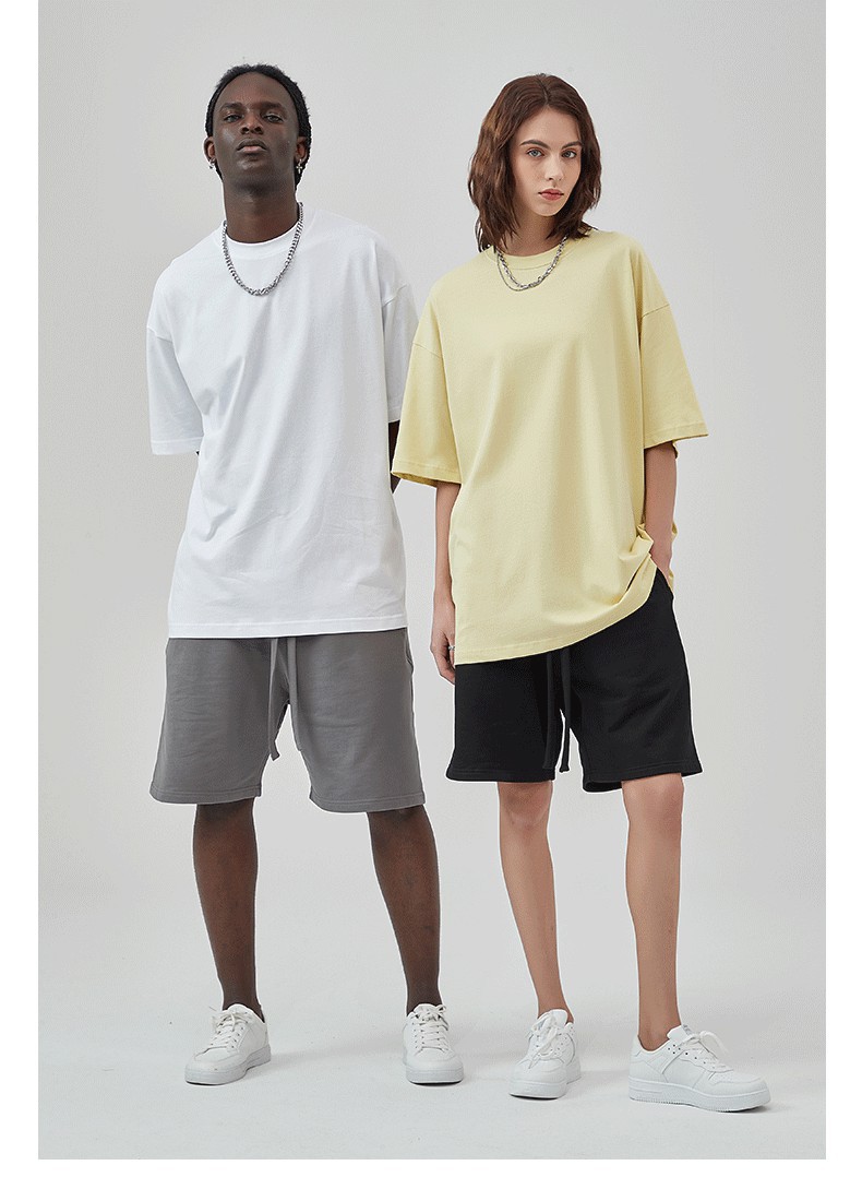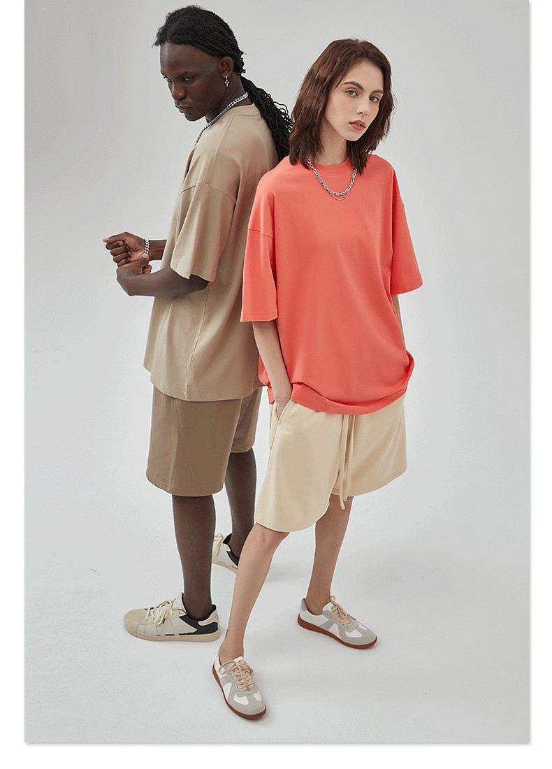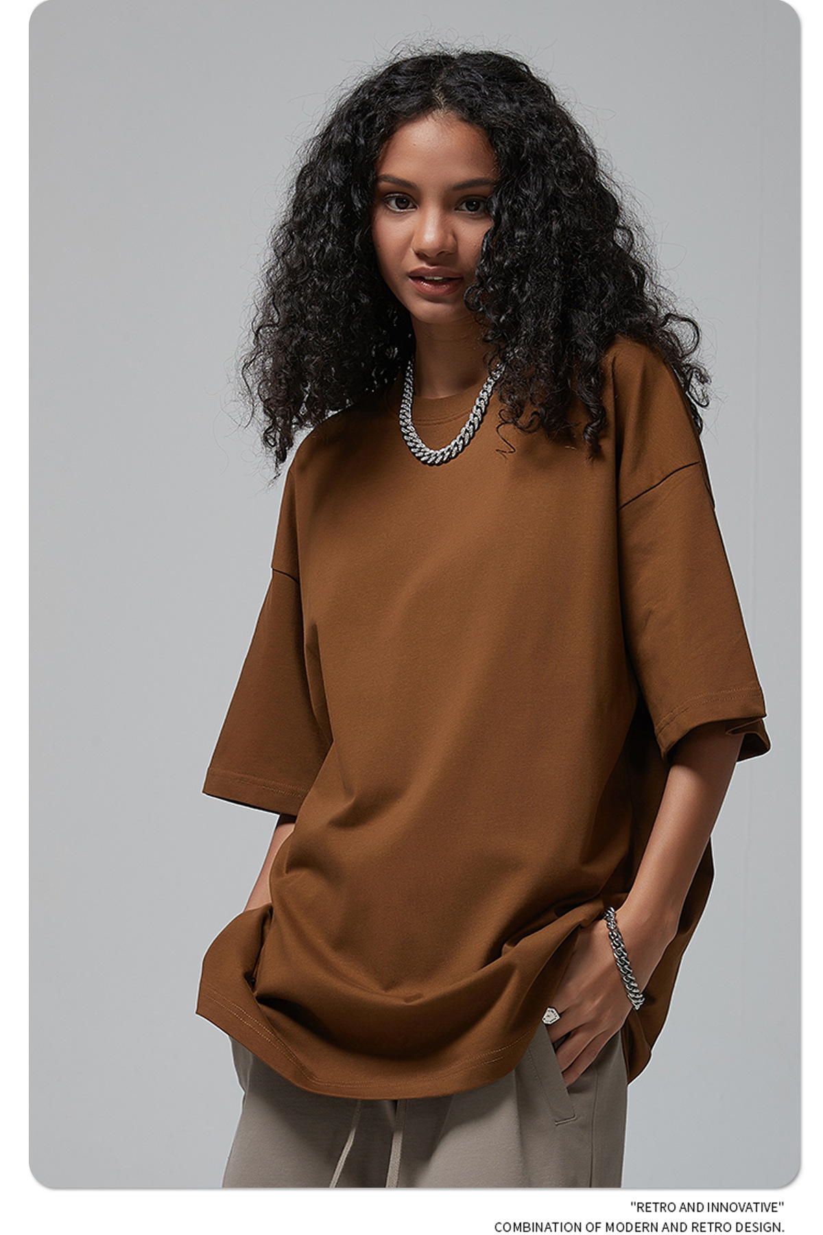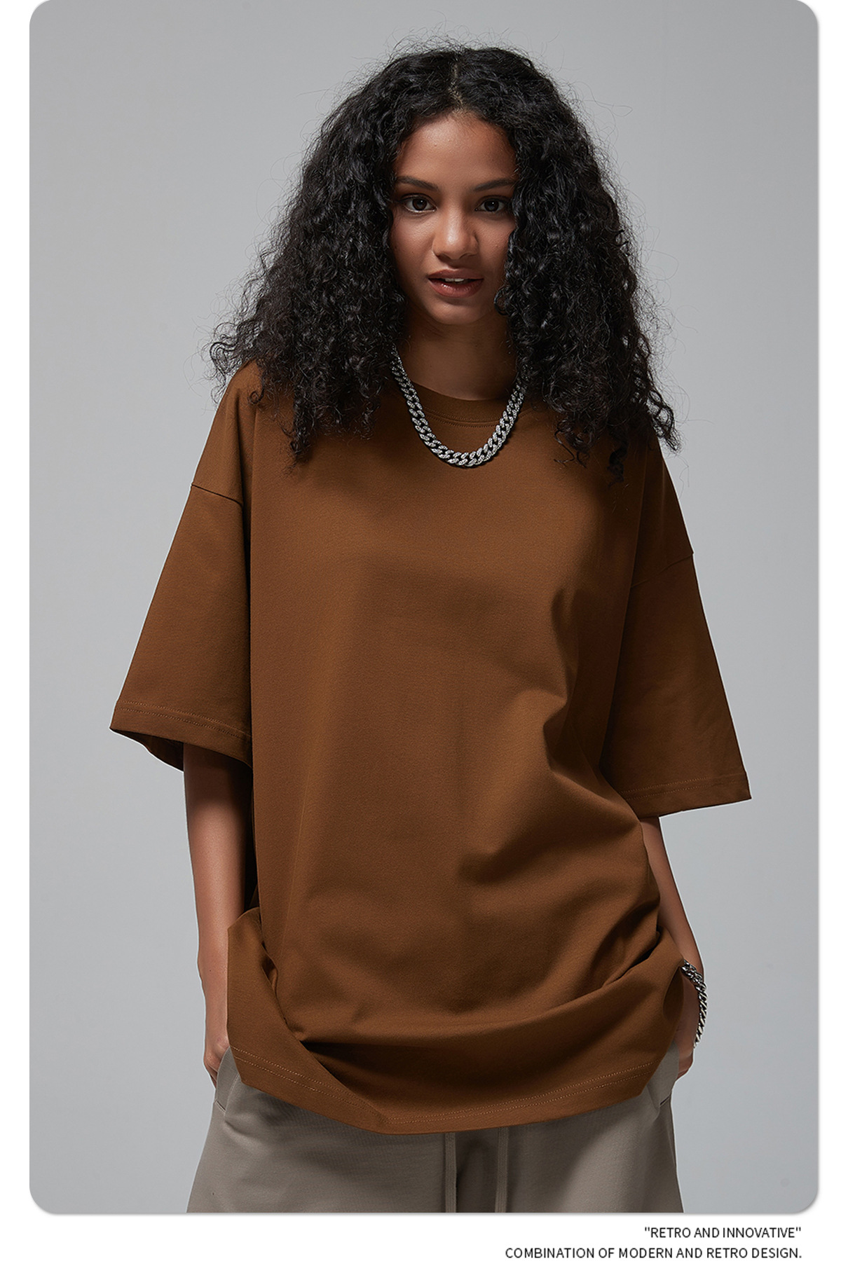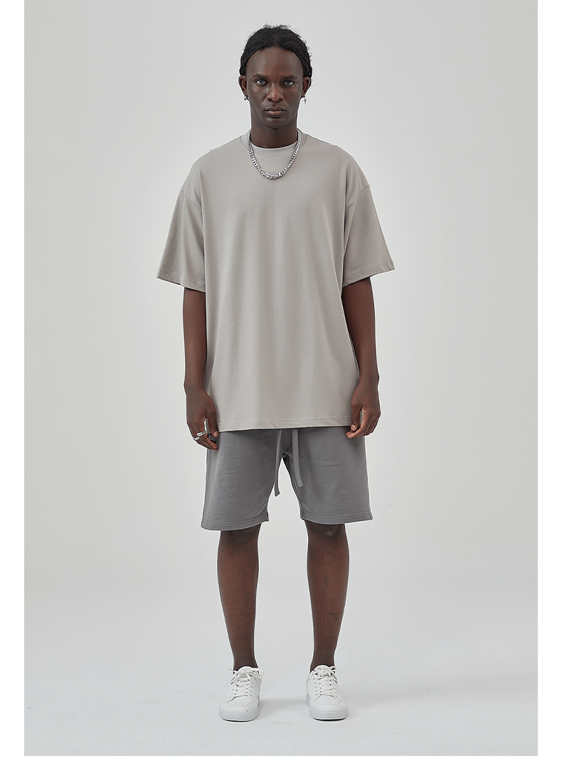AR plus-size men's clothing, a European and American trendy brand 230G double-yarn pure cotton antibacterial short-sleeved men's T-shirt, solid color blank men's loose T-shirt