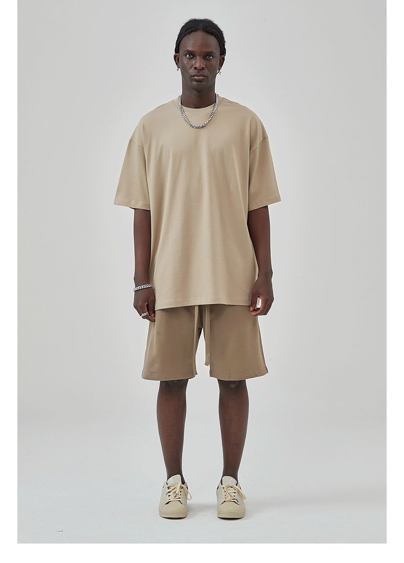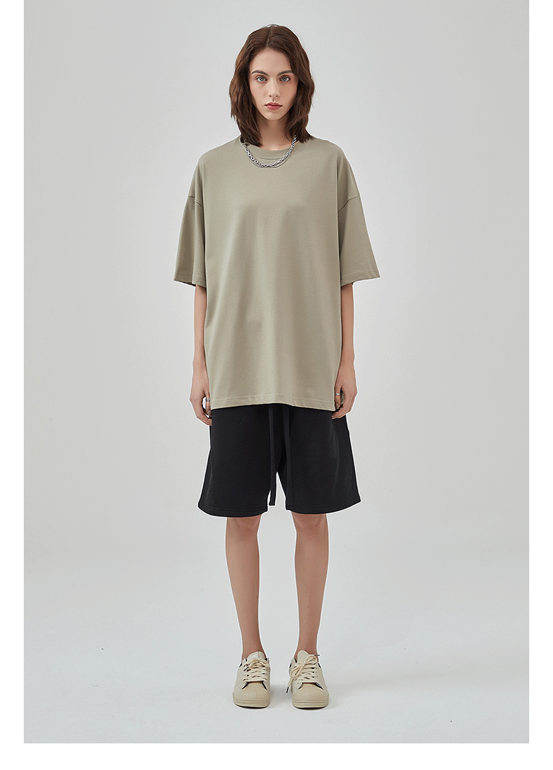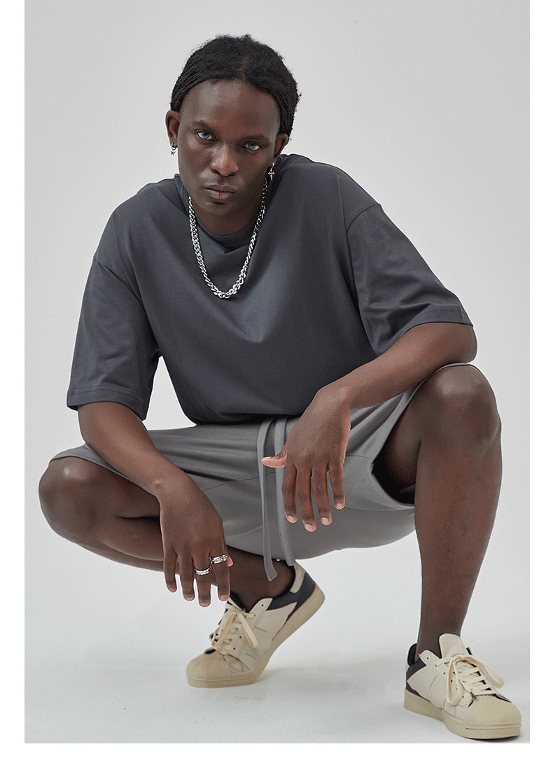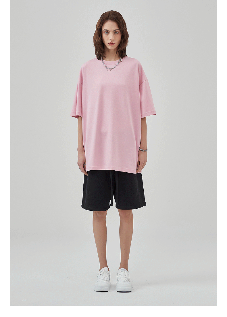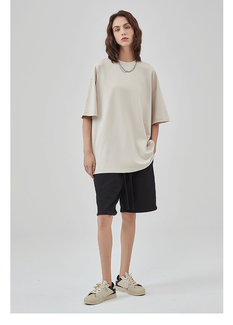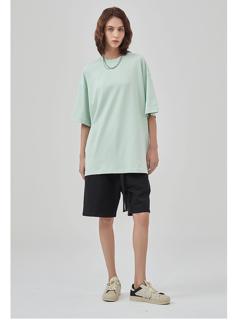 AR plus-size men's clothing, a European and American trendy brand 230G double-yarn pure cotton antibacterial short-sleeved men's T-shirt, solid color blank men's loose T-shirt