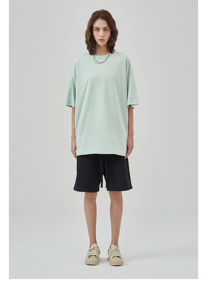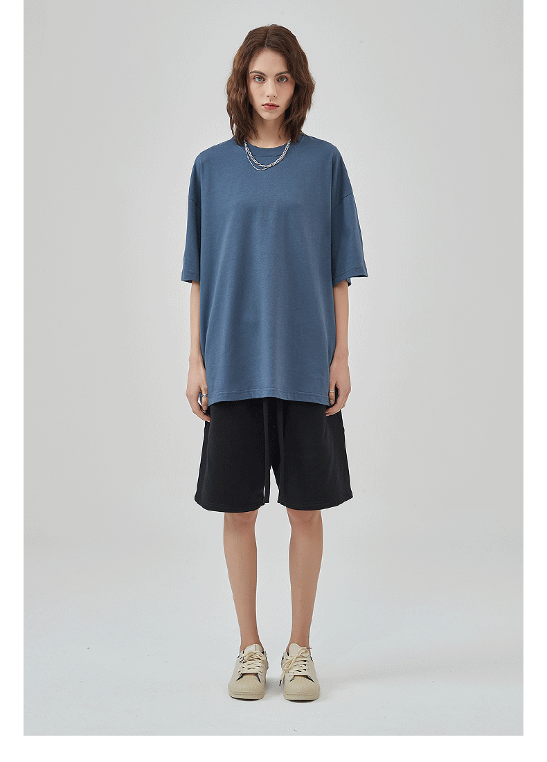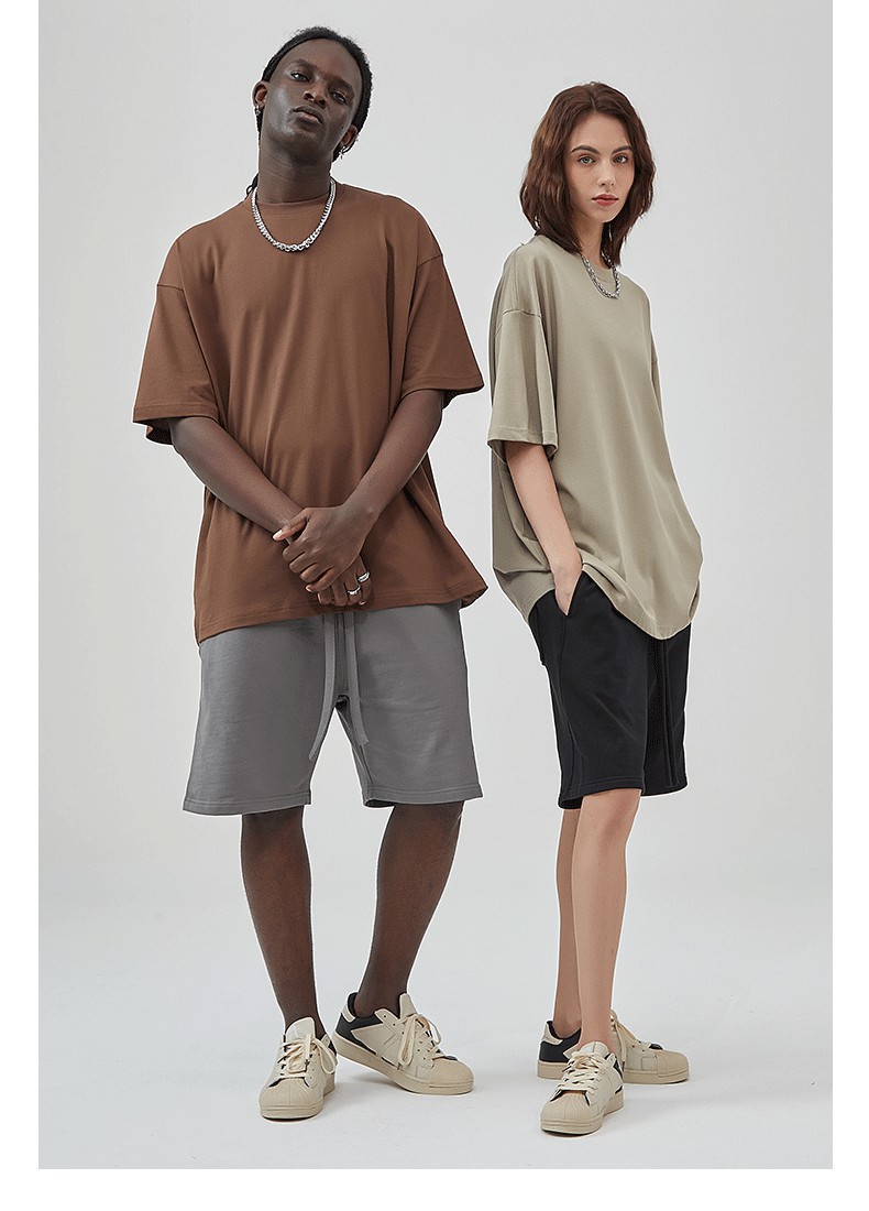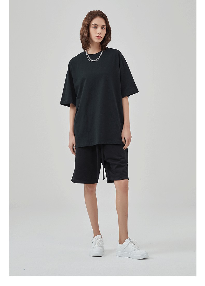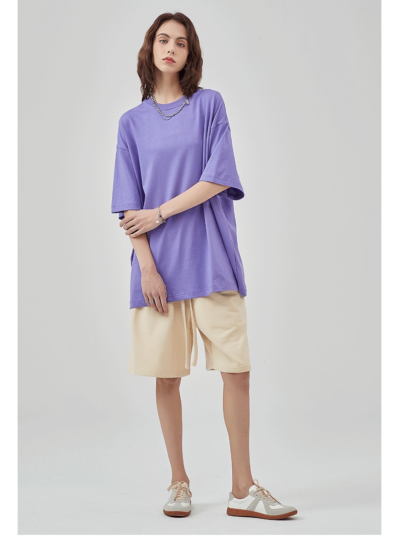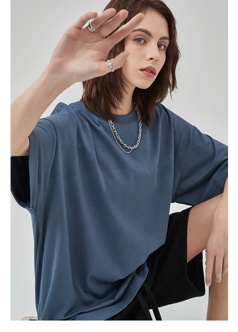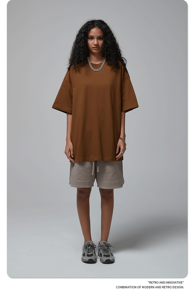 AR plus-size men's clothing, a European and American trendy brand 230G double-yarn pure cotton antibacterial short-sleeved men's T-shirt, solid color blank men's loose T-shirt