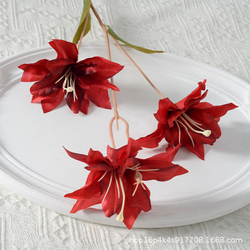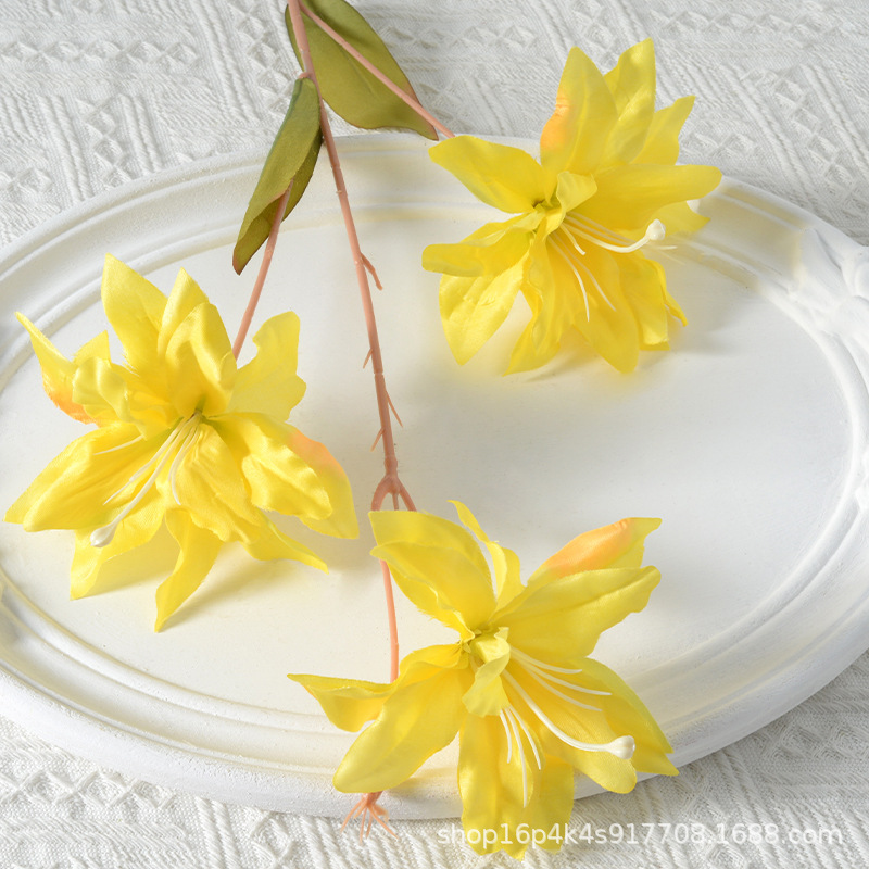Artificial flower 3-head silk lily, Nordic home flower arrangement decoration, artificial flower wedding photography
