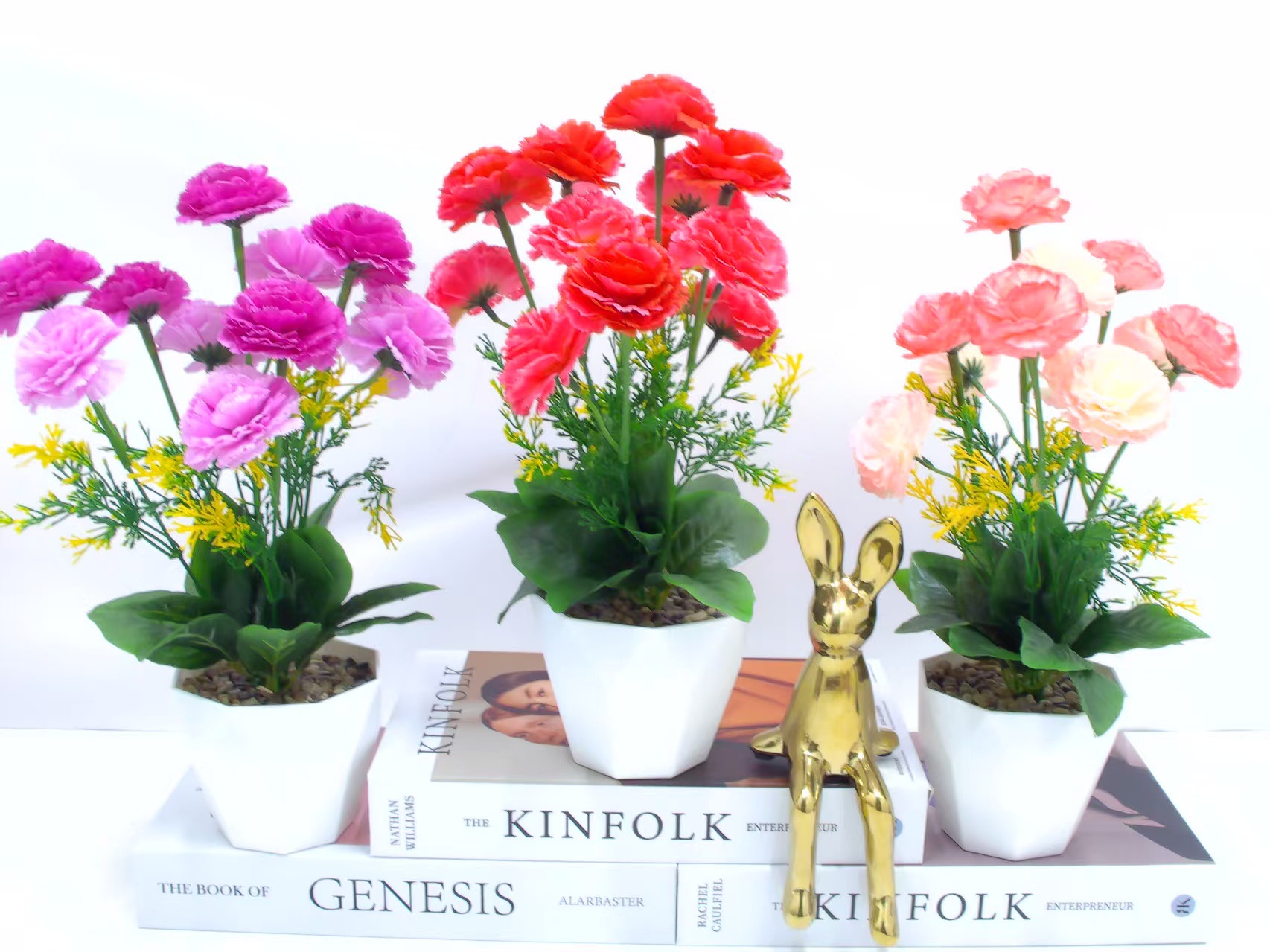 Artificial flower bonsai, artificial flowers, carnations, high-end wine cabinet, decorative items, living room TV, glass cabinet, light luxury
