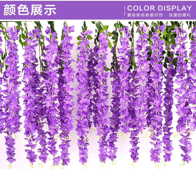 Artificial wisteria flowers, artificial wisteria vines, green leaves, artificial leaves, plastic vines, indoor plants, ceiling decoration, tree vines and green plants