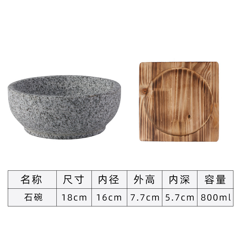 18cm stone bowl + double-ear wooden pads