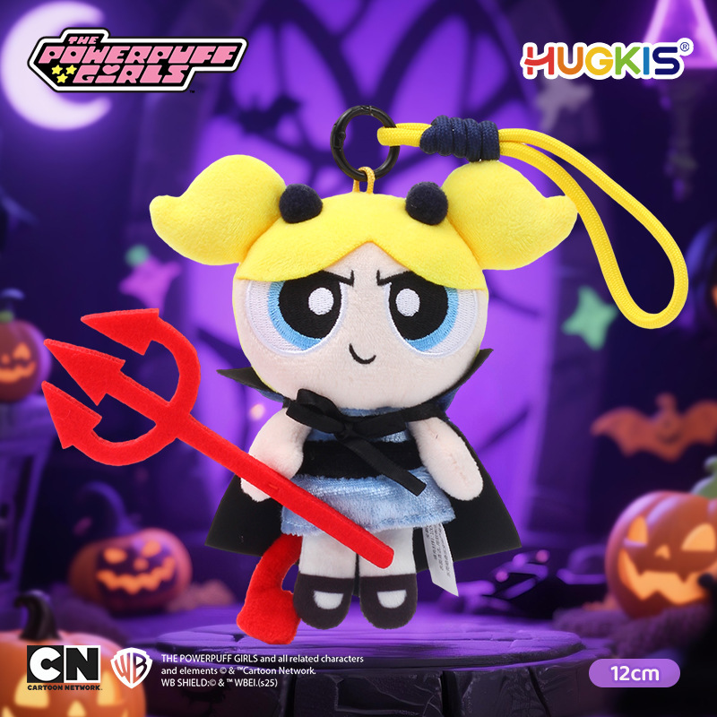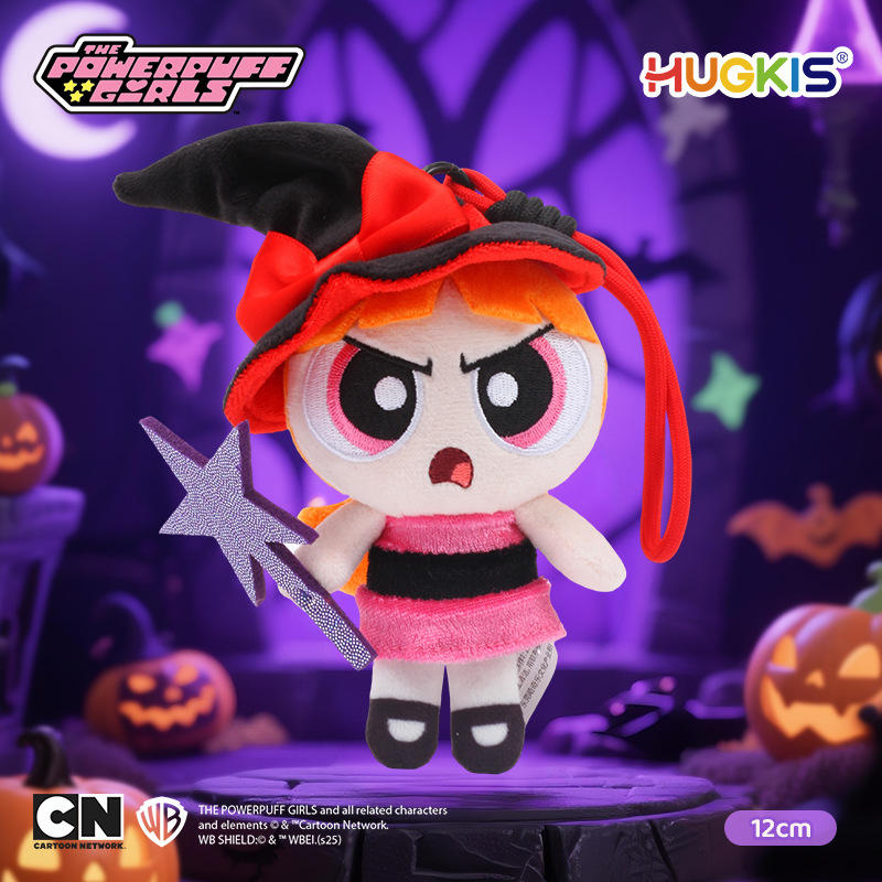 Authentic Powerpuff Girls plush toy pendant, Black magic flower bubble doll, Halloween hat gift
