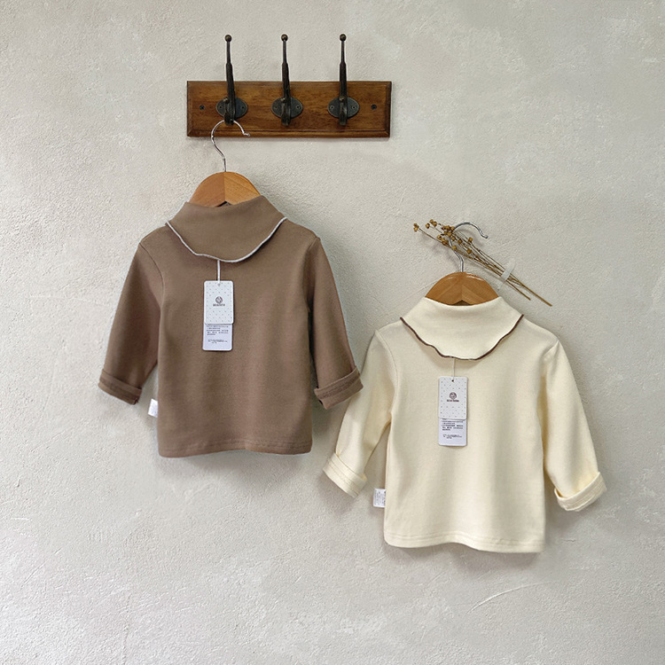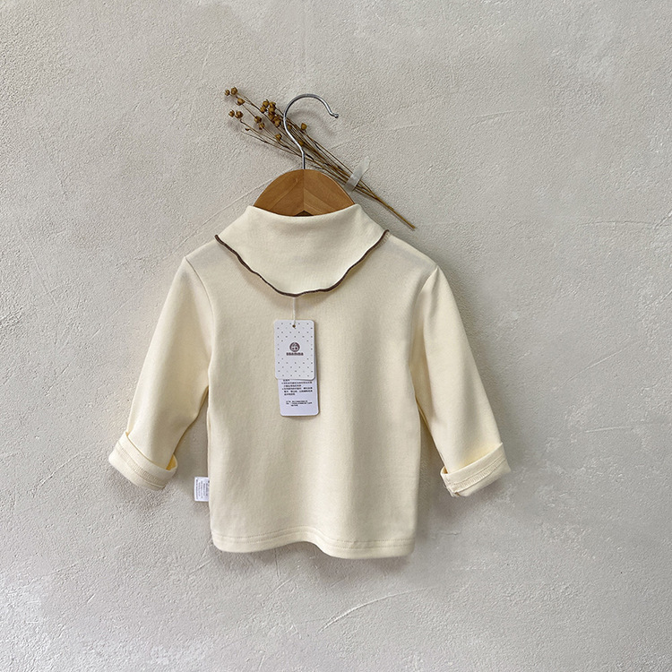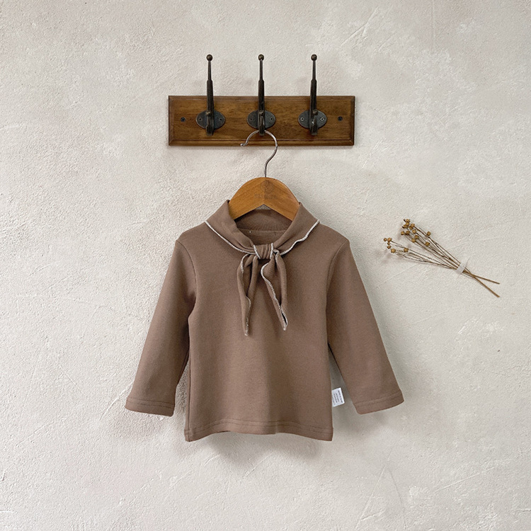Autumn 2025 Korean children's clothing: Girls' bow, scarf, collar, long-sleeved T-shirt, baby autumn wear, base layer, baby autumn wear