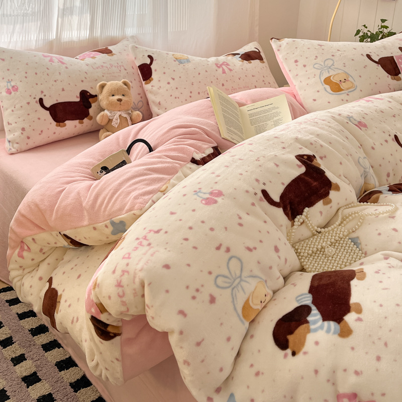 Autumn and winter A-class ins cartoon-style Kokk reprinted milk fleece three-piece, four-piece and single quilt cover bedding