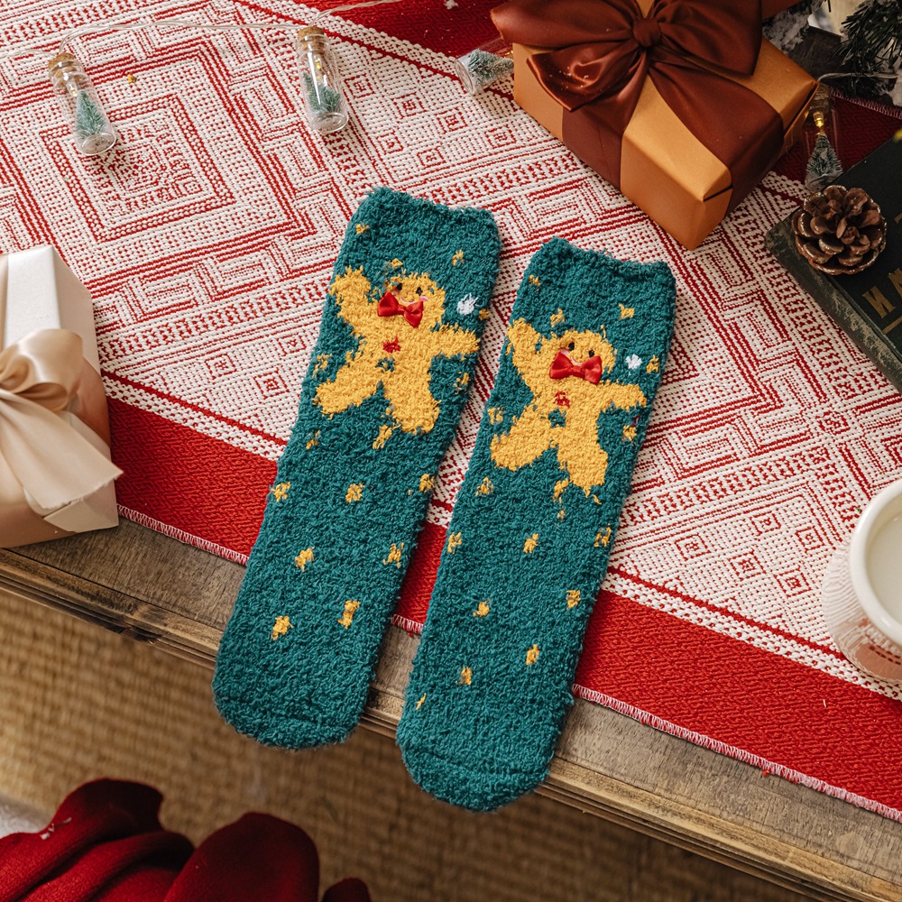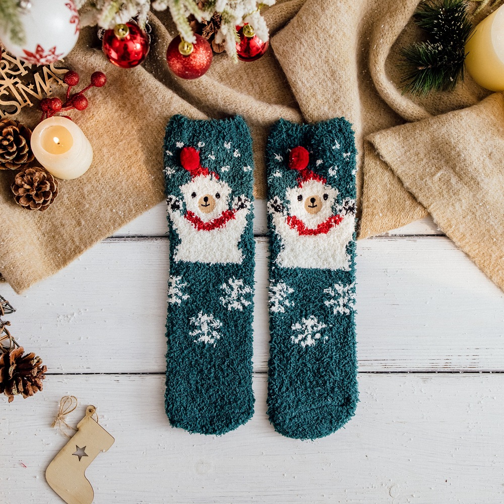 Autumn and winter coral fleece thickened Christmas socks, women's cross-border export Japanese mid-calf socks, home warmth sleep socks, floor socks