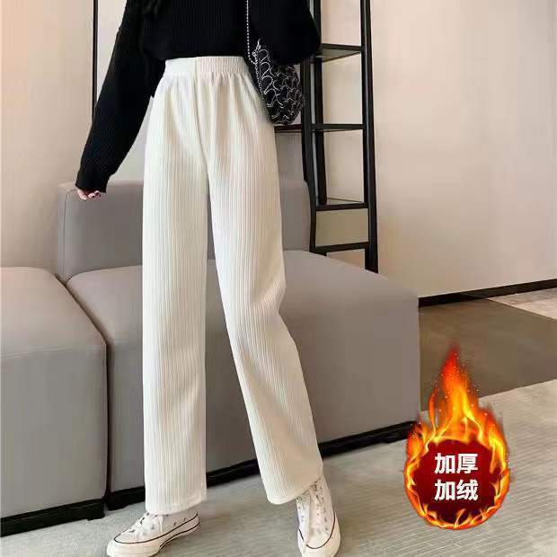 Autumn and winter fleece wide-leg pants for female students, loose and versatile casual straight-leg pants, petite high-waisted slimming 9-inch pants