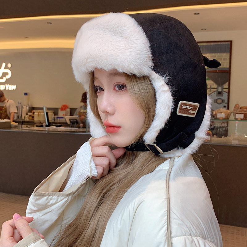 The new autumn and winter style of girls' Lei Feng cap, plush warm ear-protecting cap, cycling cap with rope buckle, simple, fashionable, warm and comfortable
