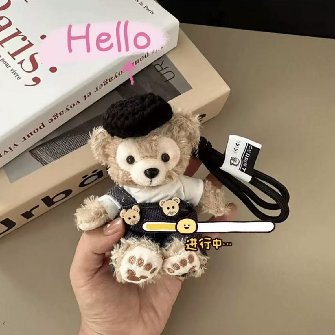 The blue dress holds the rabbit Meimei