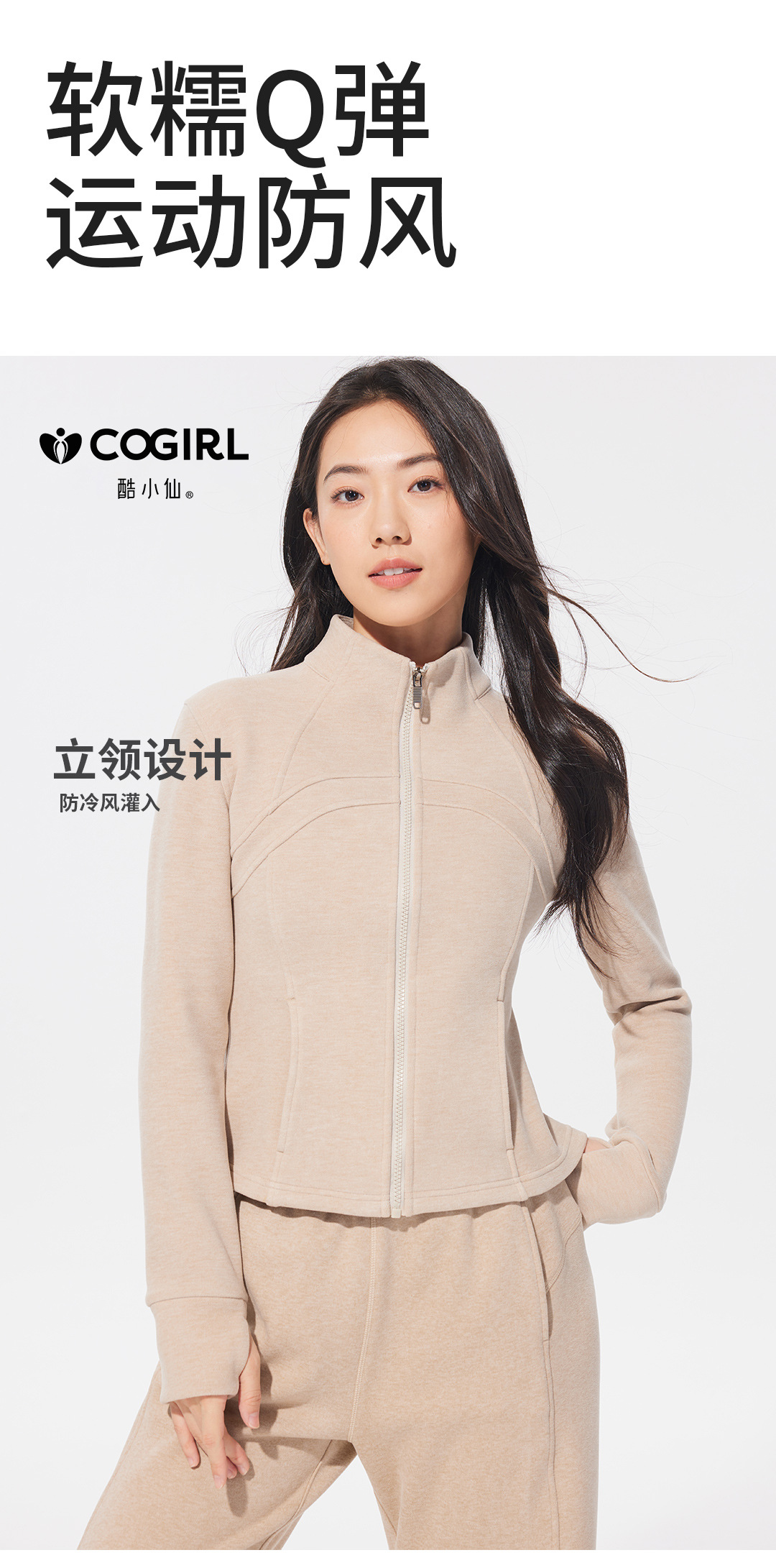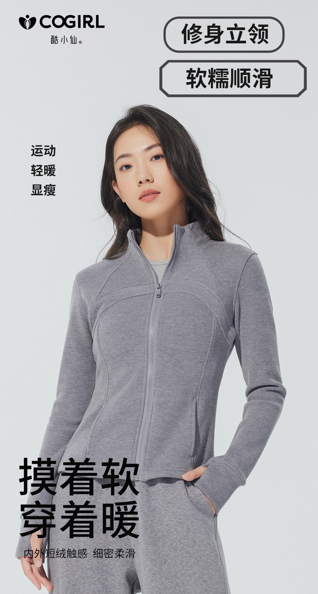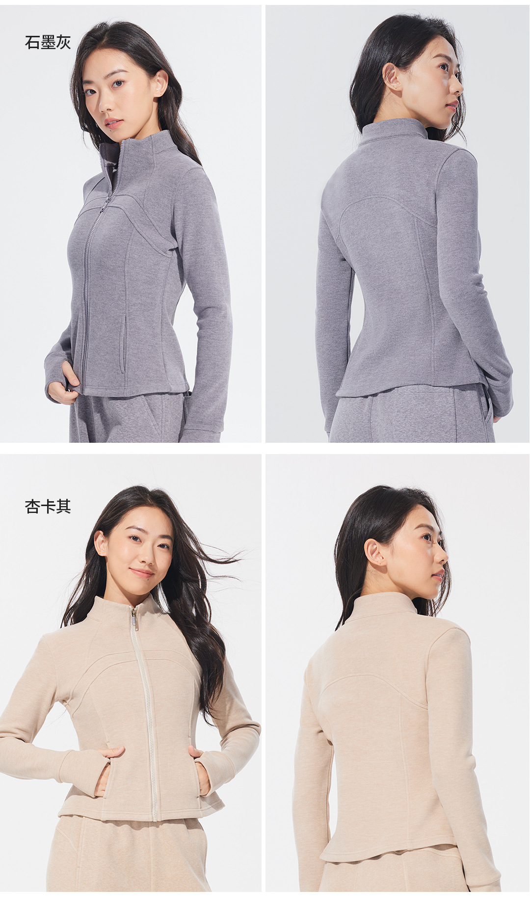 Autumn and winter stand-up collar sportswear, hoodie, jacket, women's slimming, windproof and warm top, long-sleeved zipper cardigan