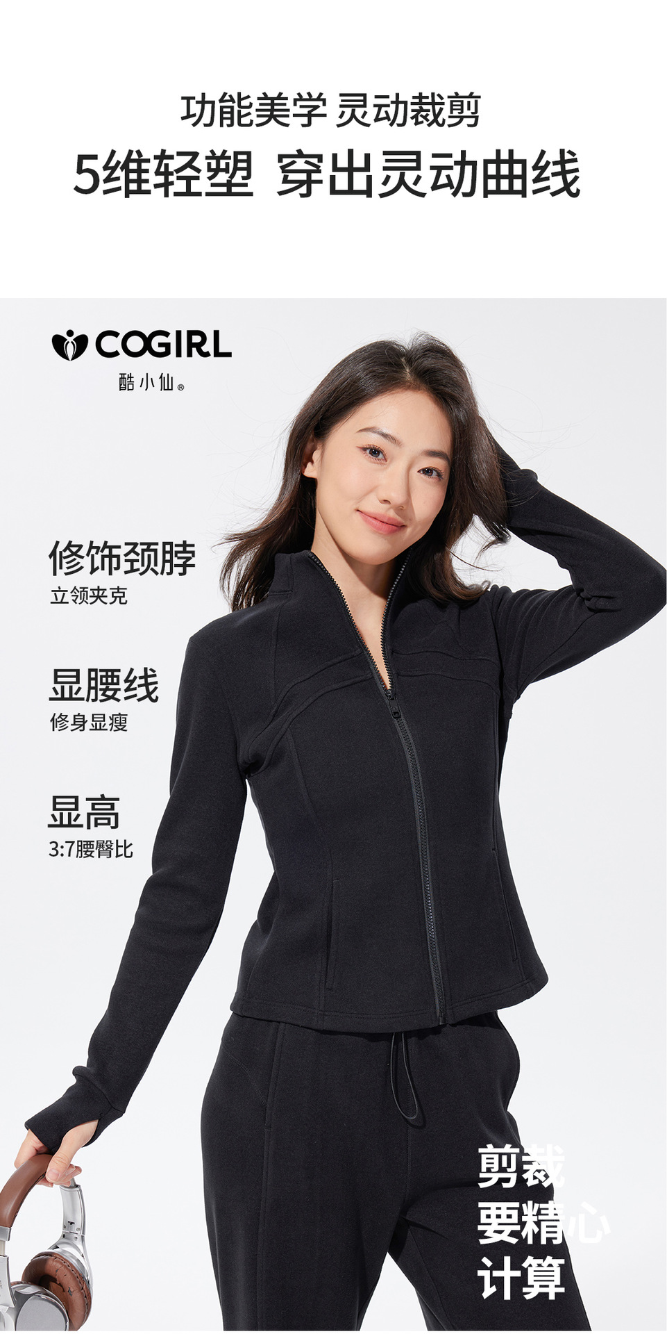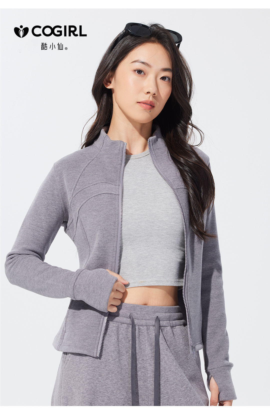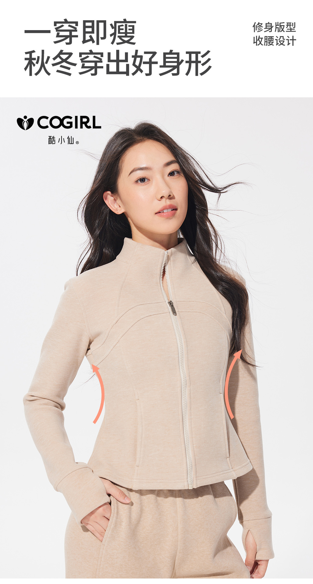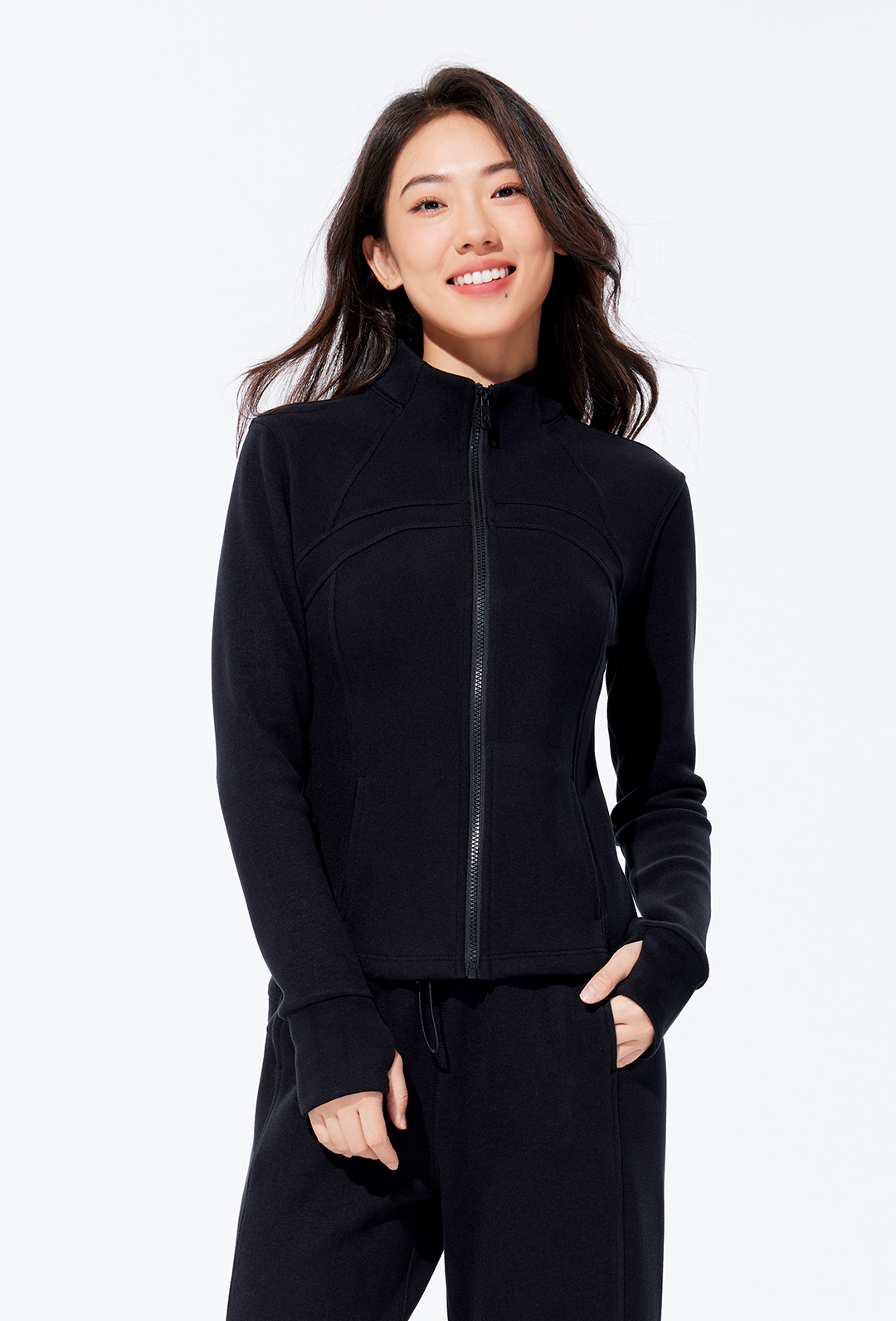 Autumn and winter stand-up collar sportswear, hoodie, jacket, women's slimming, windproof and warm top, long-sleeved zipper cardigan