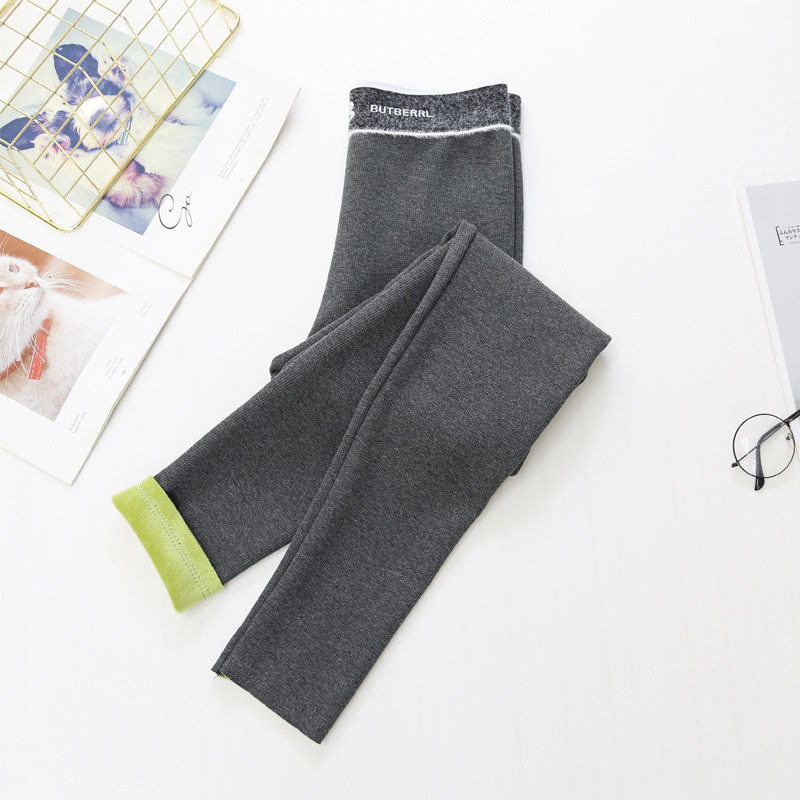 Autumn and winter thickened and fleece leggings for women to wear outside in 2020 winter trend, the same style as the popular ribbed fruit green fleece warm pants