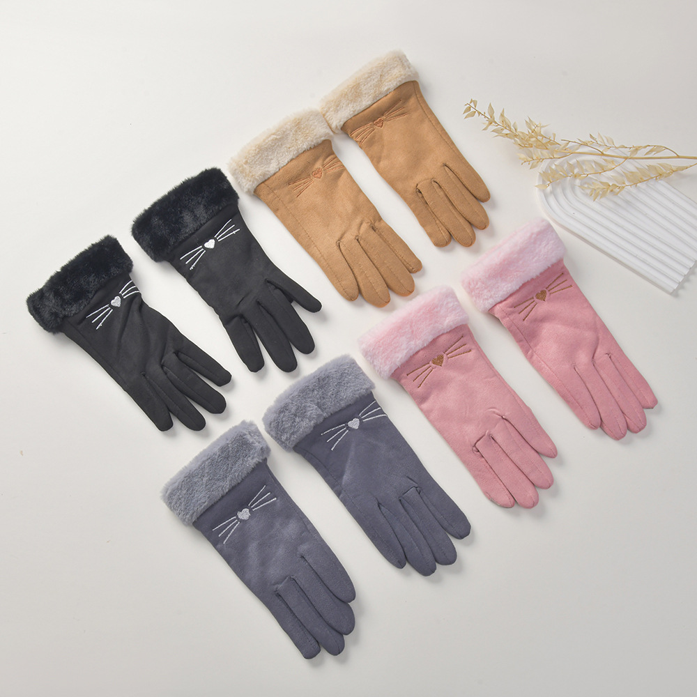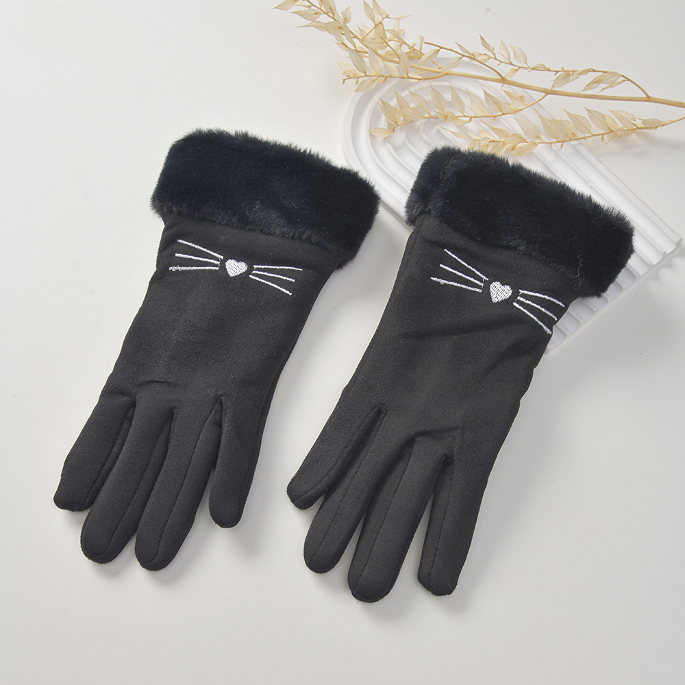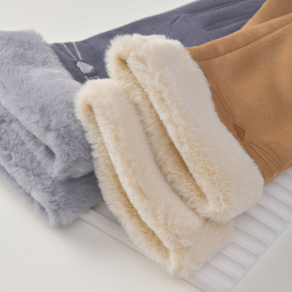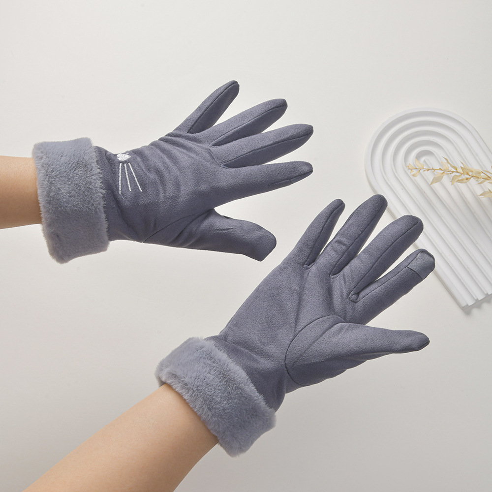 Autumn and winter women's embroidered fur gloves, outdoor cycling chicken skin fleece windproof and warm gloves, cute touch screen gloves
