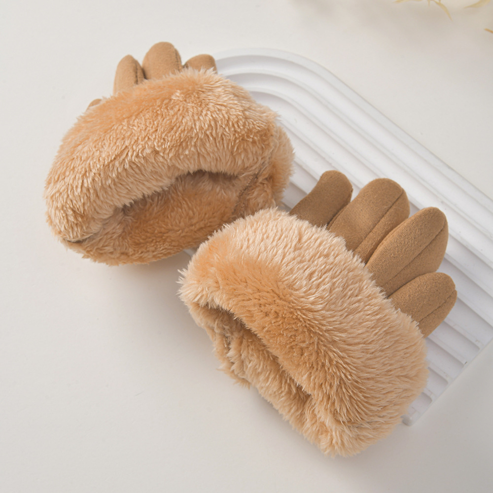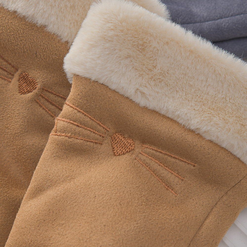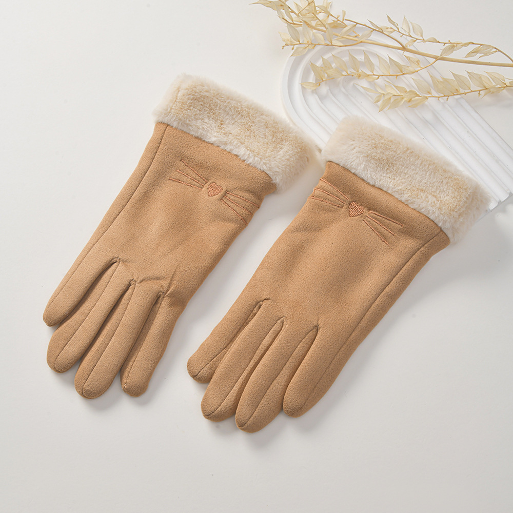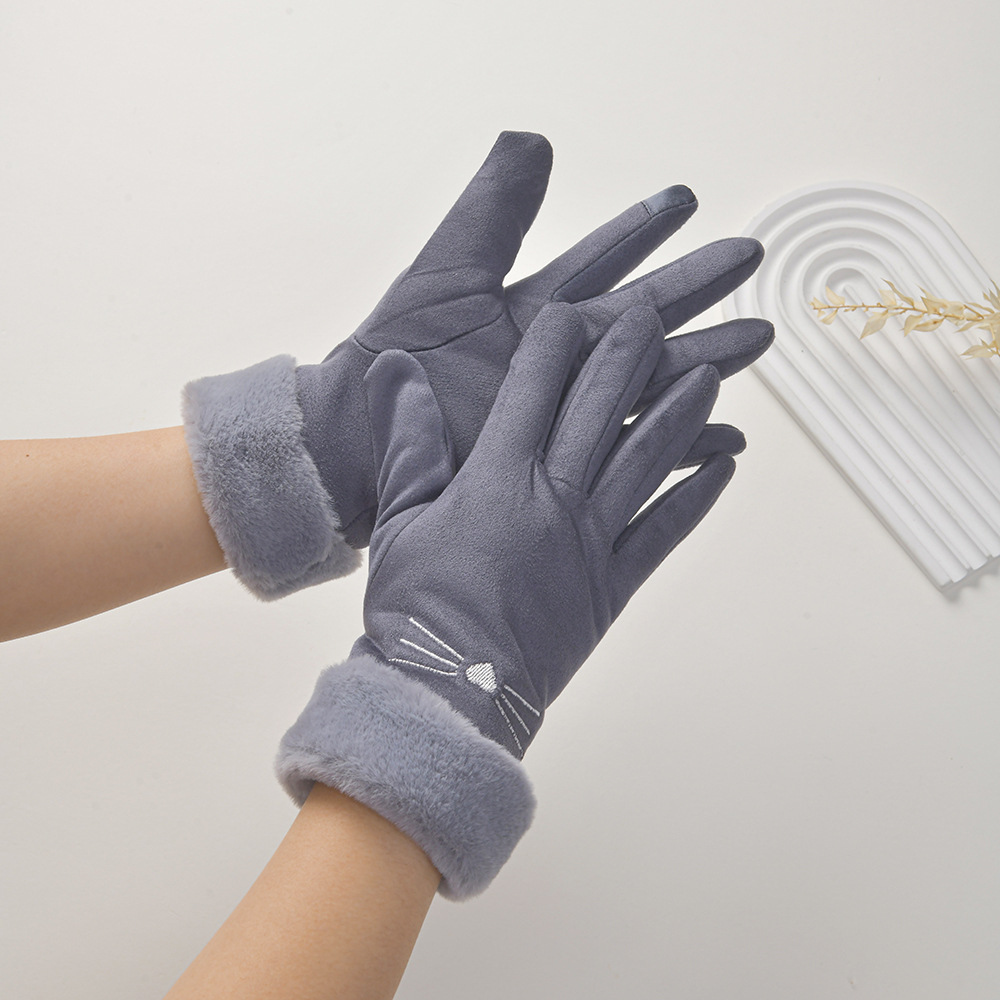 Autumn and winter women's embroidered fur gloves, outdoor cycling chicken skin fleece windproof and warm gloves, cute touch screen gloves