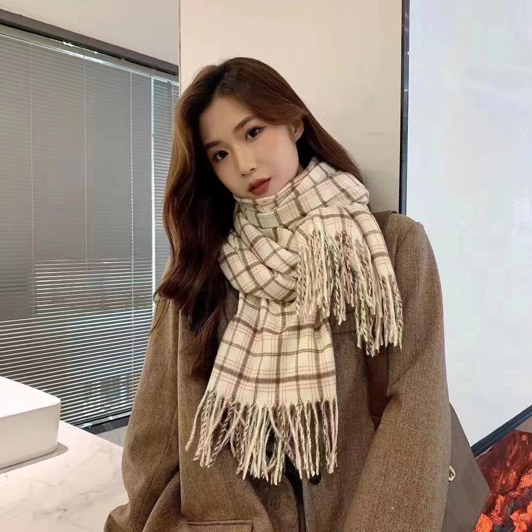 Autumn and winter women's scarves, sweet and warm Japanese and Korean scarves, men's and women's faux cashmere thick beard retro checkered scarves in stock