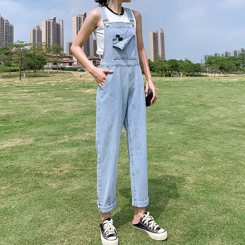 Autumn denim overalls for women, Korean style, loose and versatile, slimming, large-sized, chubby girls, straight-leg halter wide-leg 9-inch pants