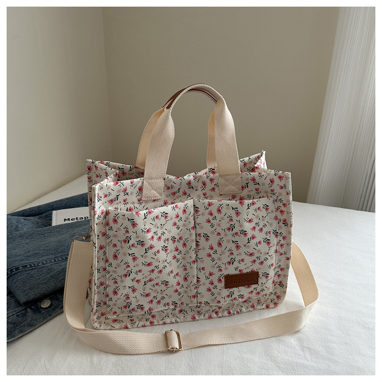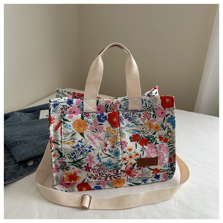 Autumn floral print bag, personalized 2024, large capacity double-pocket, stylish beach shopping bag, crossbody single-shoulder handbag for women