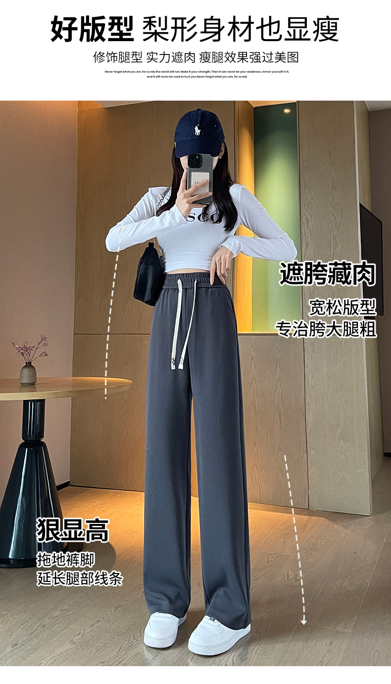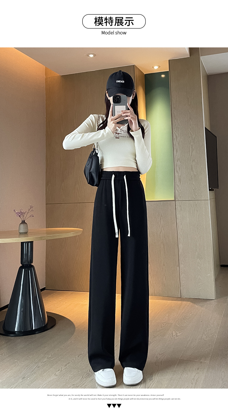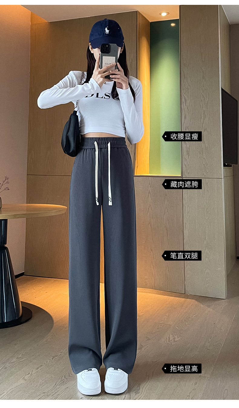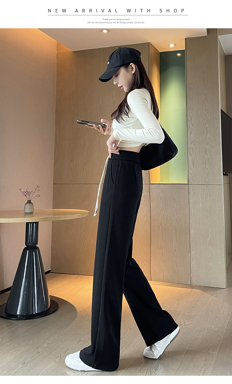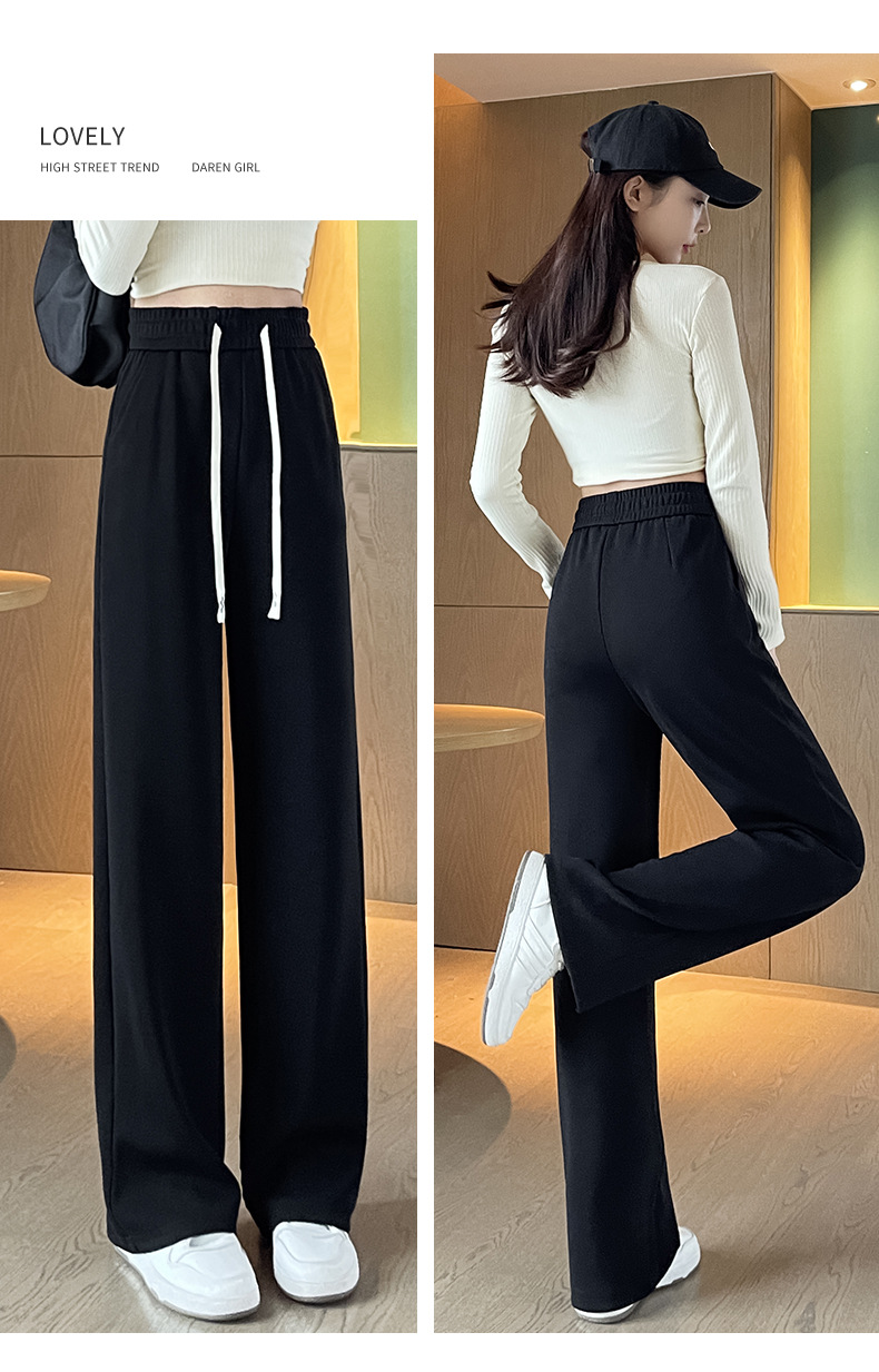 Autumn high-end casual pants, stretched-waist, wide-leg pants, women's drawstring, slimming and leg-enhancing long women's pants