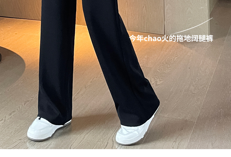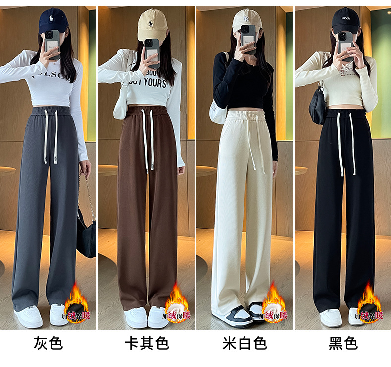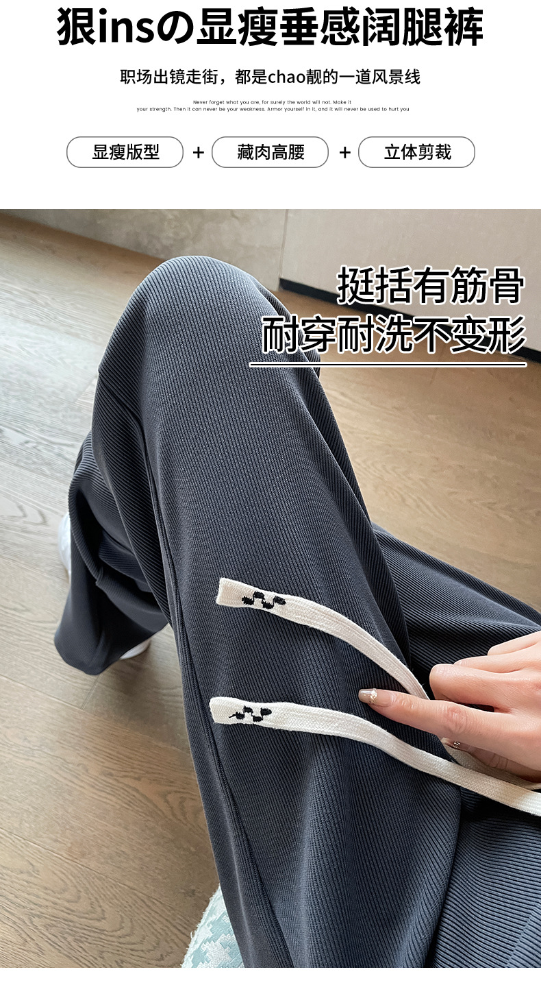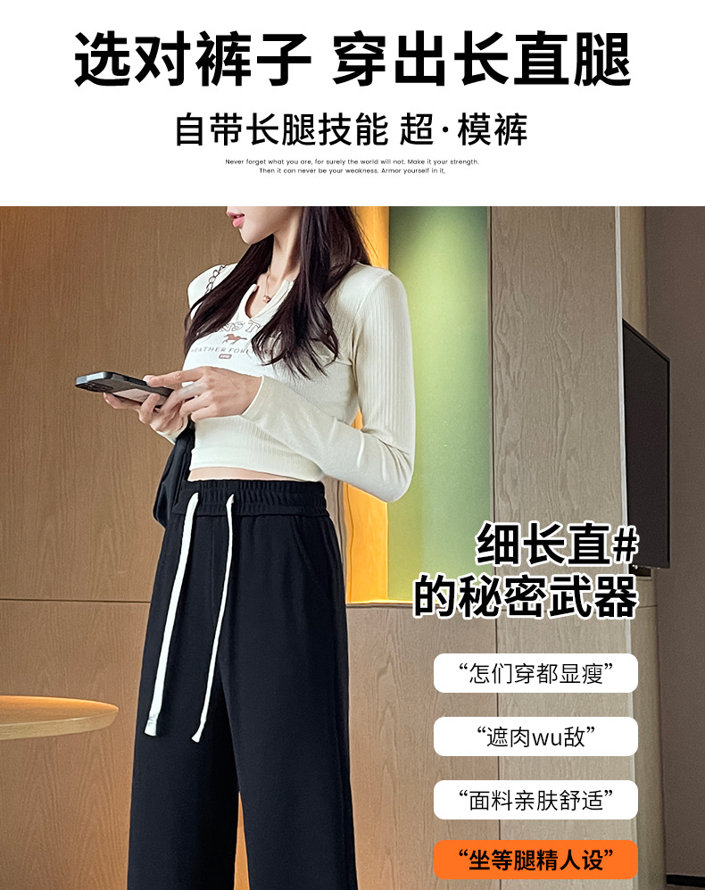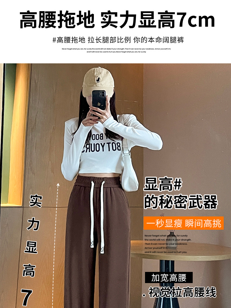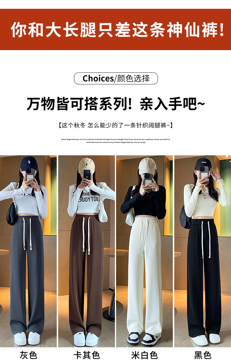 Autumn high-end casual pants, stretched-waist, wide-leg pants, women's drawstring, slimming and leg-enhancing long women's pants